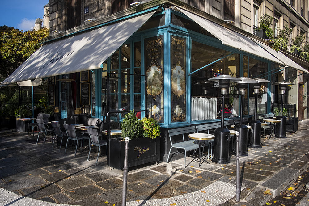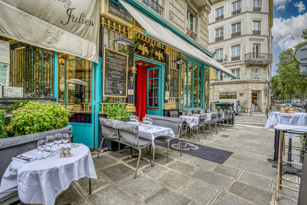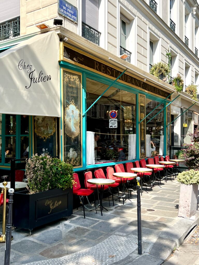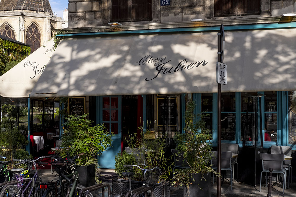 Situé en plein cœur du marais, dans une ancienne boulangerie classée monument historique, Chez Julien est l’incontournable repaire des Parisiens branchés et des touristes venus du monde entier. Un havre de Paix en plein Paris, un emplacement hors pair avec une vue magnifique sur le pont Louis Philippe et sur l’église St Gervais, la plus vieille église de France.