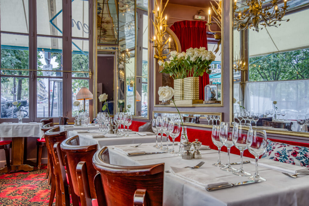 Une déco datant de 1901 a été réinterprétée par Gérard Cholot, à qui l’on doit les deux institutions Chartier et Thoumieux. Il a su conserver l’atmosphère « Grande Époque », carrelage du 19 ème siècle et plafond peint sur verre par Gilbert le célèbre peintre, banquettes en velours, lustres à pampilles, et magnifique bar empire.