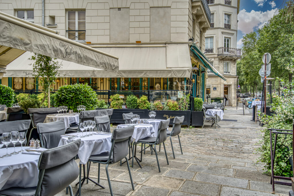 Véritable institution parisienne au charme inoxydable, Chez Julien dispose d’un cadre idyllique et fleuri, où faire un détour pour les beaux jours !