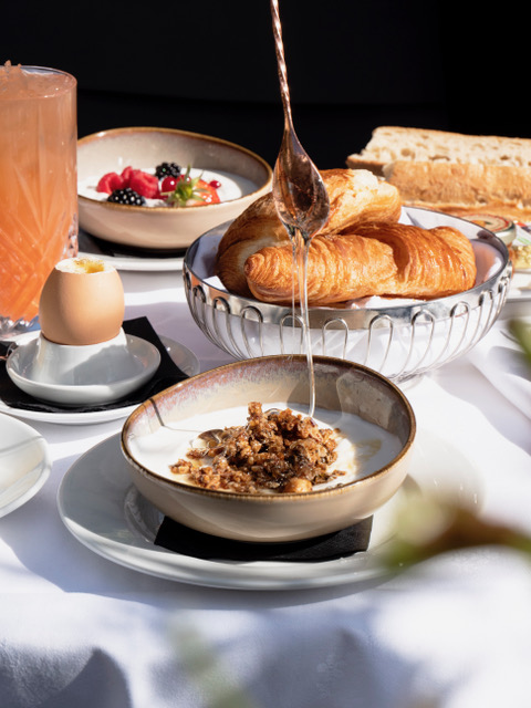Retrouvez également le petit déjeuner à la carte du lundi au dimanche : Croque monsieur à la truffe, Croissant au fromage à la crème, saumon et avocat , Fromage blanc, granola maison et miel de fleurs, Toast de chez « Poujauran » saumon fumé et-avocat…