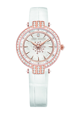 Les deux modèles Premier Automatic 31mm possèdent des bracelets en cuir d’alligator blanc dont les boucles ardillon en or blanc ou rose 18 carats sont serties de 15 diamants taille brillant.