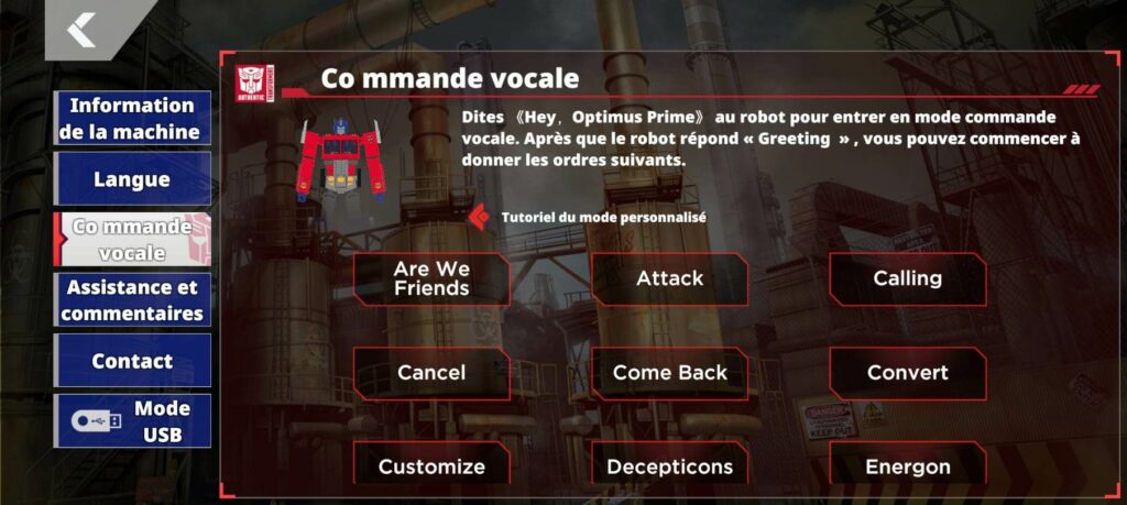 En effet, une fois allumé, il vous suffit de lui donner l’ordre de se convertir pour le faire basculer d’un mode à l’autre. C’est exactement pareil que lorsque vous dites « Hey Google » ou « Alexa », ici il faudra simplement dire « Hey Optimus Prime » puis transmettre votre ordre. Actuellement, tous ces ordres sont à prononcer en anglais, mais il sera possible de les faire en français prochainement. Vous pouvez retrouver toute la liste des commandes vocales dans l’application mobile disponible en langue française sur Android et iOS.