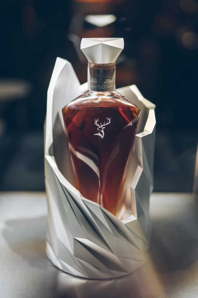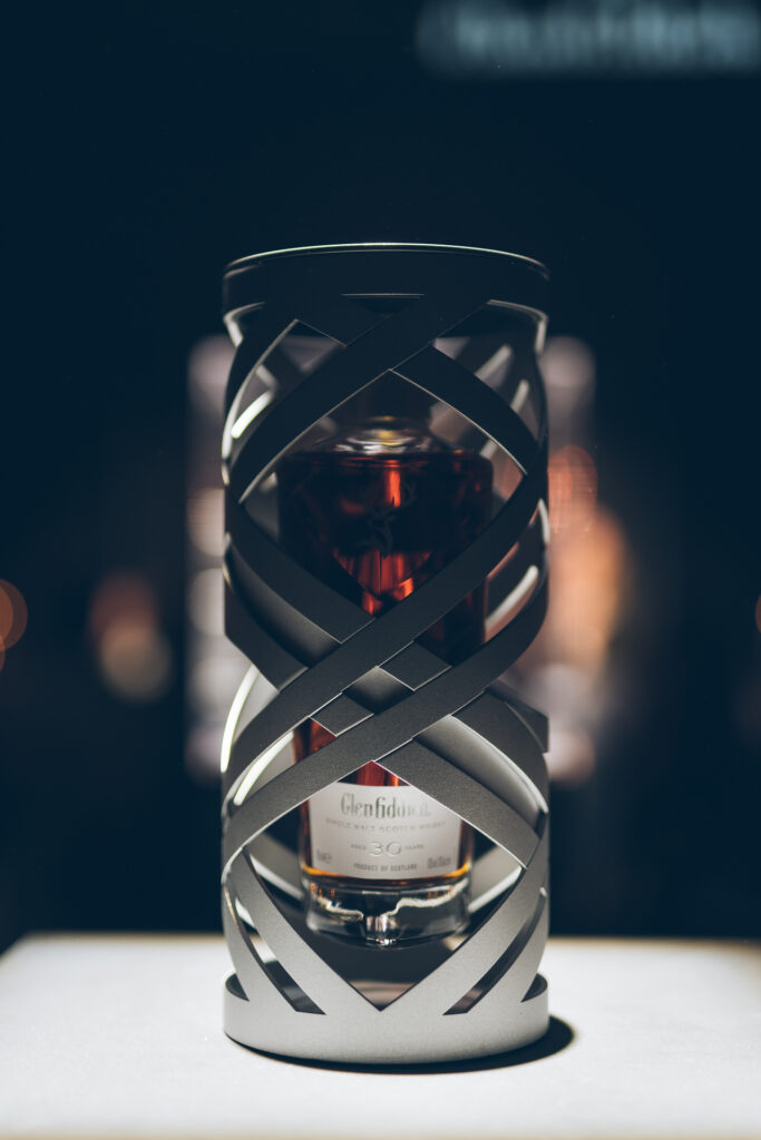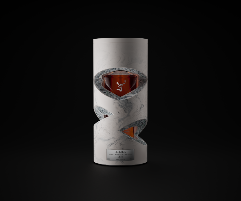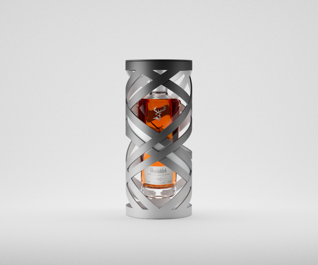 Le design de la bouteille en verre soufflé a été réalisé sur-mesure en cristal cosmétique par Glasstorm, verrerie de luxe fondée par Brodie Nairn et Nichola Burns située dans les Highlands en Écosse. Pour imaginer son coffret, Glenfiddich a donné carte blanche à Manuel Jiménez Garcia, architecte informaticien : à partir de 50 ans de données climatiques récoltées à la distillerie Glenfiddich de Dufftown, là même où a vieilli le whisky, l’artiste a imaginé une structure en trois dimensions en aluminium dur, donnant vie à “chaque seconde de chaque jour, de chaque mois de ces cinquante années,” comme l’explique l’artiste. Témoin inestimable du temps qui passe, ce coffret, issu d’une seule et même pièce d’aluminium, est un objet de collection unique au monde.