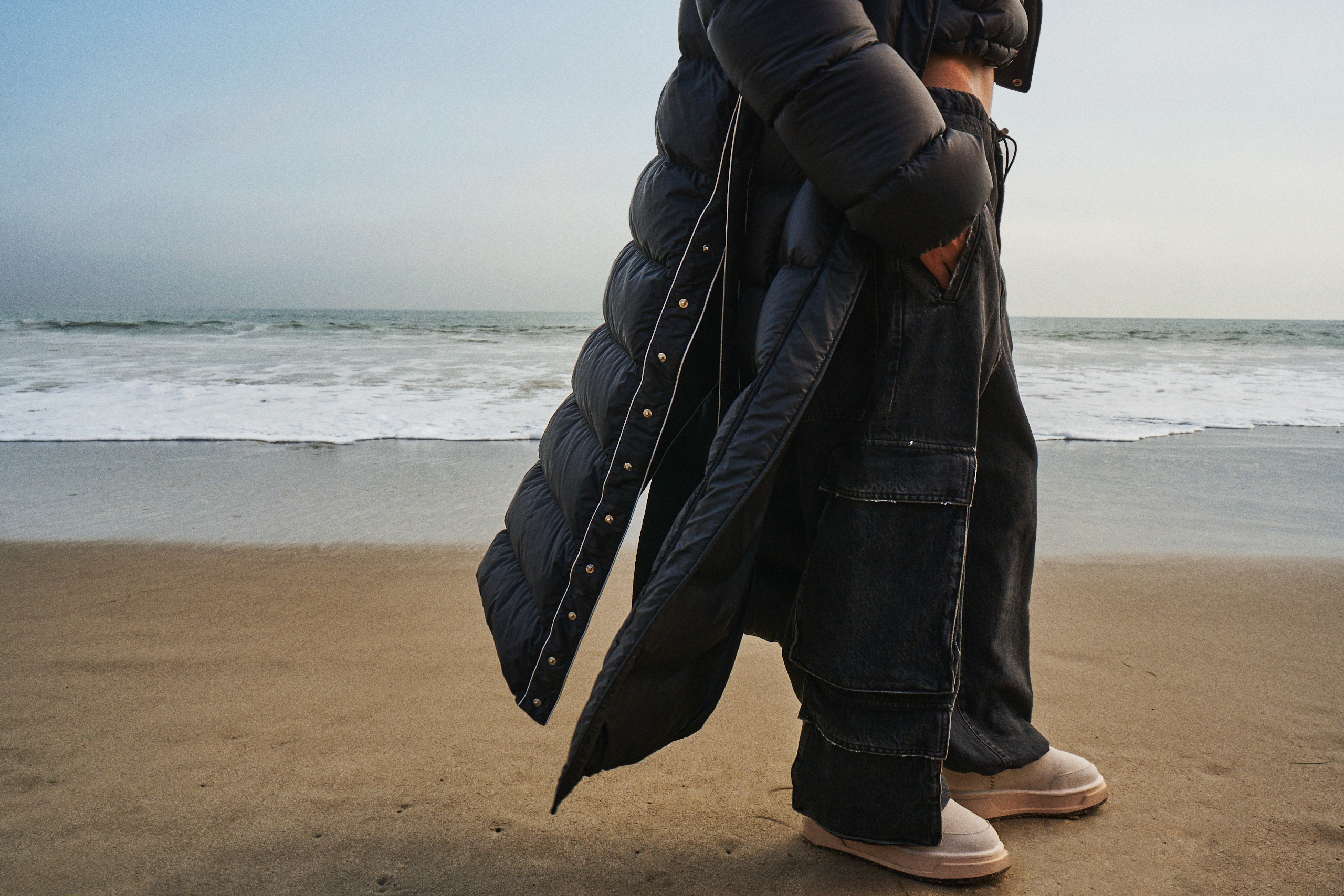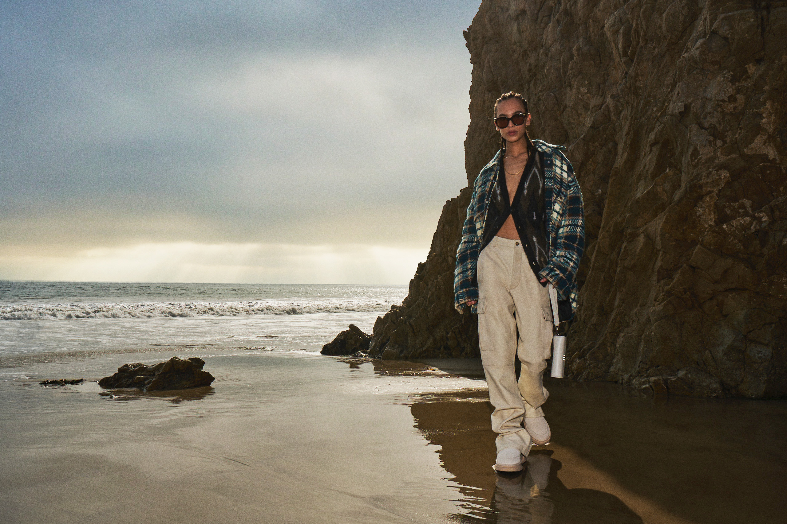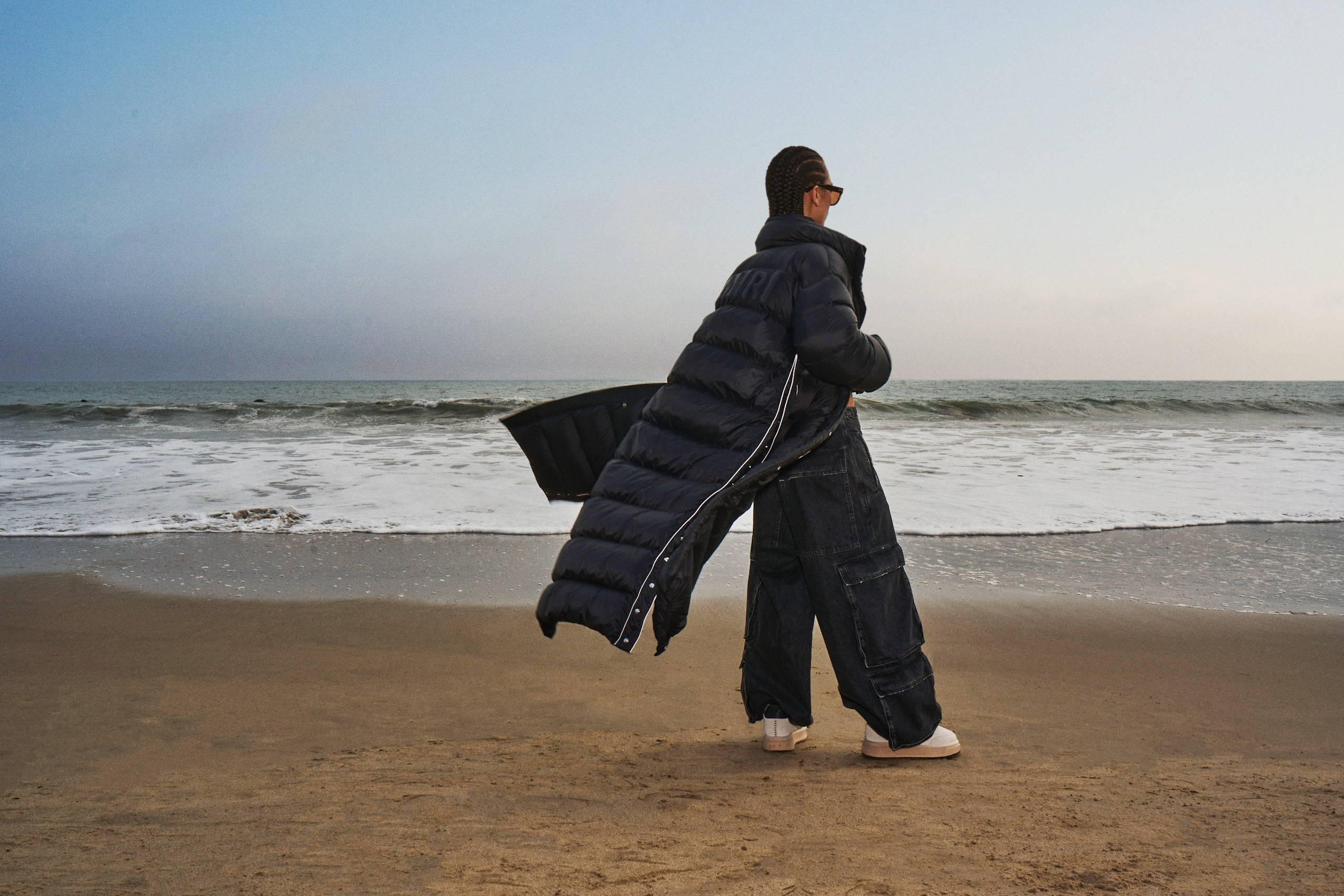La collection voit des silhouettes de vêtements féminins rétrécies, coupées, allongées et obliques, offrant une interchangeabilité des formes et des solutions guidées par un artisanat sculptural et des détails ajustables. Le workwear et le tailoring sont interchangeables, tant la polyvalence et la rigueur du savoir-faire d’AMIRI sont grandes. Les coutures sont remplacées par des fermetures à boutons et le pragmatisme des pantalons cargo est rehaussé. Les lignes passent avec aisance de la forme à la taille, émettant des notions de masculinité douce et d’autonomisation. Des éclats de rose et de bleu vibrants accentuent une toile neutre conçue pour des jeux de tons et de textures superposés. Les tissus sont à la fois souples et résistants – cuir, laine, nylon, shearling, velours – empruntés aux univers du sport et de l’utilitaire, réadaptés au quotidien.