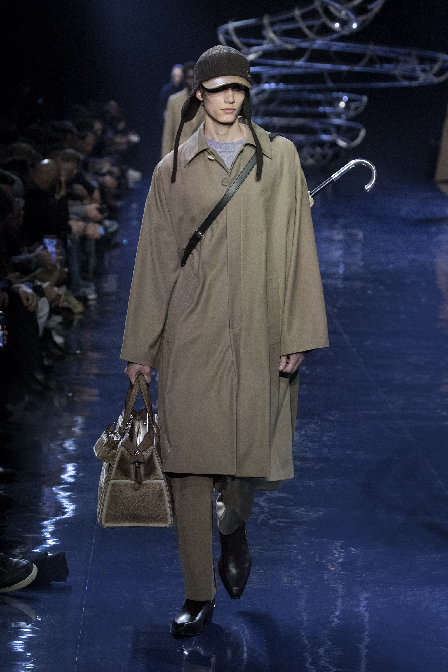 Avec un classicisme subverti inhérent au nom FENDI, les expressions de brillance et d’éclat sont intégrées dans un paysage d’expérimentation sartoriale. Les vêtements en trompe-l’œil qui trompent l’œil sont le résultat d’un travail dynamique – des codes maison détournés pour créer de nouveaux gestes de texture pelucheuse et de patine. En explorant la décadence de la ville et les lumières qui scintillent à la tombée de la nuit, les lignes s’estompent entre les silhouettes dures et traditionnelles de la mode masculine avec une nouvelle allure soignée. L’asymétrie et le volume insufflent géométrie et mouvement à la garde-robe sartoriale.