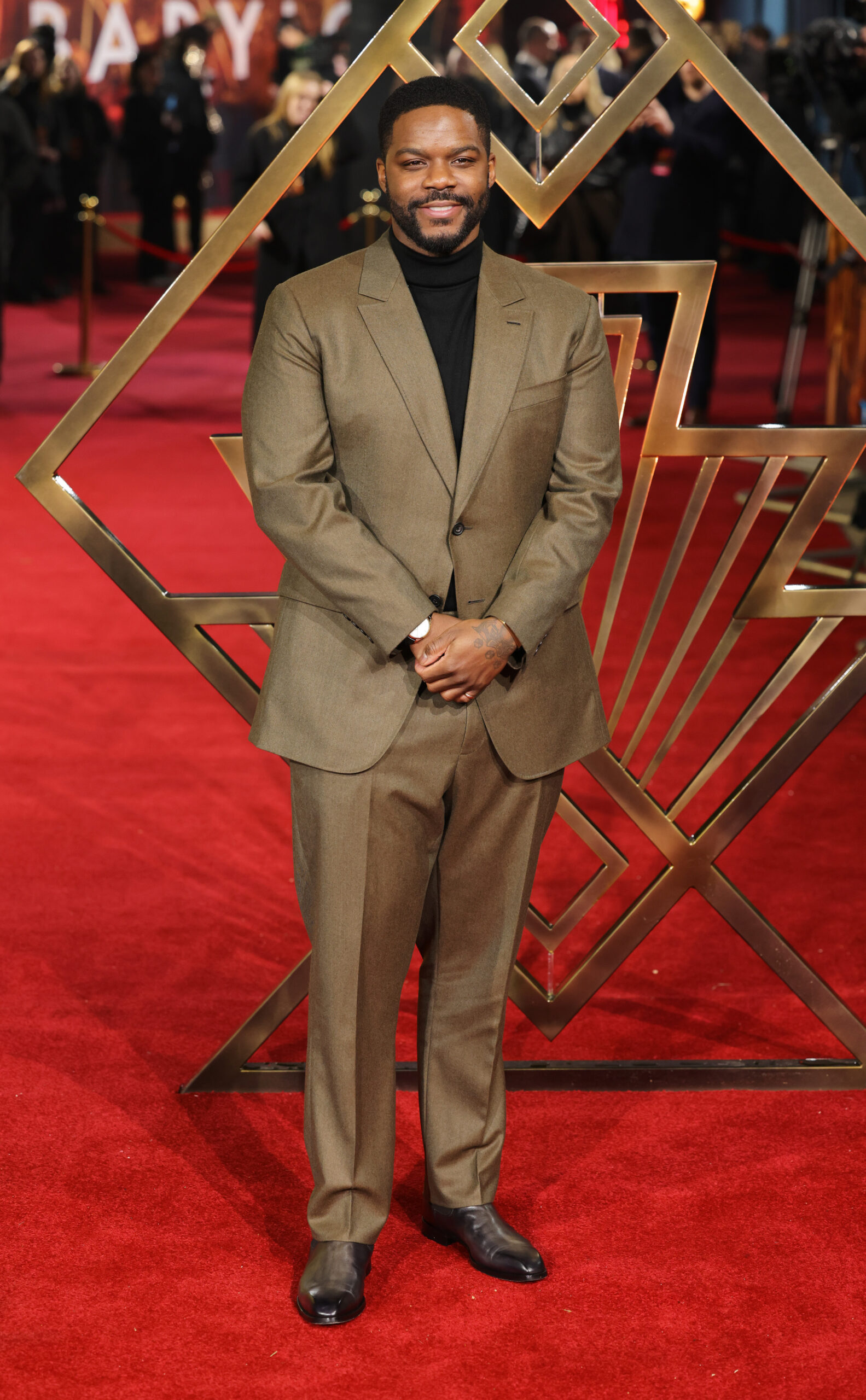 Jovan Adepo était habillé et chaussé par Berluti pour la premiere de Babylon