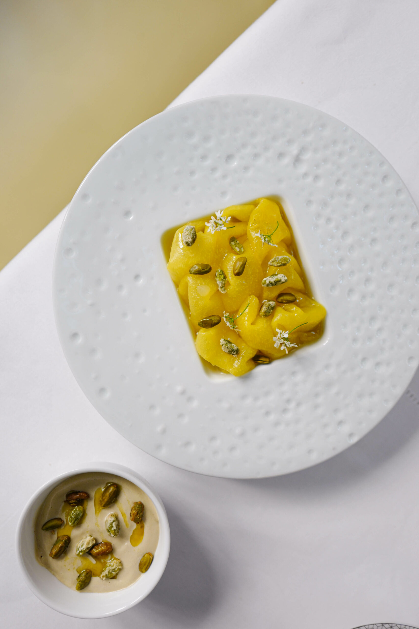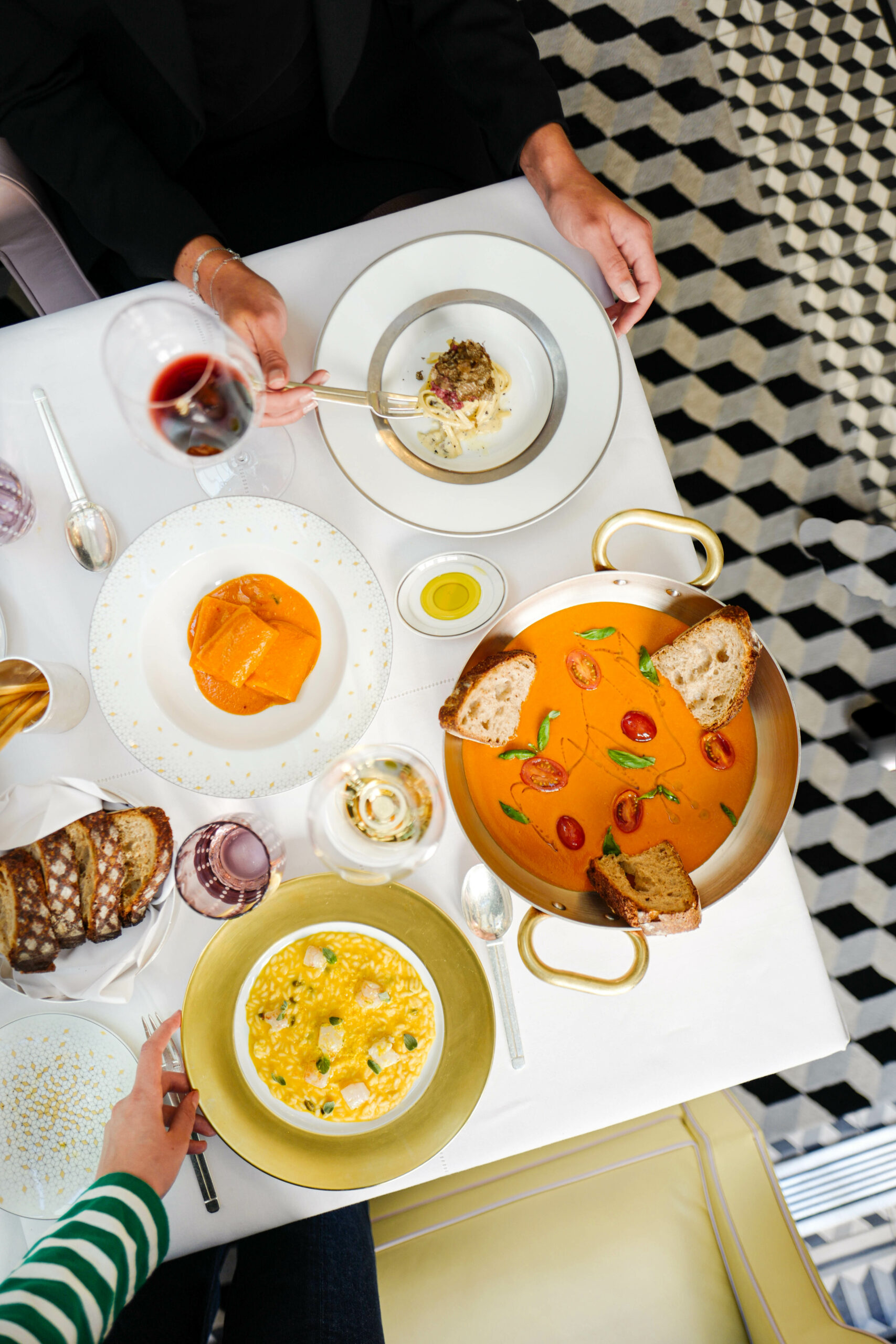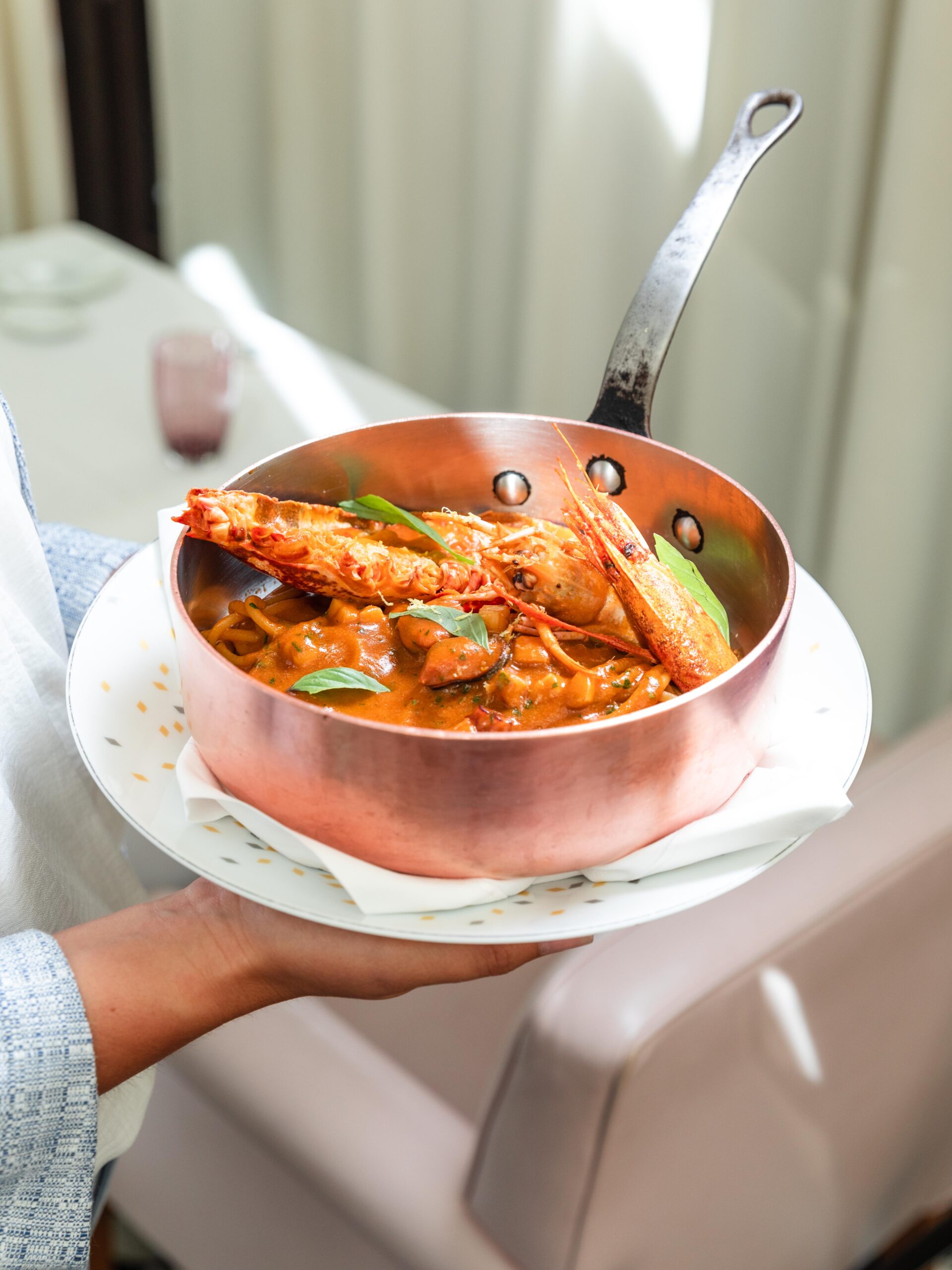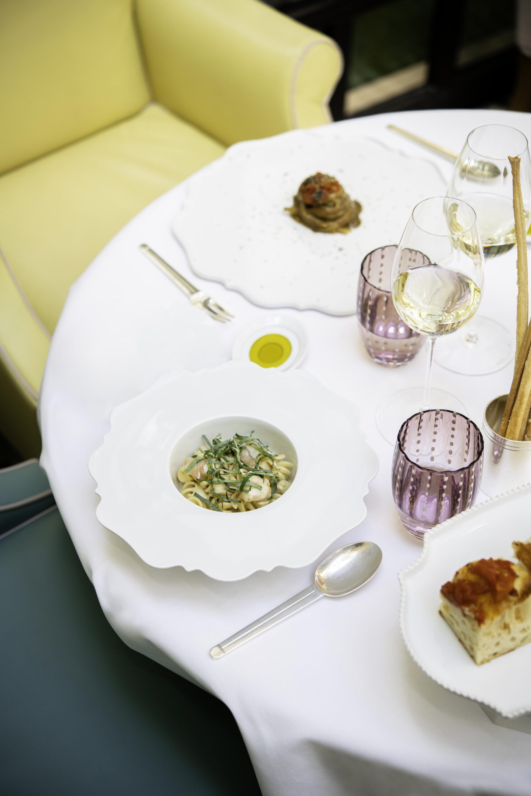Le couple de chefs, épaulé par le Chef Pâtissier Quentin Lechat, souhaite transmettre leur univers dans le plus parisien des Palaces. La haute gastronomie est au rendez-vous, mais cela ne va pas sans la notion de convivialité. Les chefs Oliver Piras et Alessandra Del Favero officient aussi bien en cuisine qu’en salle, où ils régalent les convives en préparant « en live show » leurs plats. Le talentueux duo offre une expérience gastronomique de l’entrée jusqu’au dessert grâce au fabuleux Chef Pâtissier Quentin Lechat qui signe la carte des pâtisseries italiennes revisitées avec son ADN mêlant simplicité, gourmandise et élégance. Côté vins, Clément Emery, Directeur de la Mixologie et de la Sommellerie, a réuni les plus beaux terroirs de la péninsule italienne via de prestigieux domaines, tout comme de nouvelles étoiles montantes, des pépites transalpines hors des sentiers battus.
