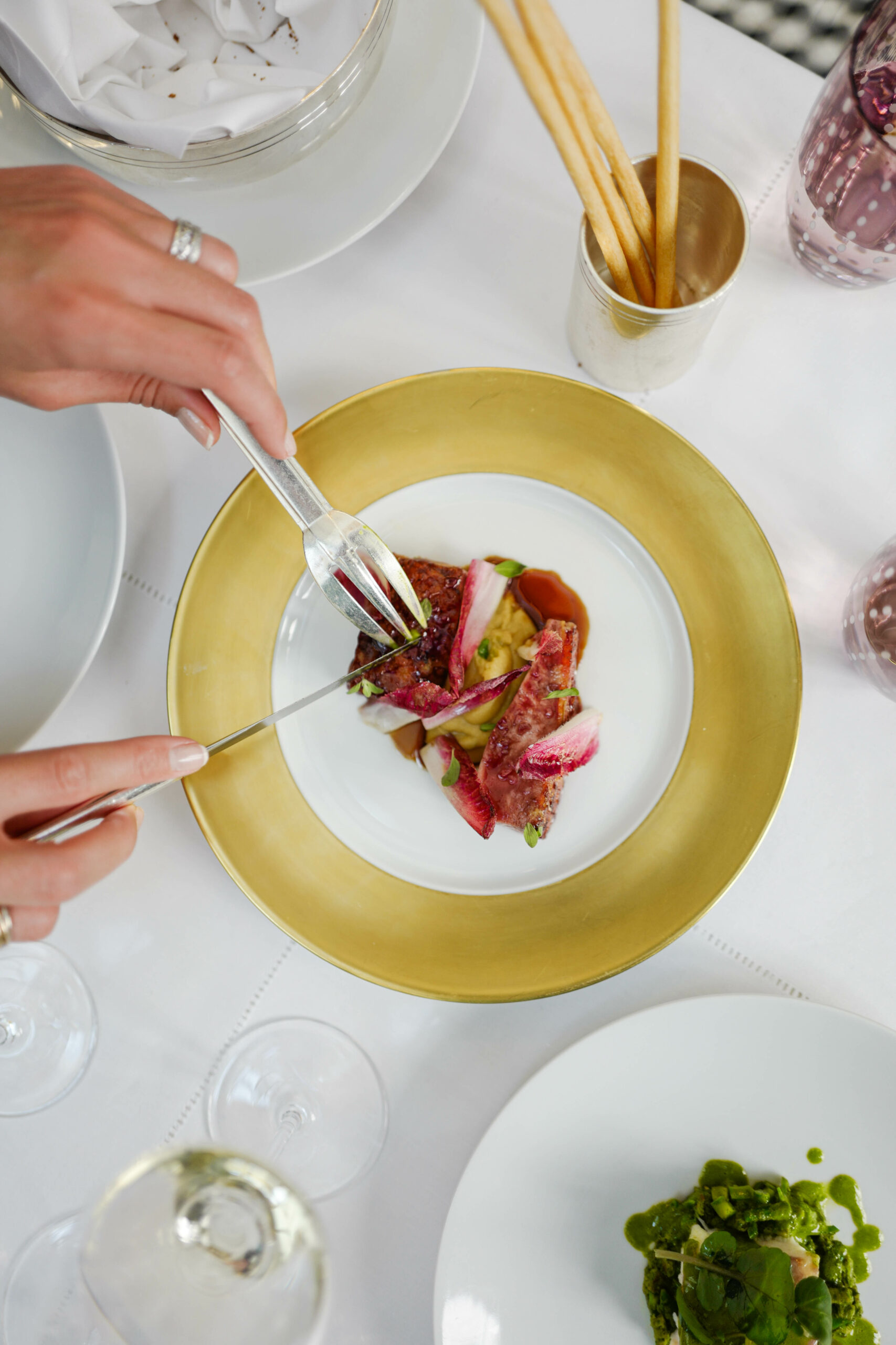 Leur cuisine est conviviale, les chefs aiment mettre en avant la notion de convivialité en préparant « en live show » leurs plats devant les convives, ils veulent transmettre leur univers dans le plus parisien des Palaces. La haute gastronomie est au rendez-vous, mais cela ne va pas sans la notion de convivialité. Le talentueux duo offre une expérience gastronomique de l’entrée jusqu’au dessert grâce au fabuleux Chef Pâtissier Quentin Lechat qui signe la carte des pâtisseries italiennes revisitées avec son ADN mêlant simplicité, gourmandise et élégance. Côté vins, Clément Emery, Directeur de la Mixologie et de la Sommellerie, a réuni les plus beaux terroirs de la péninsule italienne via de prestigieux domaines, tout comme de nouvelles étoiles montantes, des pépites transalpines hors des sentiers battus.