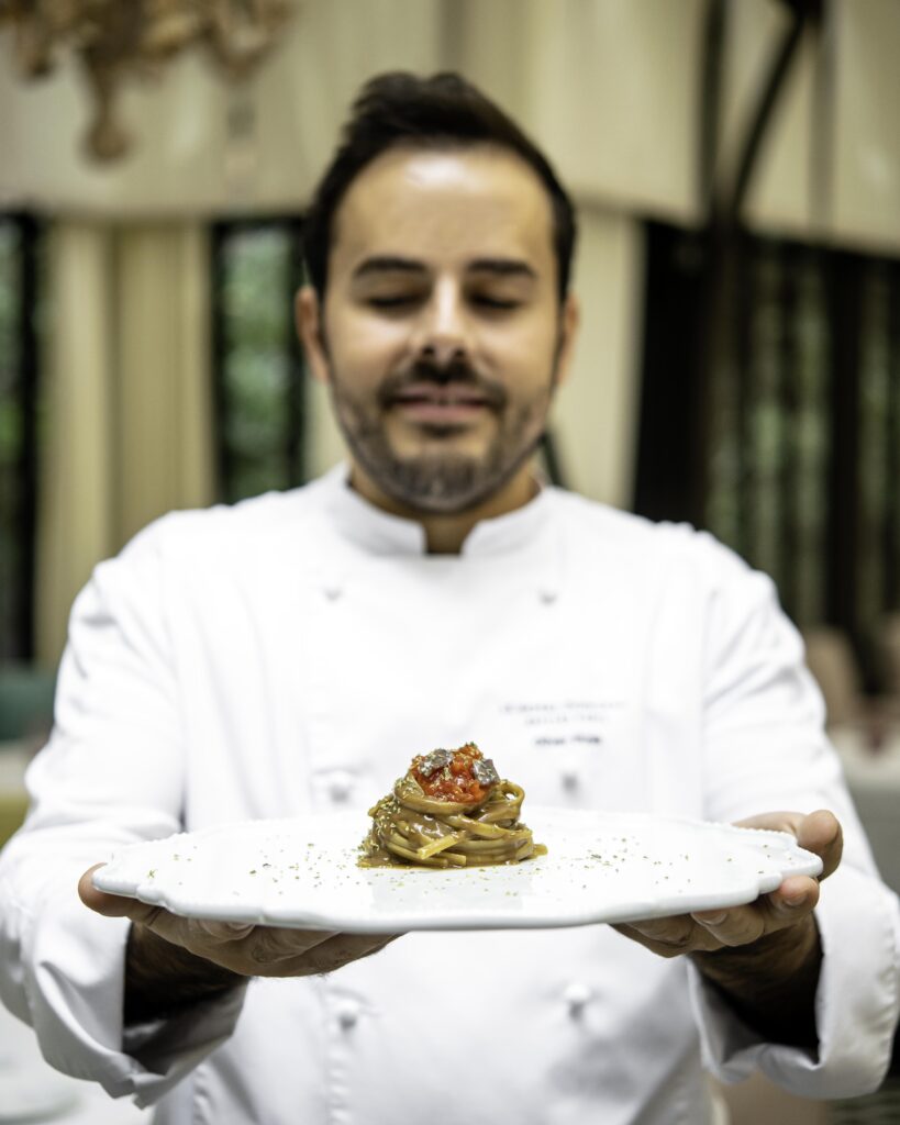 Le couple de chefs, épaulé par le Chef Pâtissier Quentin Lechat, souhaite transmettre leur univers dans le plus parisien des Palaces. La haute gastronomie est au rendez-vous, mais cela ne va pas sans la notion de convivialité. Les chefs Oliver Piras et Alessandra Del Favero officient aussi bien en cuisine qu’en salle, où ils régalent les convives en préparant « en live show » leurs plats. Le talentueux duo offre une expérience gastronomique de l’entrée jusqu’au dessert grâce au fabuleux Chef Pâtissier Quentin Lechat qui signe la carte des pâtisseries italiennes revisitées avec son ADN mêlant simplicité, gourmandise et élégance. Côté vins, Clément Emery, Directeur de la Mixologie et de la Sommellerie, a réuni les plus beaux terroirs de la péninsule italienne via de prestigieux domaines, tout comme de nouvelles étoiles montantes, des pépites transalpines hors des sentiers battus.