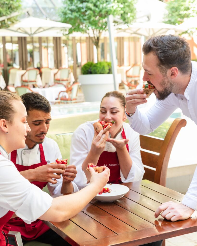 Leur cuisine est conviviale, les chefs aiment mettre en avant la notion de convivialité en préparant « en live show » leurs plats devant les convives, ils veulent transmettre leur univers dans le plus parisien des Palaces. La haute gastronomie est au rendez-vous, mais cela ne va pas sans la notion de convivialité. Le talentueux duo offre une expérience gastronomique de l’entrée jusqu’au dessert grâce au fabuleux Chef Pâtissier Quentin Lechat qui signe la carte des pâtisseries italiennes revisitées avec son ADN mêlant simplicité, gourmandise et élégance. Côté vins, Clément Emery, Directeur de la Mixologie et de la Sommellerie, a réuni les plus beaux terroirs de la péninsule italienne via de prestigieux domaines, tout comme de nouvelles étoiles montantes, des pépites transalpines hors des sentiers battus.
