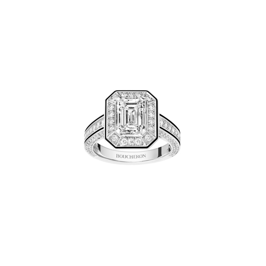 L’actrice Salma Hayek portait le collier Bois Brûlé Diamant, collection de Haute Joaillerie Carte Blanche, Ailleurs, en bois brûlé, pavé de diamants, sur or blanc, la bague Miroirs Infinis, de de la collection Haute Joaillerie Contemplation, sertie d’un diamant taille émeraude de 5,31 ct et de cristal de roche, pavée de diamants, sur or blanc, ainsi que le solitaire Vendôme Liseré, serti d’un diamant taille émeraude, pavé de diamants, sur or blanc, avec laque noire.