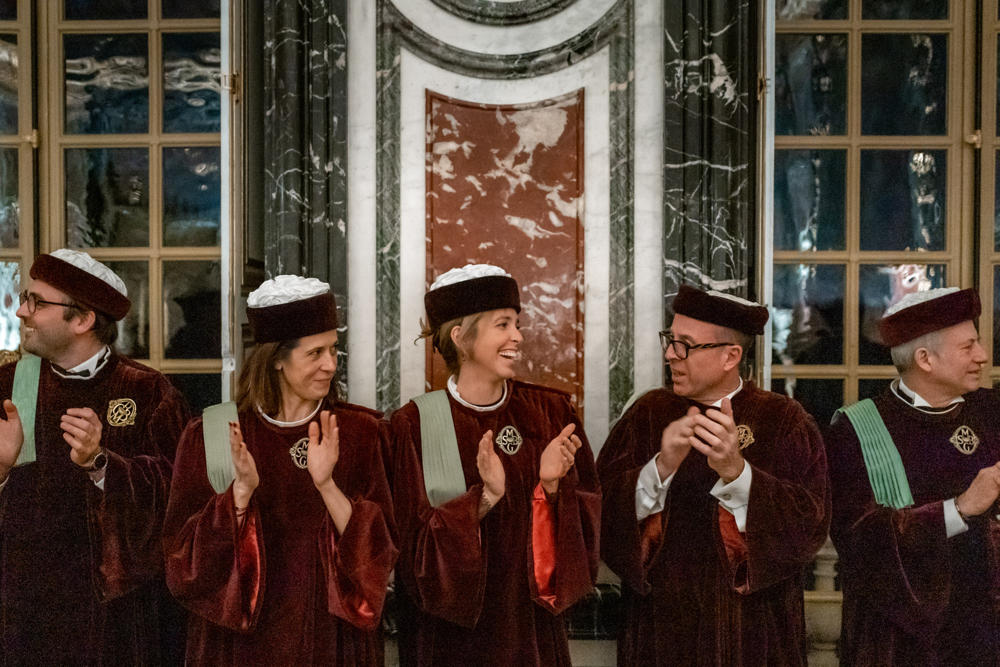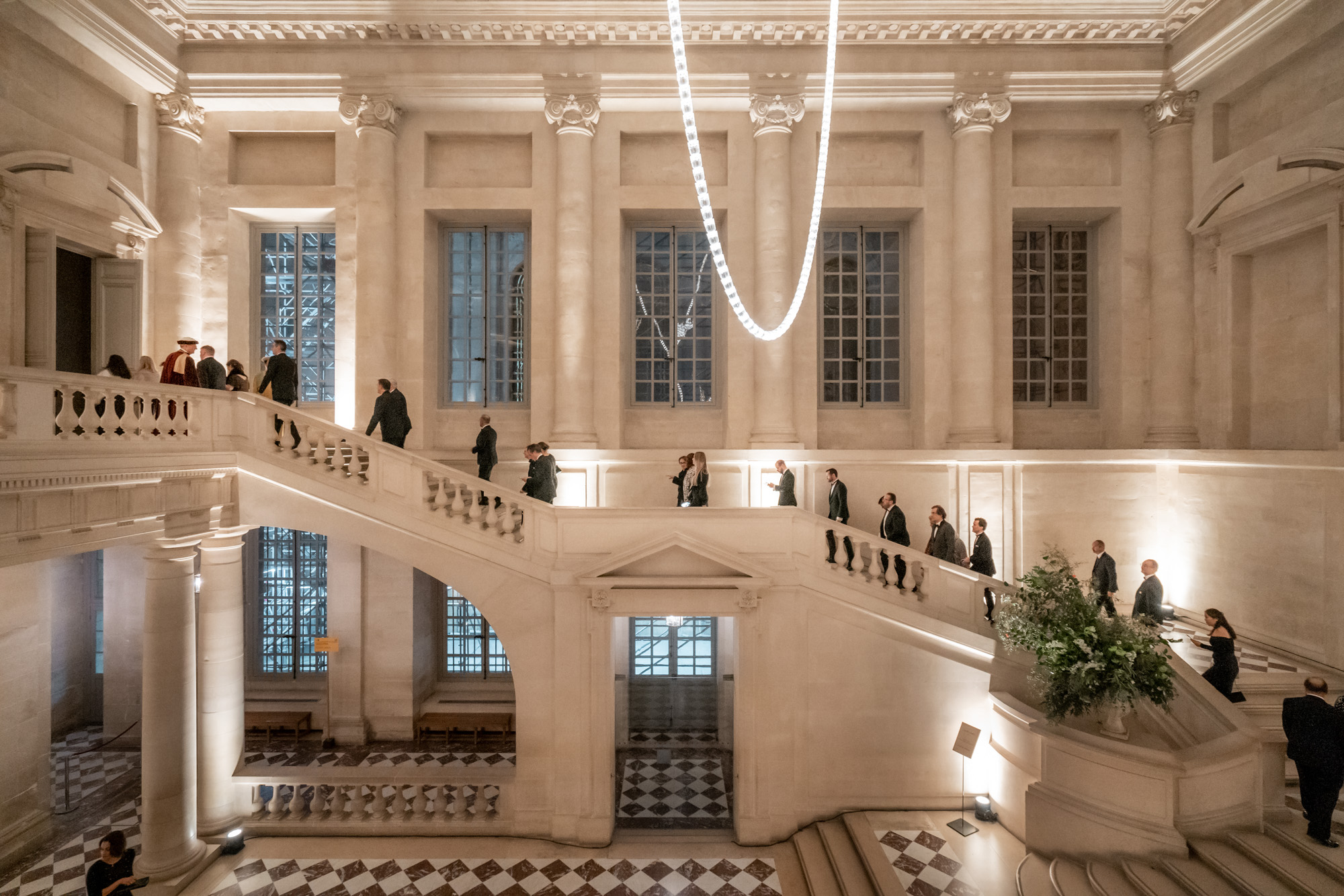 La soirée a débuté par une visite privée à travers les Appartements du Roi, la Galerie des Glaces et les Appartements de la Reine. Puis, suite à cette immersion privilégiée au cœur de ce lieu mythique du patrimoine français, les invités ont été accueillis par une haie d’honneur des 80 Commandeurs titulaires qui les conduisit au cocktail où les festivités pouvaient commencer autour du Château de France blanc 2021, Château Malescasse 2016 et Château de Myrat 2016.