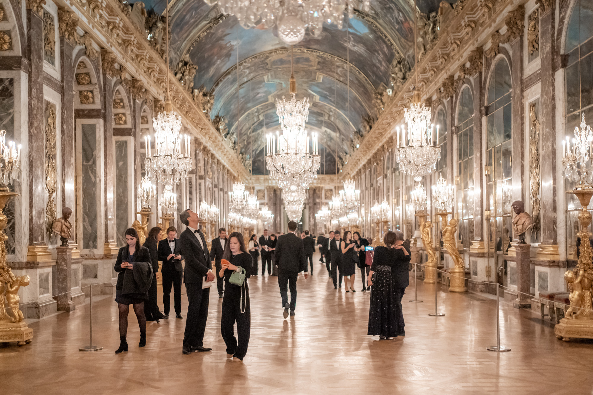 Le dîner se déroulait ensuite dans la Galerie des Batailles, la plus importante des galeries historiques créées par Louis-Philippe qui célèbre les plus grandes batailles et victoires de France.