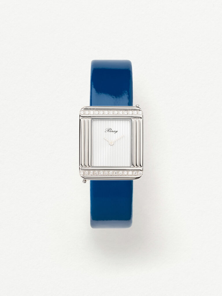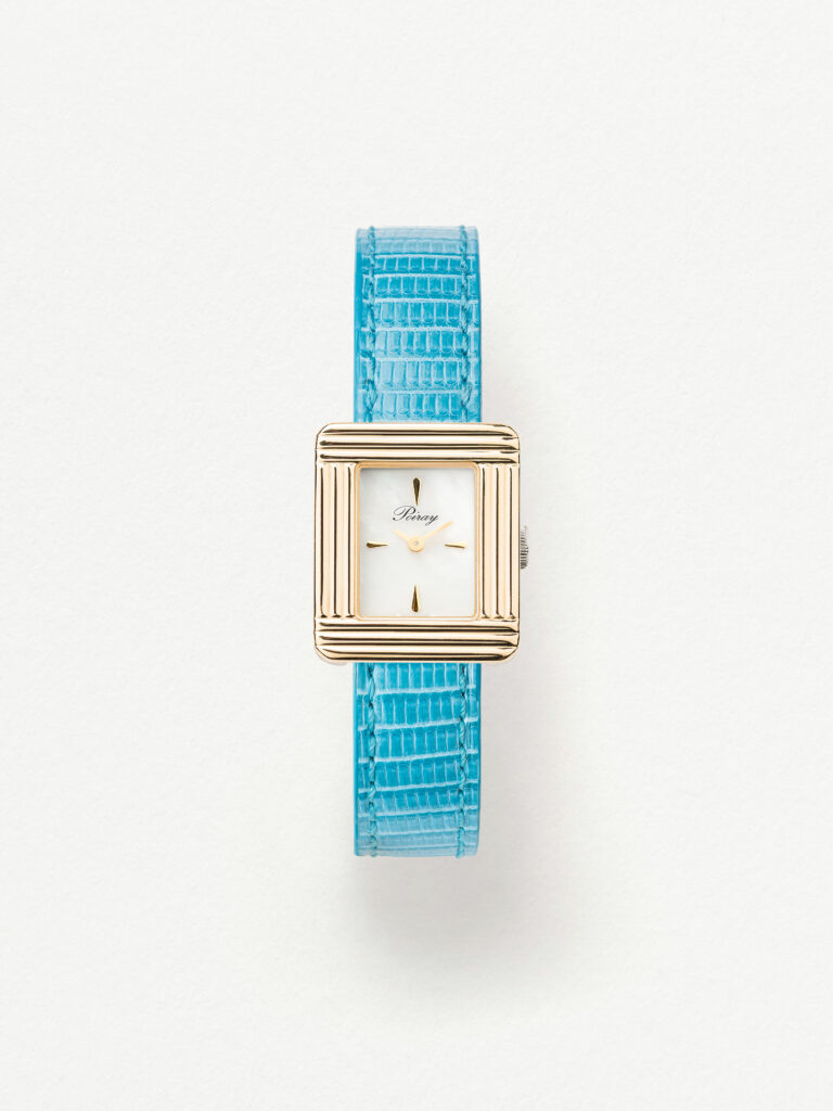 La collection horlogère de la Maison Poiray est un chef-d’œuvre de raffinement et d’ingéniosité. La montre iconique « Ma Première » est un véritable joyau de technologie, avec son système unique d’ouverture à cliquets qui permet de changer de bracelet au gré de ses envies. Et quelle palette de choix ! Du bracelet en lézard turquoise pour une touche d’exotisme, au bracelet en alligator bleu roi pour une allure plus royale, en passant par le bracelet en veau vernis bleu azur pour un look plus sophistiqué, il y en a pour tous les goûts et toutes les occasions.