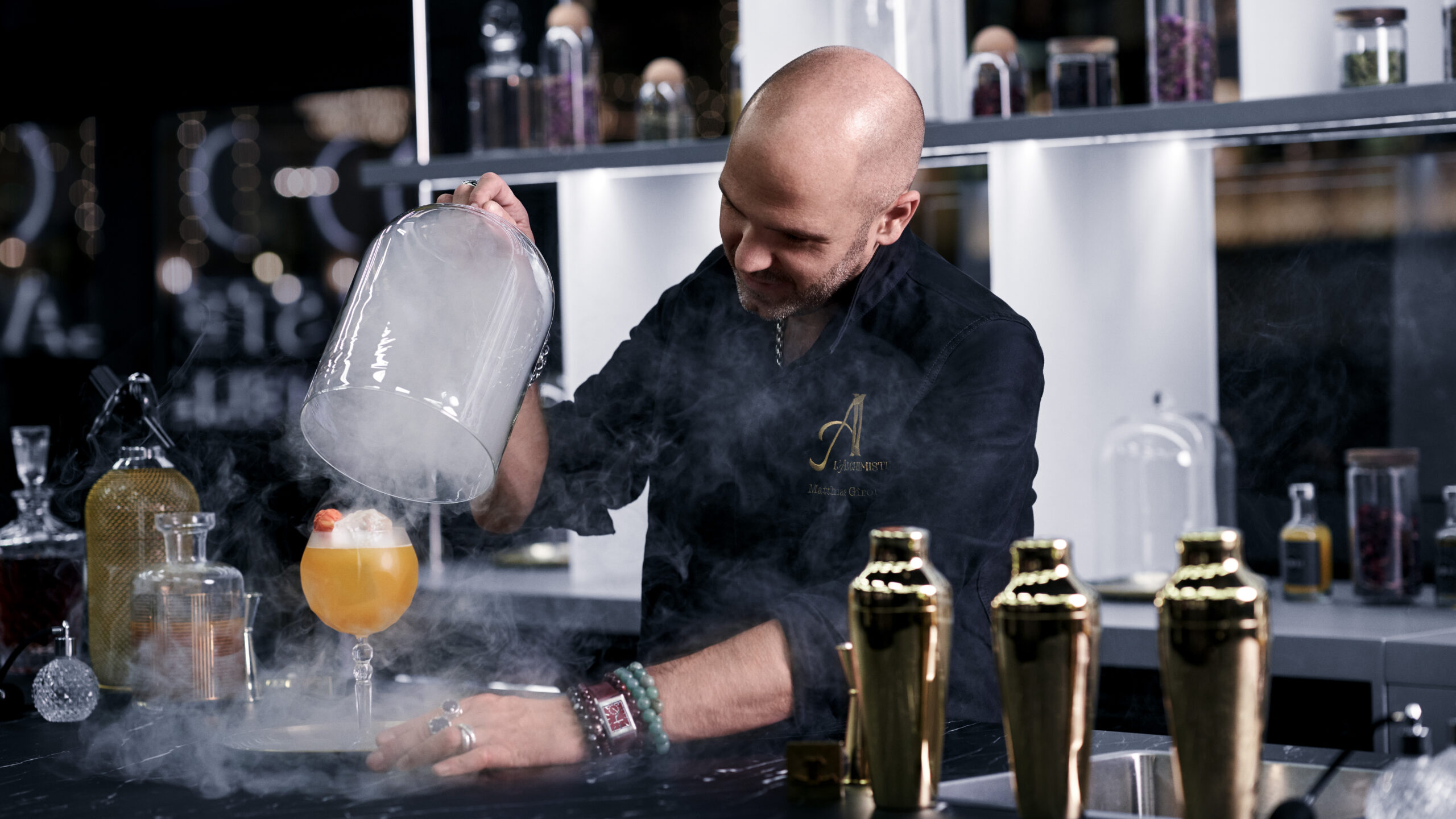 Pour enrichir l’expérience, Jaeger-LeCoultre a demandé à Matthias Giroud, mixologue de renommée mondiale, de créer un menu spécial de cocktails sans alcool. Considéré comme un artiste alchimiste dans son domaine, Matthias a combiné une inspiration céleste avec des saveurs provenant de la Vallée de Joux, en Suisse.
