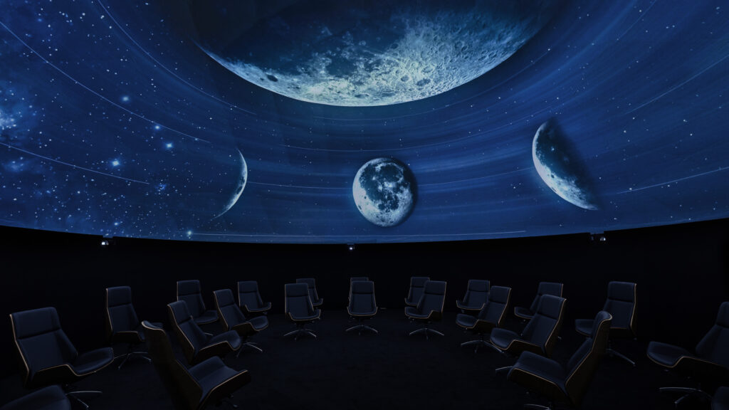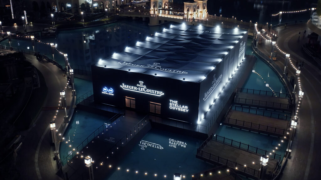 Présentant une sélection des pièces historiques les plus remarquables de la Manufacture ainsi que ses montres les plus récentes d’inspiration céleste, l’exposition comporte des installations multimédias qui emmèneront les visiteurs dans un voyage virtuel vers le cosmos. Elle traduit les merveilles du monde céleste en installations artistiques et en expériences multisensorielles, tandis que l’Atelier d’Antoine, du nom du fondateur de la Maison, partage le savoir-faire horloger par le biais d’ateliers éducatifs pratiques basés sur le thème de l’Odyssée stellaire. Au cœur du pavillon principal, sous un dôme géodésique, un spectacle numérique immersif emmène les visiteurs dans un voyage virtuel à travers l’espace et le temps, les transportant dans l’espace infini et 13,7 milliards d’années pour révéler les mystères du cosmos en cinq épisodes – des origines de notre univers à nos jours. Parmi les points forts de cette exposition figure également une nouvelle installation artistique, Passengers : Through Time, de l’artiste visuel français Guillaume Marmin, qui fait ses débuts à Dubaï. Spécialement commandée par Jaeger-LeCoultre, ses reflets infinis et ses perspectives étonnantes invitent les visiteurs à réfléchir à la question fondamentale de ce qu’est réellement le temps.