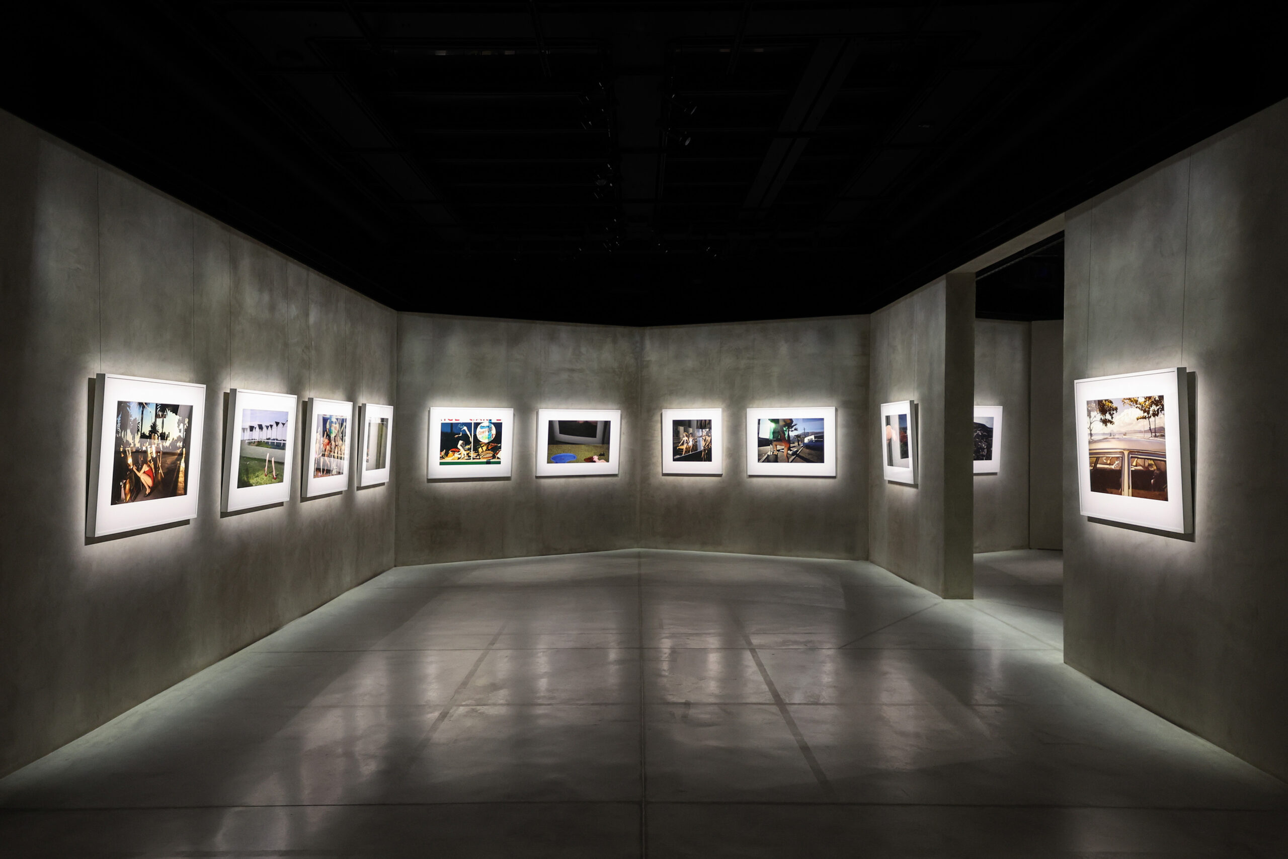 Pour l’exposition à l’Armani/Silos, Giorgio Armani et The Guy Bourdin Estate ont sélectionné une centaine de photographies, comprenant à la fois des clichés iconiques et des images moins connues. L’utilisation de couleurs saturées – une caractéristique essentielle du style de Guy Bourdin – est explorée dans une salle entièrement composée de rouges, de verts et de roses, tout comme son approche de la forme déconstruite, notamment lorsqu’il joue avec les mannequins, et sa composition inimitable. Vingt et une photographies en noir et blanc montrent à quel point la capacité expressive de Bourdin est immédiate, même avec les contrastes les plus simples. Une section explore l’amour de Bourdin pour le cinéma, élément central de sa créativité, avec une sélection d’images de campagnes publicitaires montrant ce qui semble être des scènes de crime ou des poursuites policières, faisant allusion à sa fascination pour Alfred Hitchcock et à la thématique de « l’intrigue mystérieuse ».