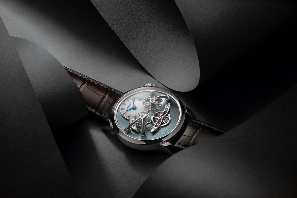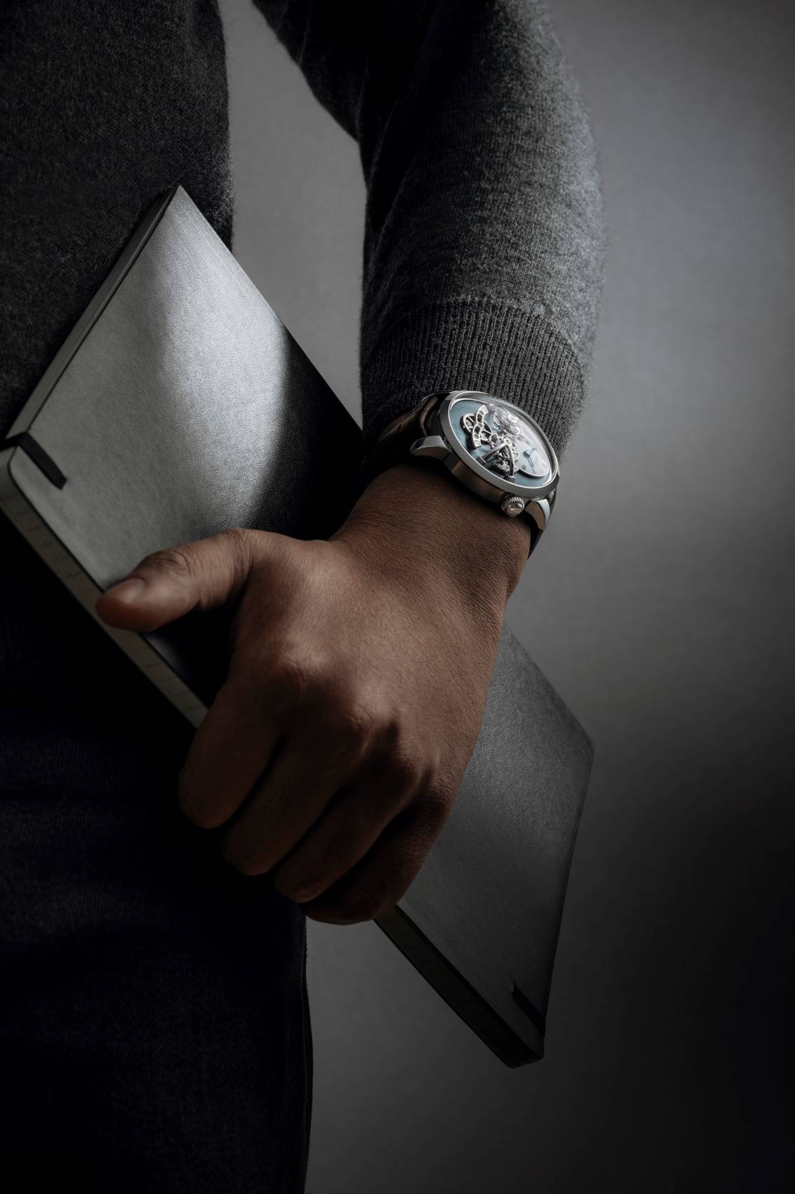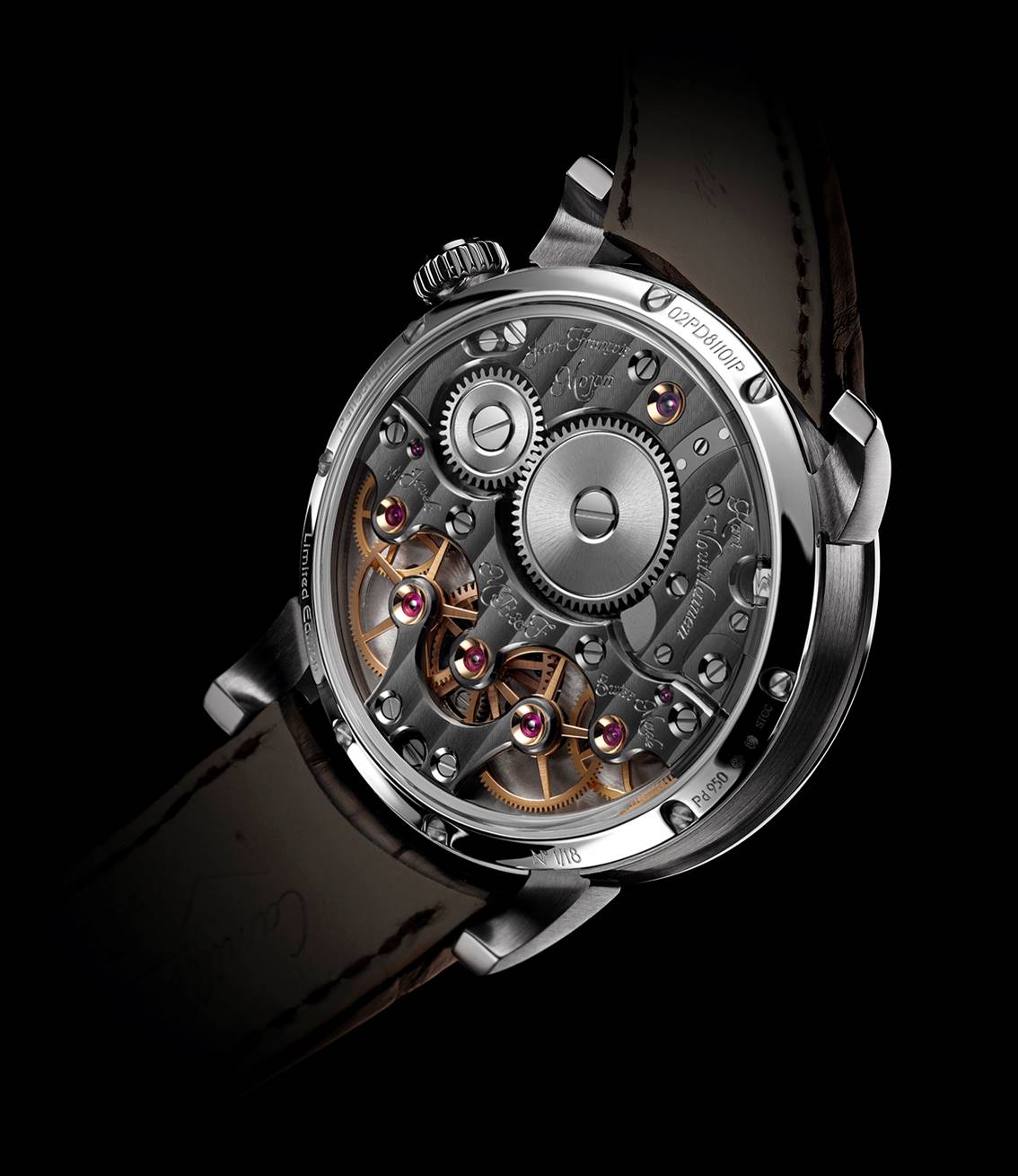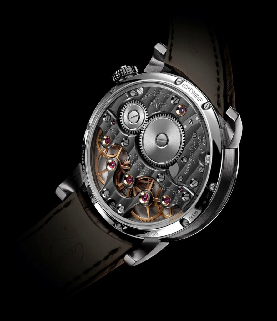 À l’occasion du 10e anniversaire de la LM2, une édition limitée de 18 pièces en palladium, un métal précieux et difficile à travailler, a été présentée. Le cadran vert d’eau, qui est caractéristique de nos éditions en palladium, recouvre le calibre LM2 conçu par Jean-François Mojon et Kari Voutilainen.