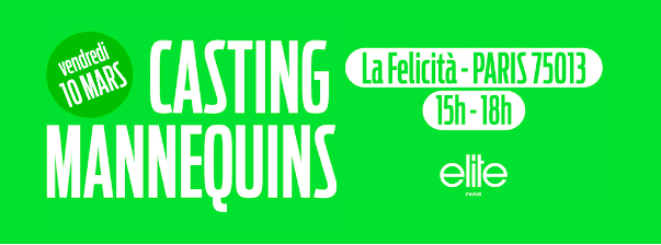 L’agence de mannequins ELITE part à la recherche de nouveaux talents et organise son premier casting régional de l’année à Paris, le vendredi 10 mars à La Felicità ! ELITE lance un appel à tous les aspirants mannequins, filles et garçons, qui souhaitent devenir top model et fouler les podiums du monde entier !