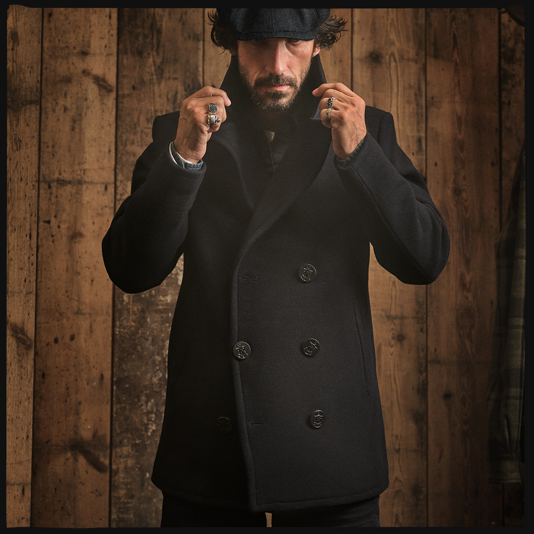 La collection comprend un caban à la coupe impeccable, un jean en denim Selvedge qui se patine avec le temps, une surchemise matelassée en laine mélangée de qualité supérieure, une chemise Merchant avec une coupe parfaite pour jouer la superposition et une casquette Baker Boy fabriquée à la main au Royaume-Uni à partir de Ribble Tweed sur mesure.