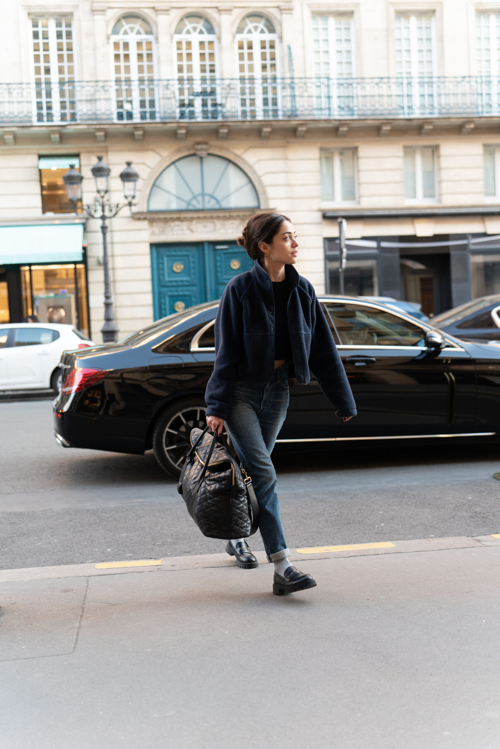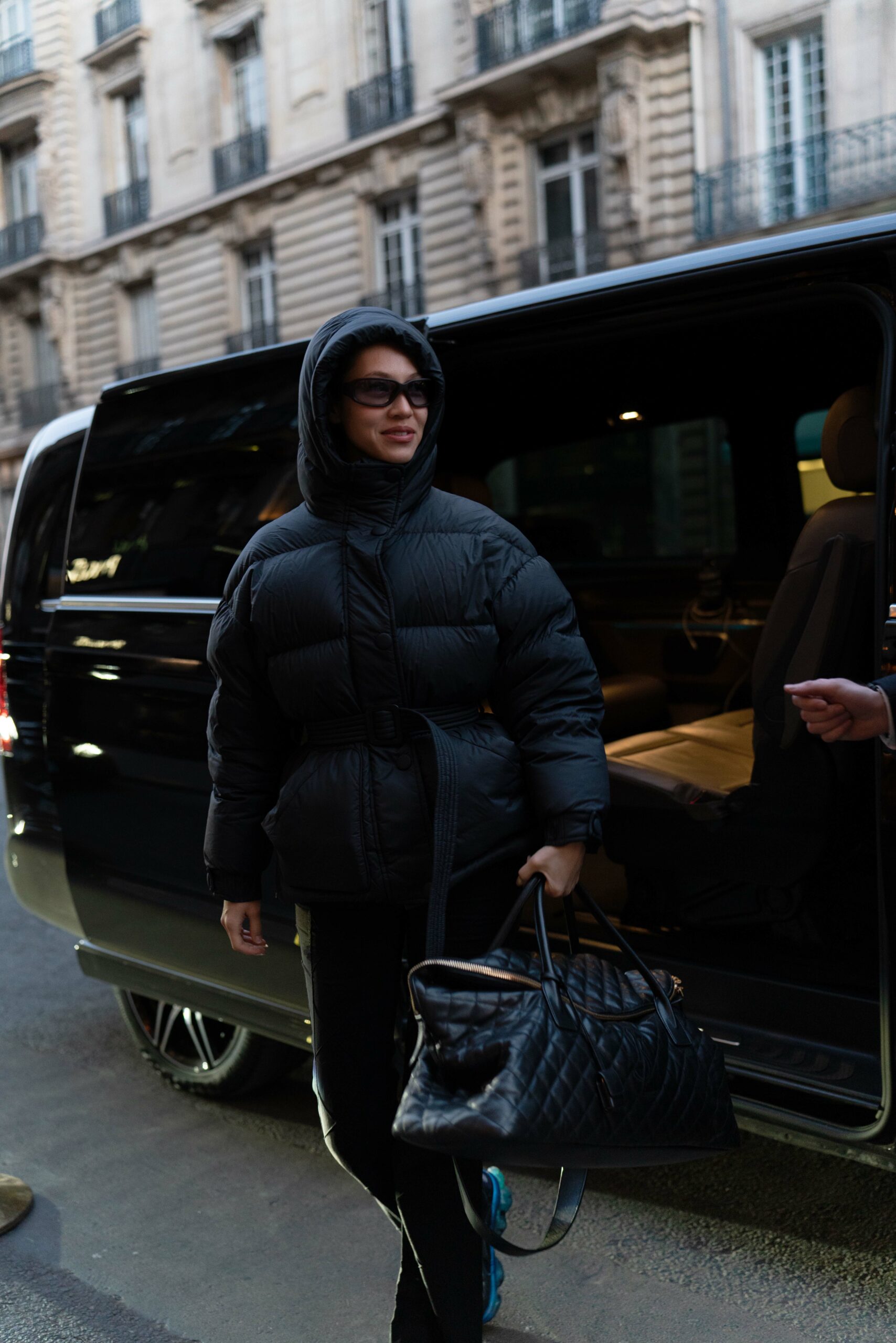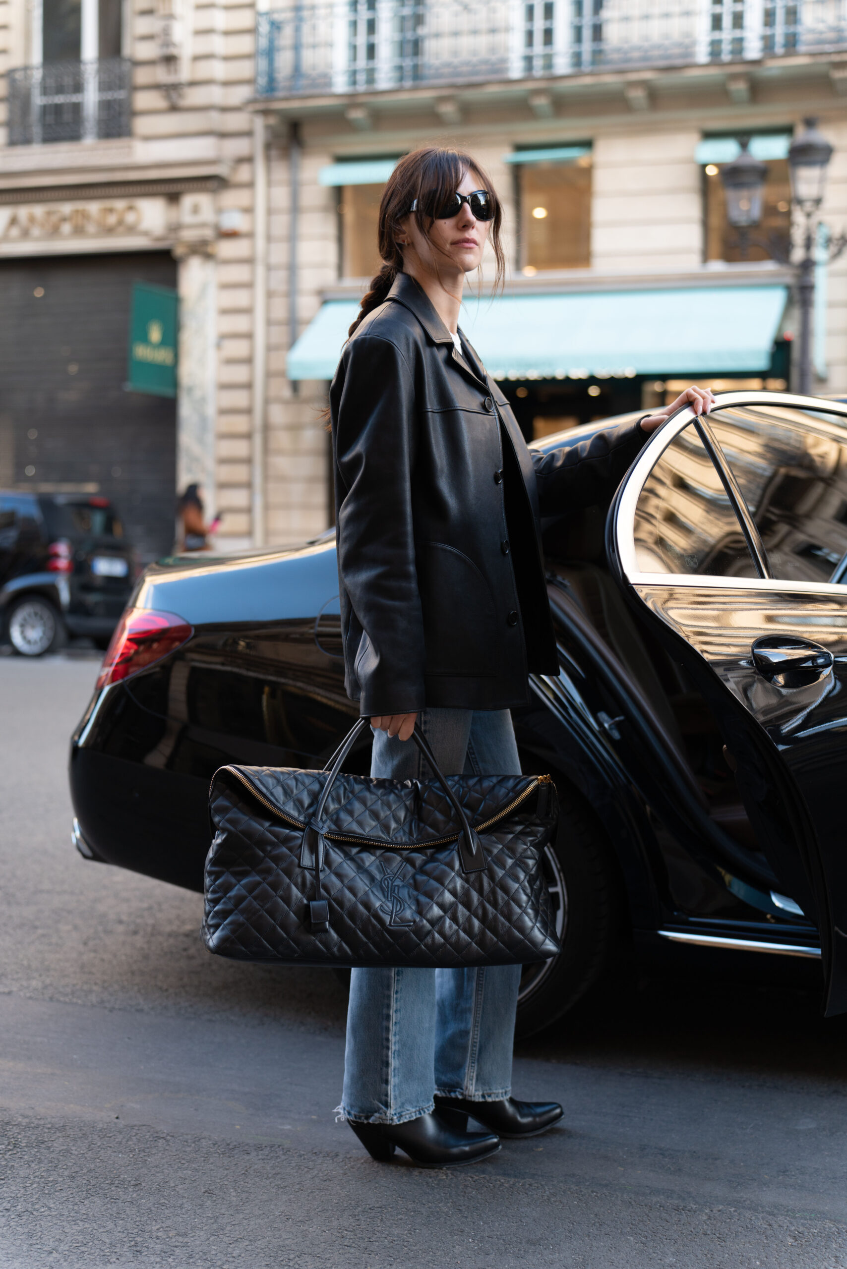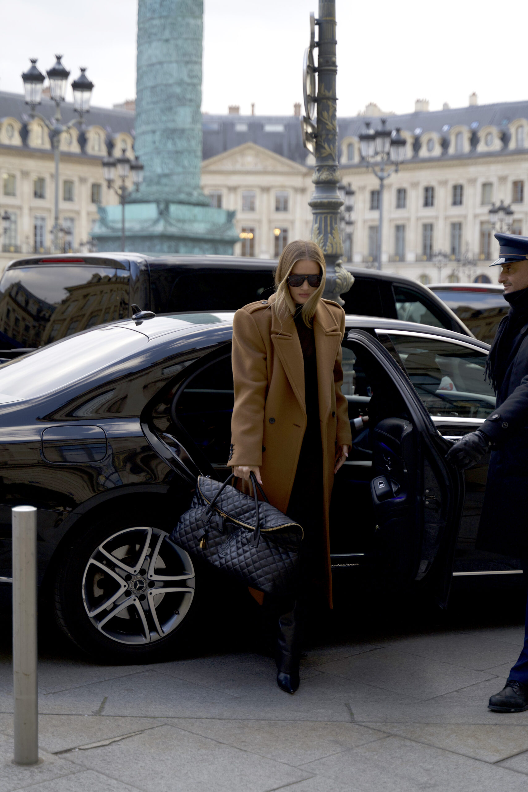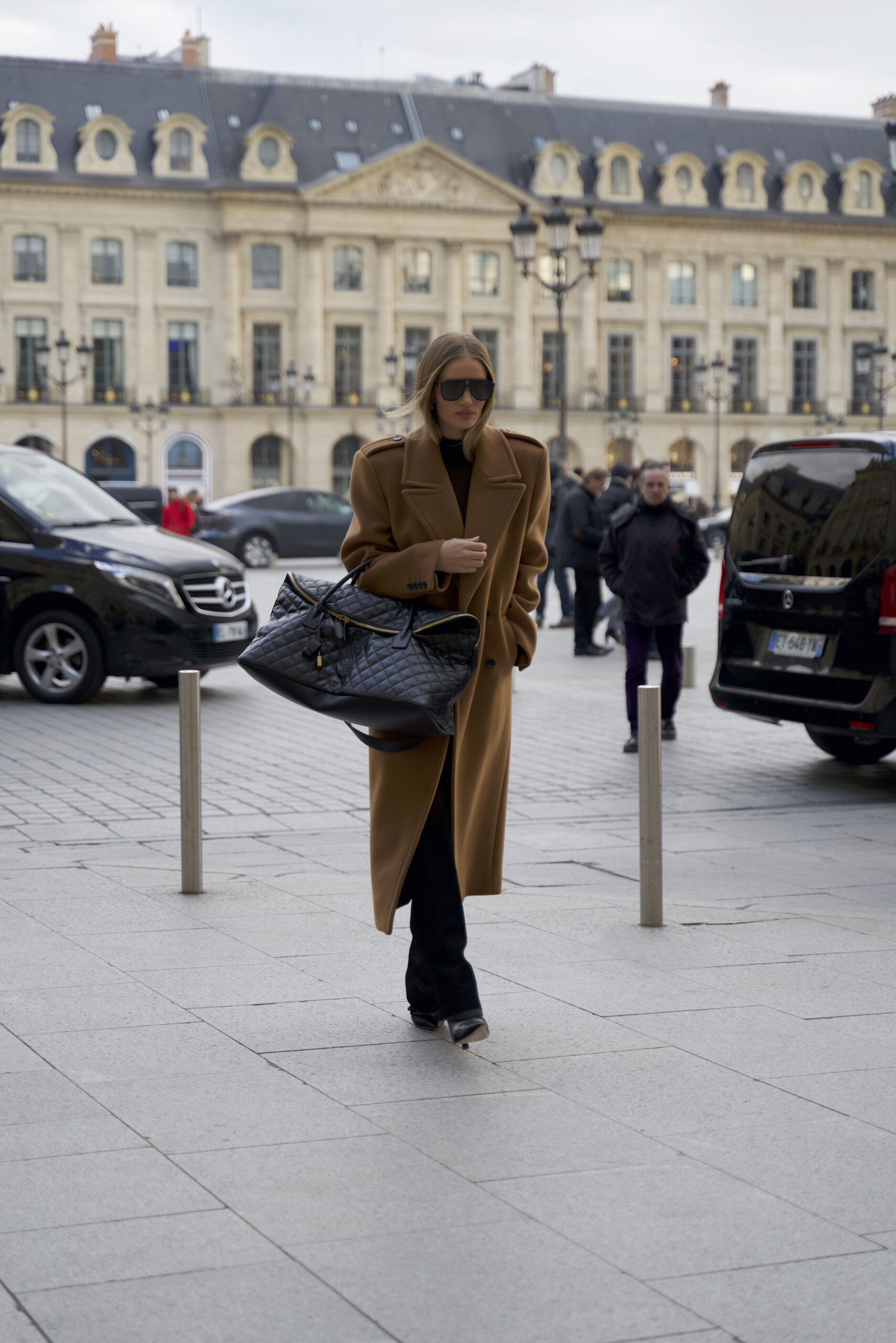Mark Tuan, Devon Lee Carlson, Nailea Devora, Liu Lingzi, Olivia Wilde, Kiko; Rosie Huntington-Whiteley wore the ES GIANT TRAVEL BAG in quilted leather.