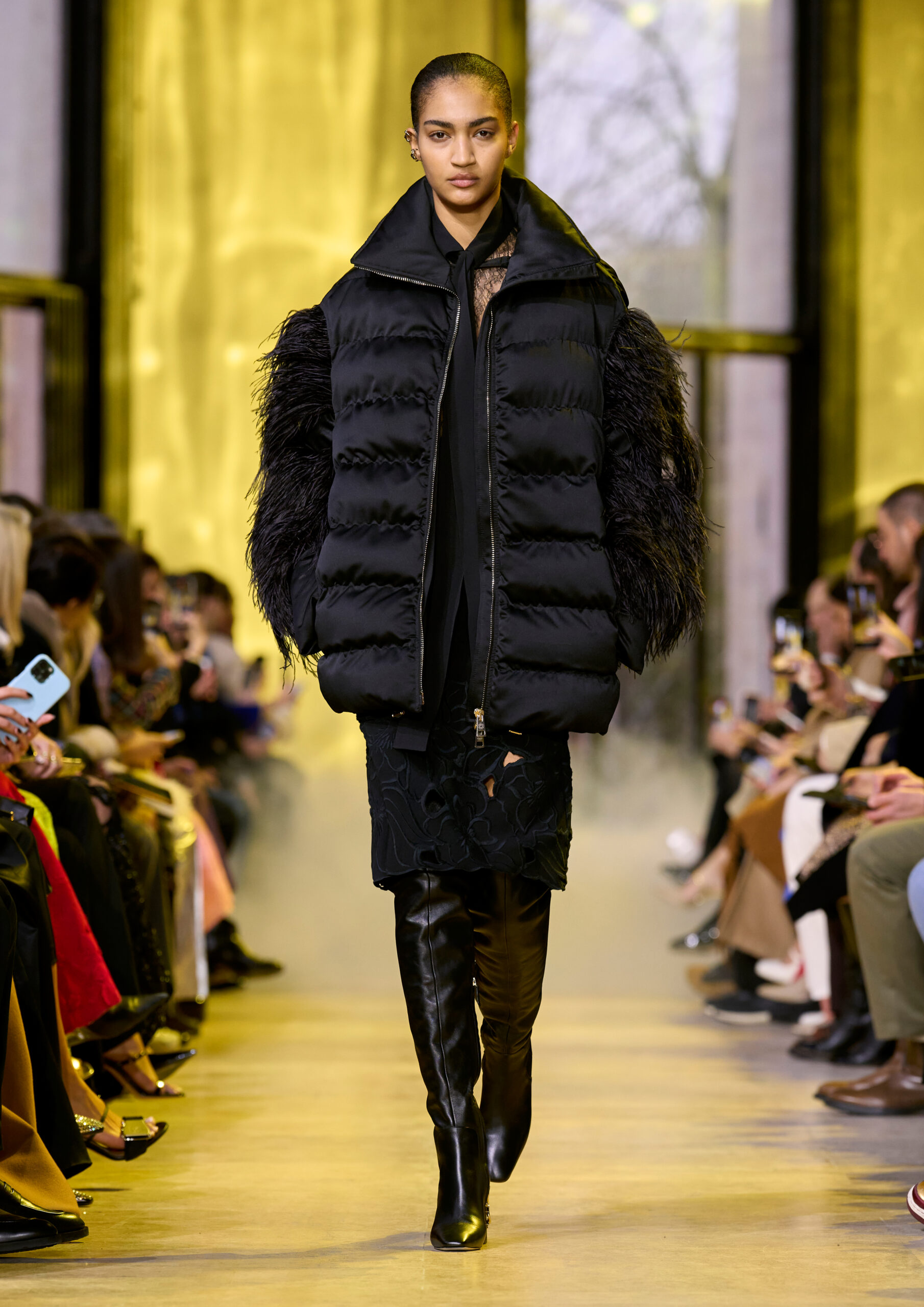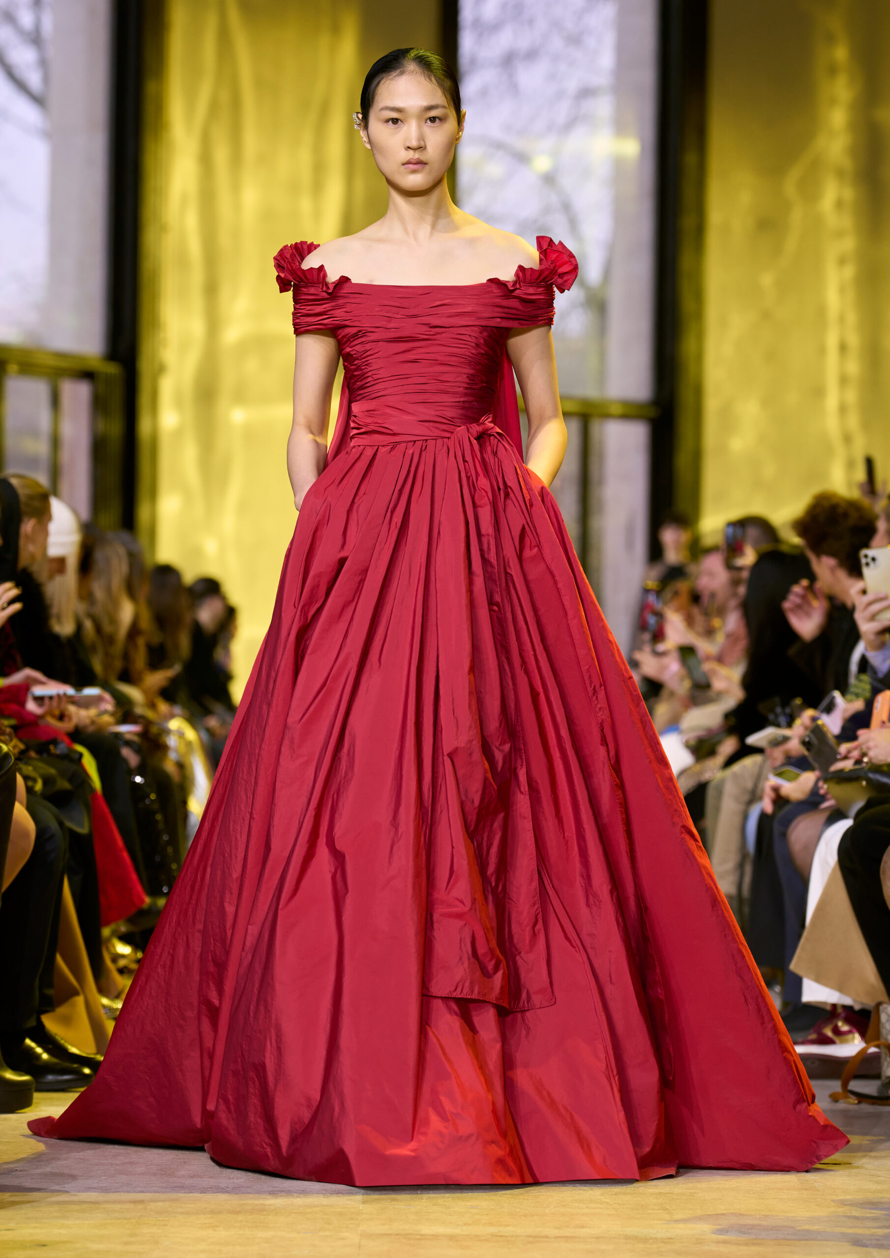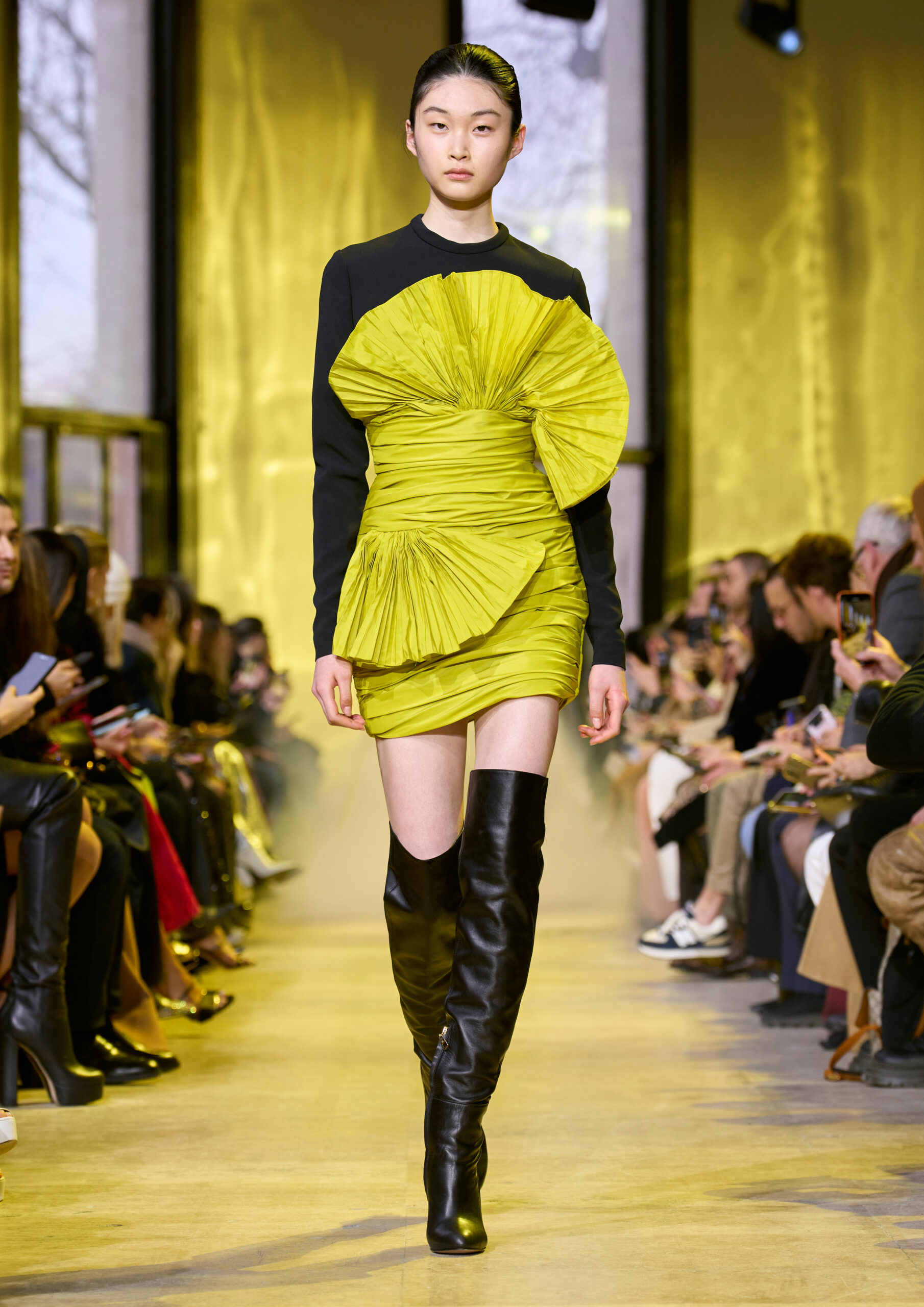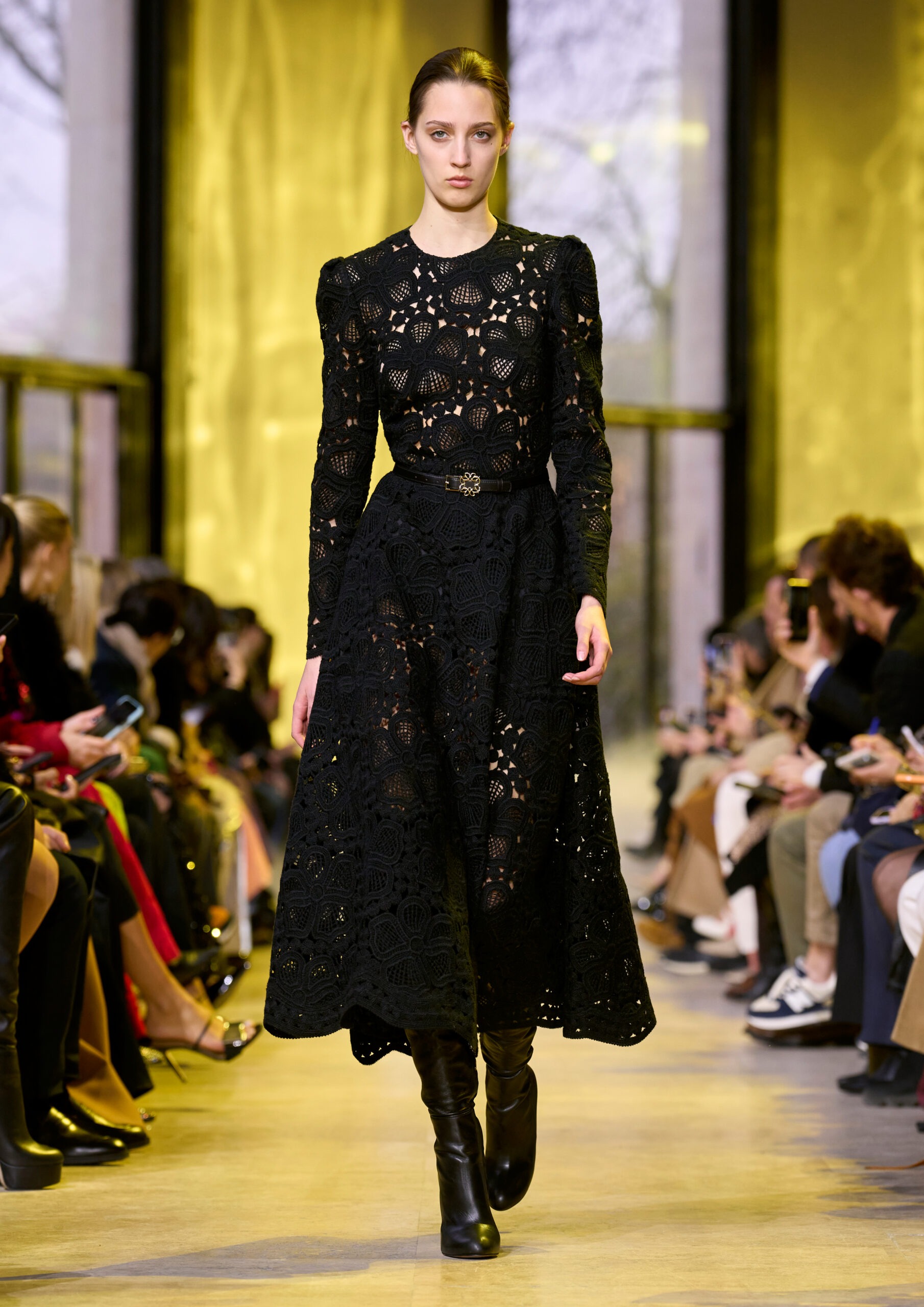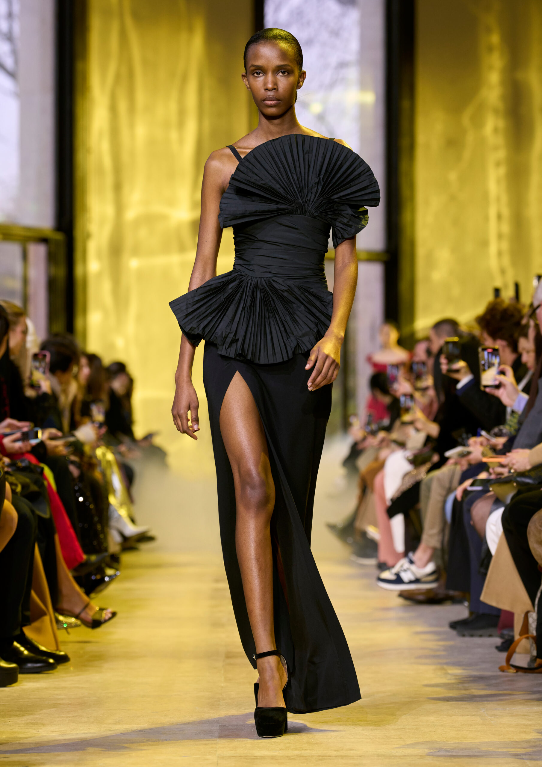 Les tenues portent la femme ELIE SAAB du jour à la nuit, où elle illumine les heures sombres. Des fleurs 3D complexes émergent de sequins étincelants et de tulle, se déplaçant sur les décolletés halter et les robes sirène transparentes. Des illuminations et des broderies de perles élaborées donnent une subtile brillance de cristal aux robes à décolleté en V et aux robes bustiers en velours moelleux et en crêpe agile. Des capes en soie fine avec capuche ajoutent une légère couche de prestance et de grandeur. Des taffetas puissants de New Red et de Citrine drapent et s’étalent sur les tailles de robes de cocktail courtes et de combinaisons-pantalons, et dans des robes flottantes avec des lignes d’épaules élaborées. Des fedoras en feutre doux – méticuleusement créés avec le maître chapelier italien, Borsalino – rehaussent délicatement les embellissements naissants sur les courts manteaux en laine. Des sacs à chaîne en cuir superposé et des talons hauts ELIE SAAB monogrammés en cristaux et en plexi ajoutent une touche finale de splendeur.