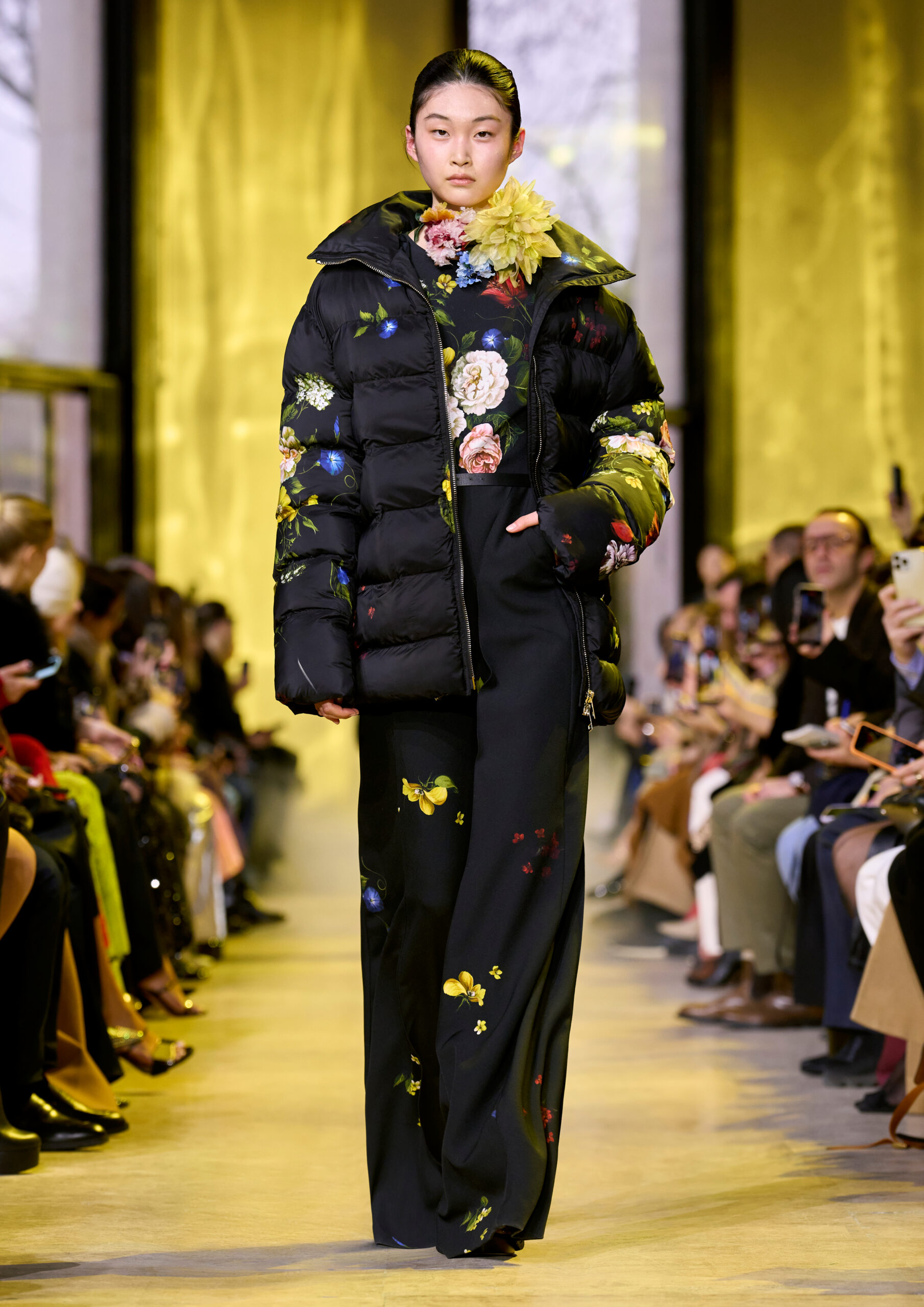 Des interprétations variées de motifs floraux romantiques aux tons sombres et aux textures moelleuses ravivent des expressions plus traditionnelles, les transportant dans la vibrance contemporaine. Des imprimés sombres et sourds dans des tons de Deep Ruby et de Midnight Forest avec des coups de Citrine vifs et lumineux ajoutent du contraste, de la profondeur et du mouvement dramatique aux silhouettes ajustées. Des traces d’hortensias florissants sont brodées en monochrome sur des toiles de chemisiers en coton blanc Moonflower et des pantalons évasés. De grands pétales en macramé s’entrelacent dans des robes noires à dos nu avec des jeux de transparence ludiques. Dans le même souffle fantasque, une dentelle délicate et transparente s’enroule passionnément autour des manteaux et des jupes avec des vestes assorties. Des vestes matelassées somptueuses en bouquets fleuris et en noir avec des détails de plumes aériennes apportent un équilibre amusant aux lignes plus sophistiquées.