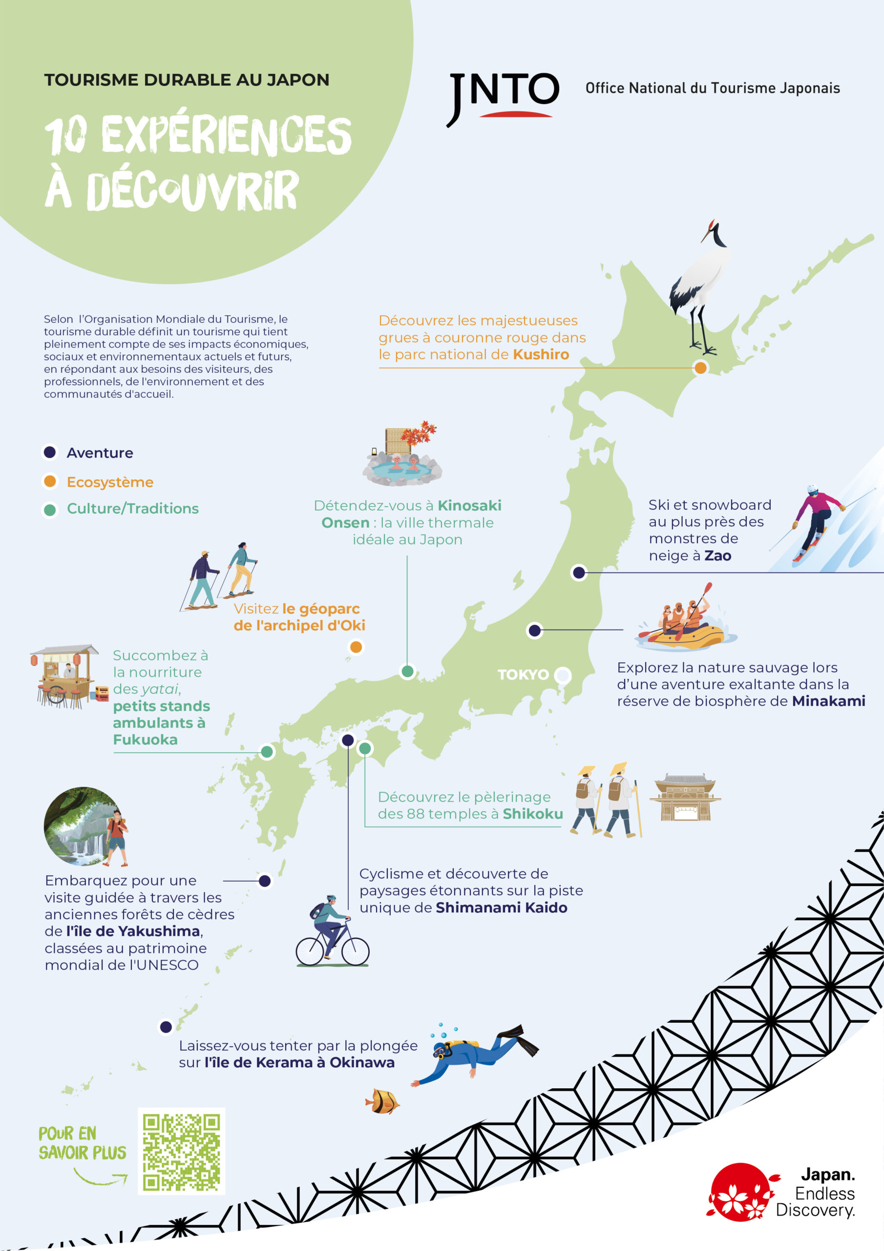 Le Japon est une destination touristique très populaire qui offre une variété d’expériences culturelles et naturelles uniques. Mais avec l’augmentation du tourisme mondial, il est important de promouvoir le tourisme durable pour minimiser l’impact environnemental et soutenir les communautés locales. Voici donc 10 expériences de tourisme durable au Japon, proposées par l’Office National du Tourisme japonais :