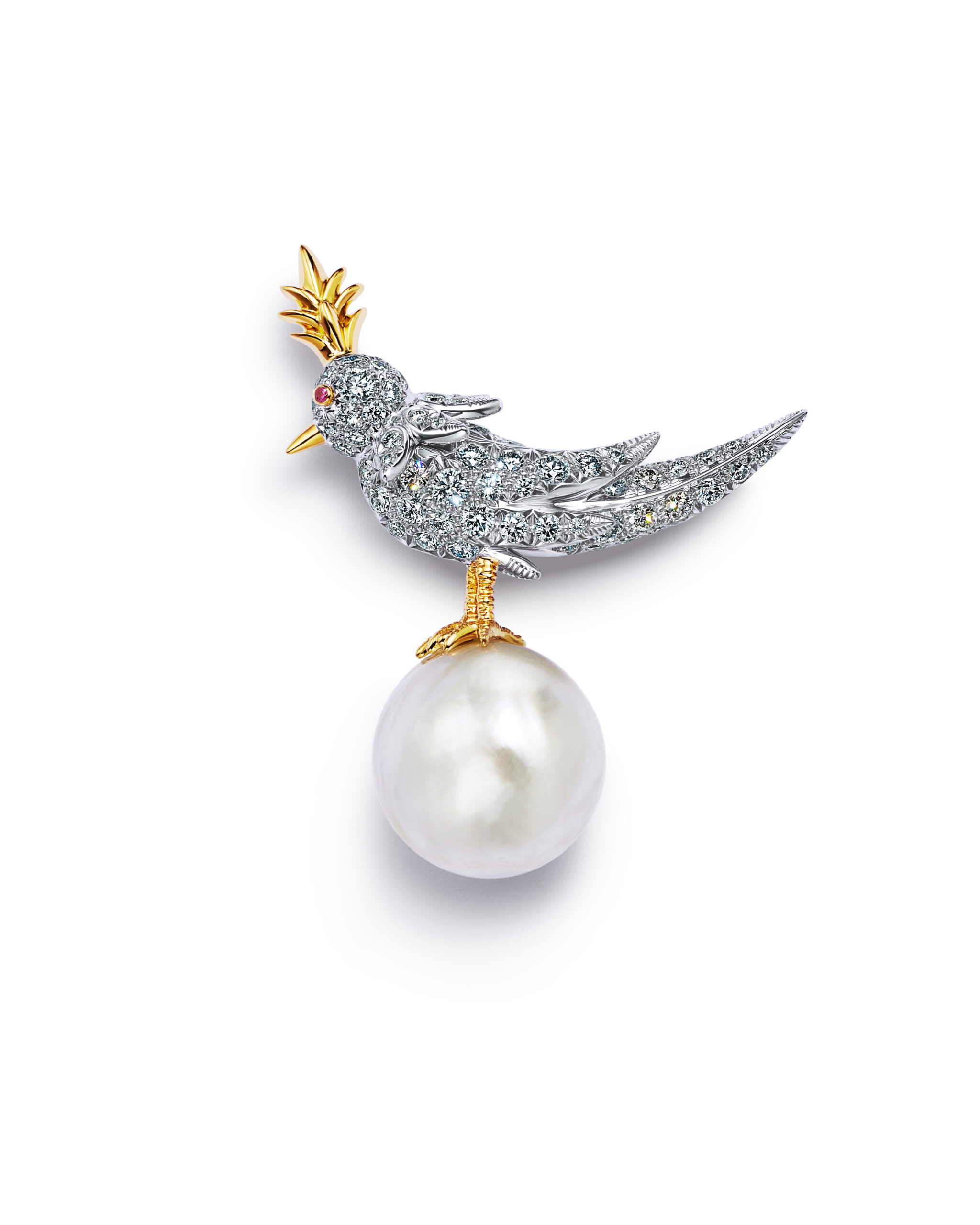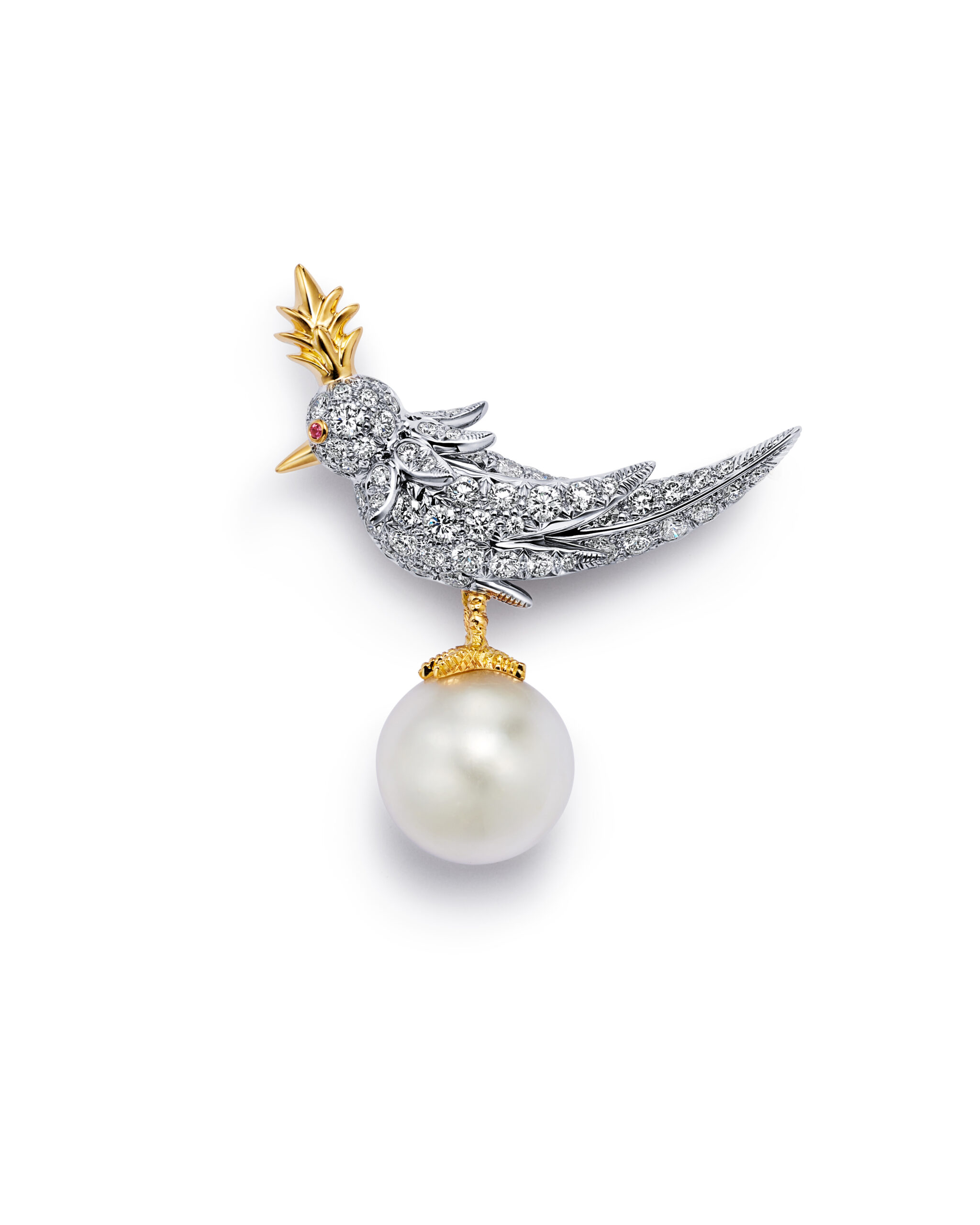 Une collection capsule exclusive de haute joaillerie qui réimagine la broche iconique Bird on a Rock avec les perles les plus rares au monde. Initialement créé by Jean Schlumberger en 1965, l’oiseau signature du designer, perché sur une pierre précieuse, évolue en une suite de créations exquises serties de perles naturelles d’eau de mer remarquables.