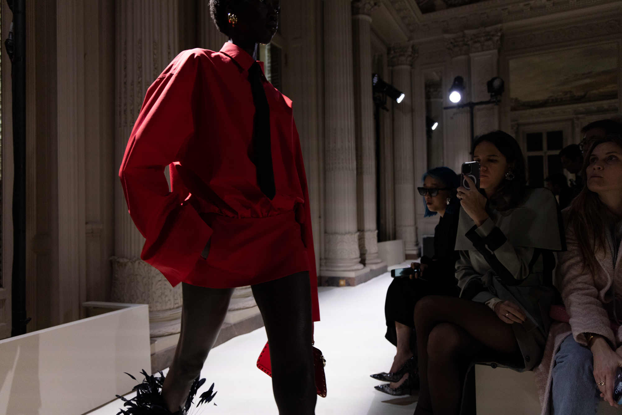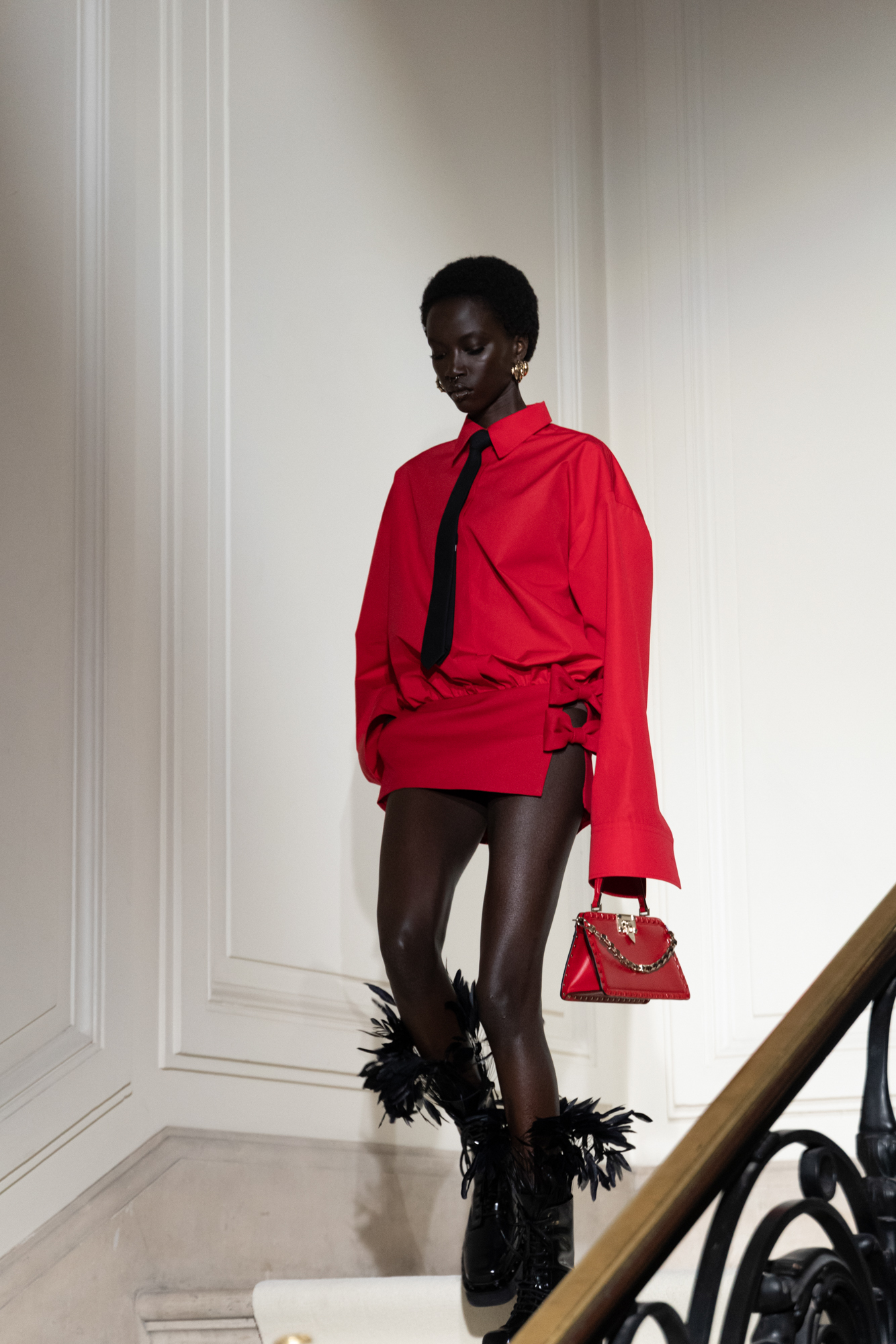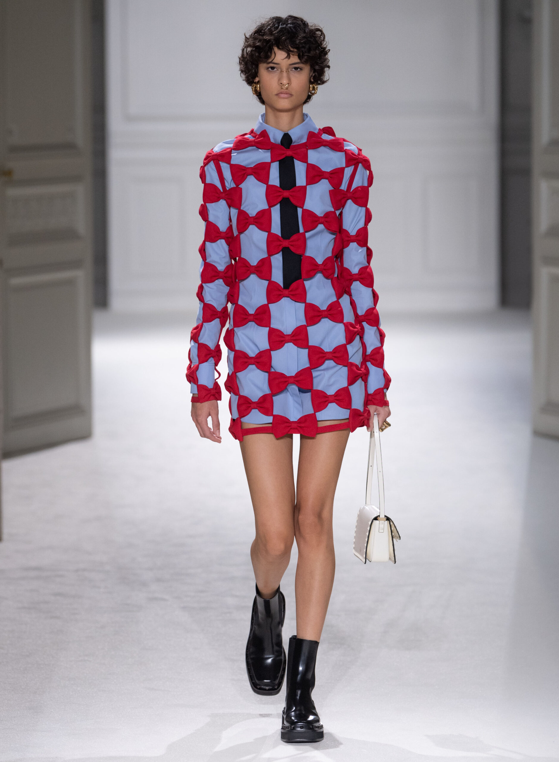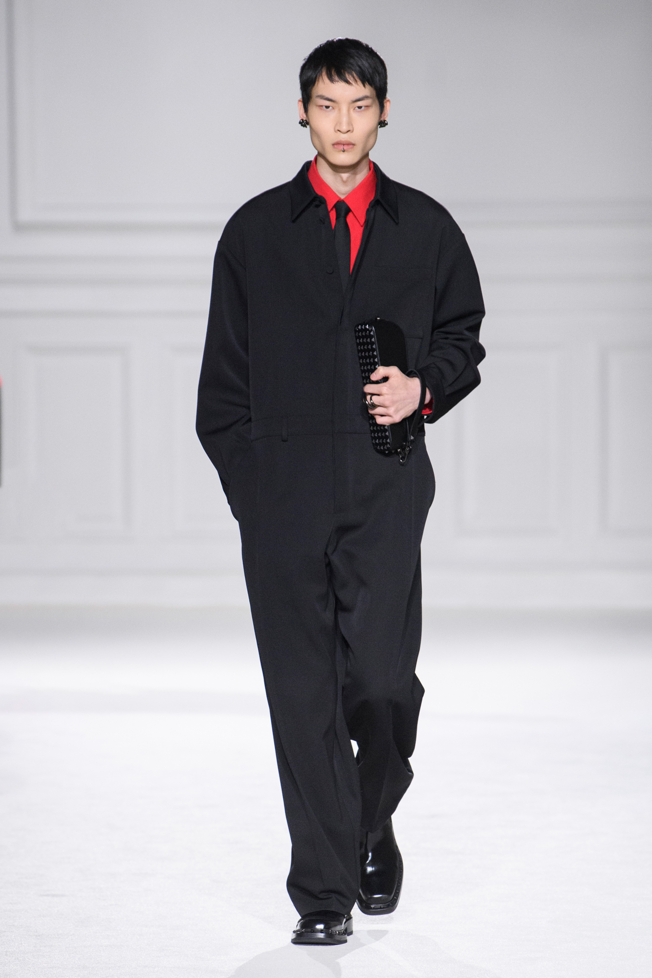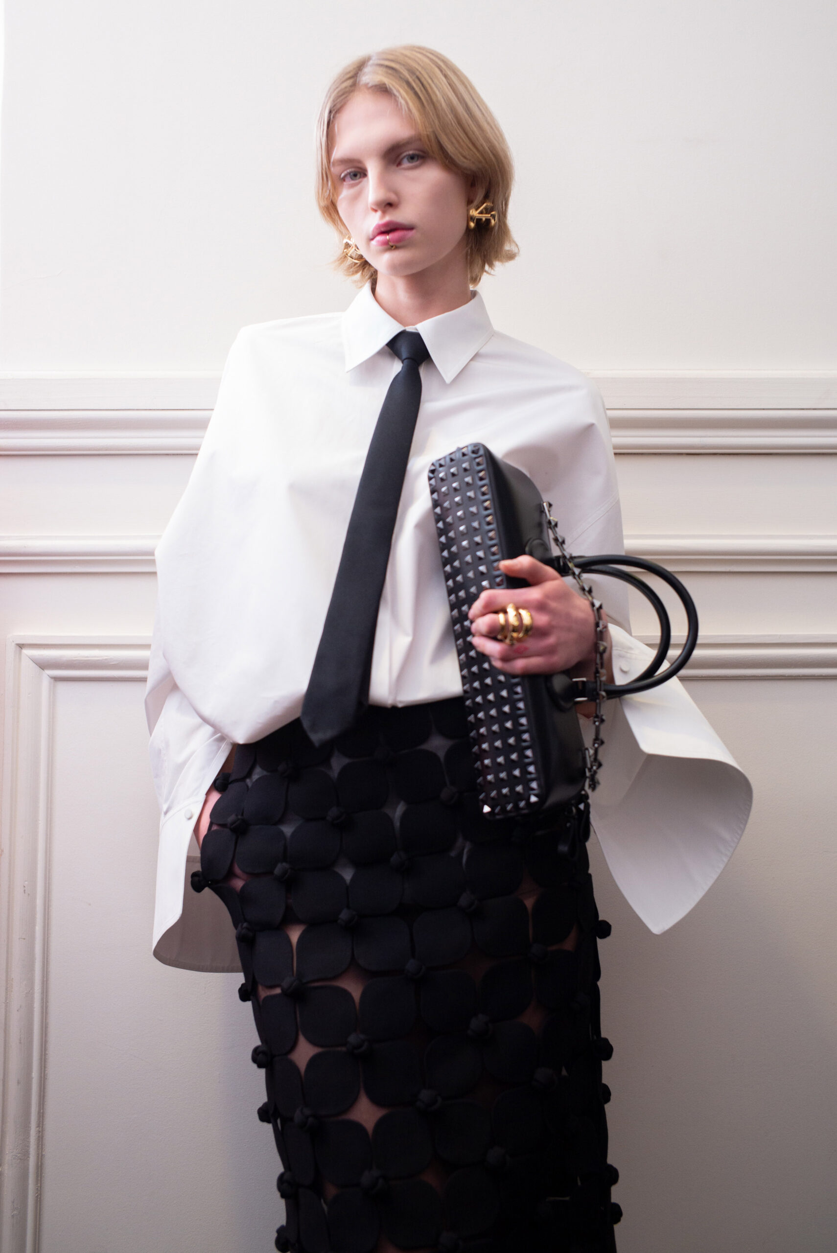 Les vêtements de tous les jours sont transformés en pièces de soirée, et les conventions vestimentaires sont bousculées pour créer des silhouettes dynamiques et modernes. La collection met en valeur la qualité de la confection, la palette épurée, ainsi que les valeurs fondamentales de la Maison Valentino, tout en ajoutant des éléments plus contemporains, tels que les Rockstud.
