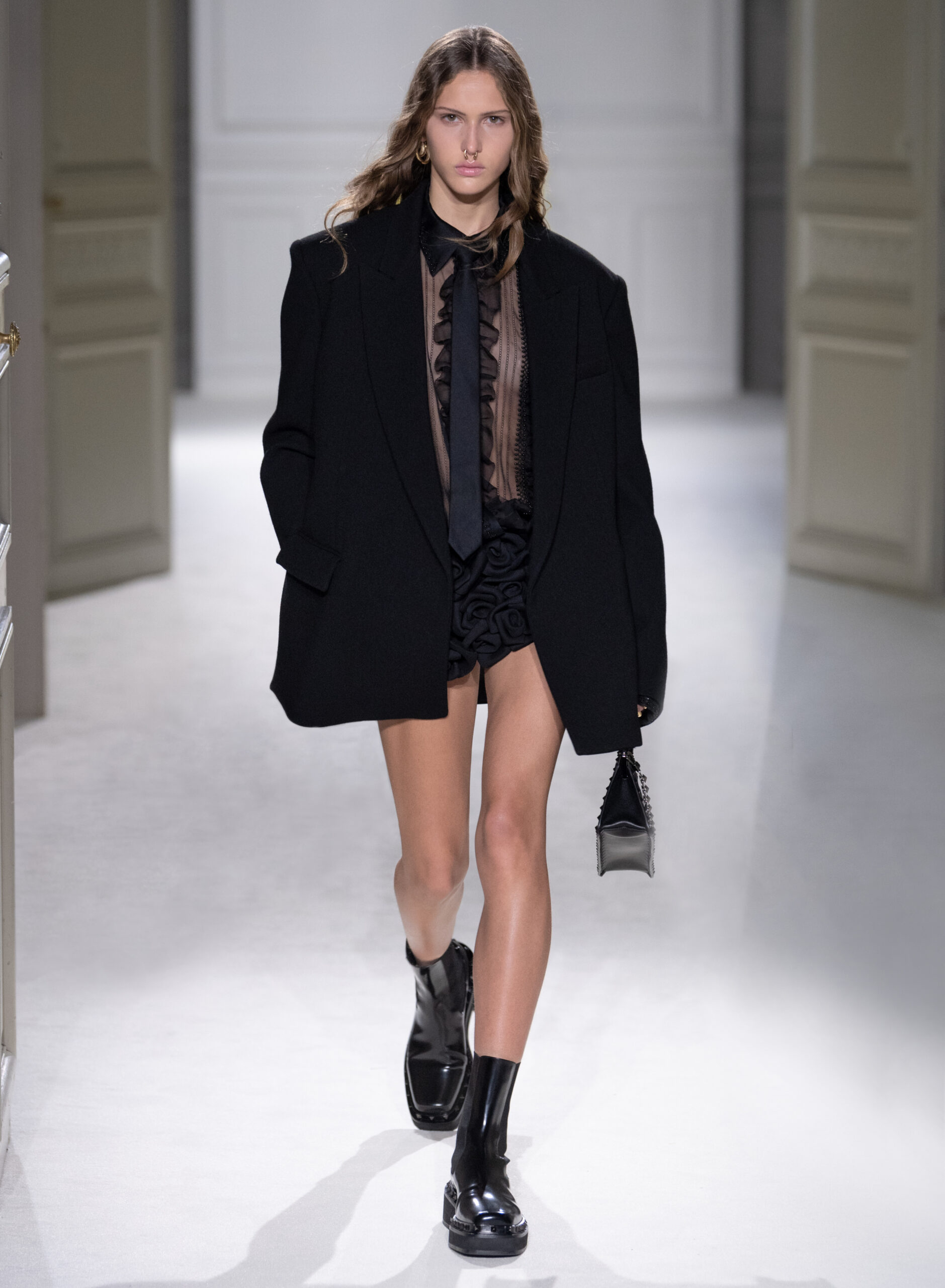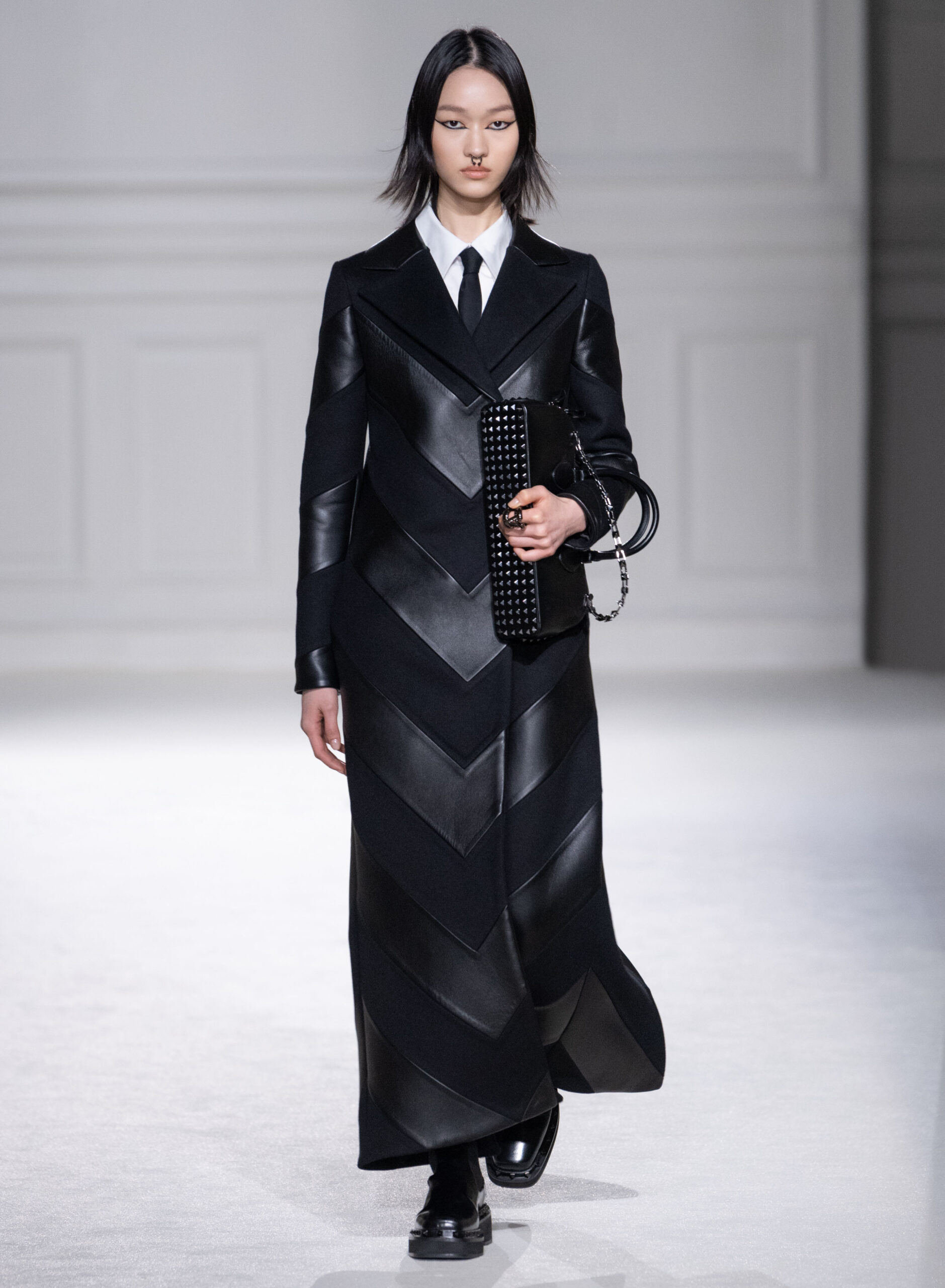 La collection automne/hiver 2023 de Pierpaolo Piccioli s’inspire du concept de « black tie » en l’utilisant comme point de départ pour une exploration plus large des codes vestimentaires et de leur signification culturelle. La collection déconstruit et réinvente l’idée de l’uniforme, offrant une nouvelle perspective sur la conformité et l’individualité.