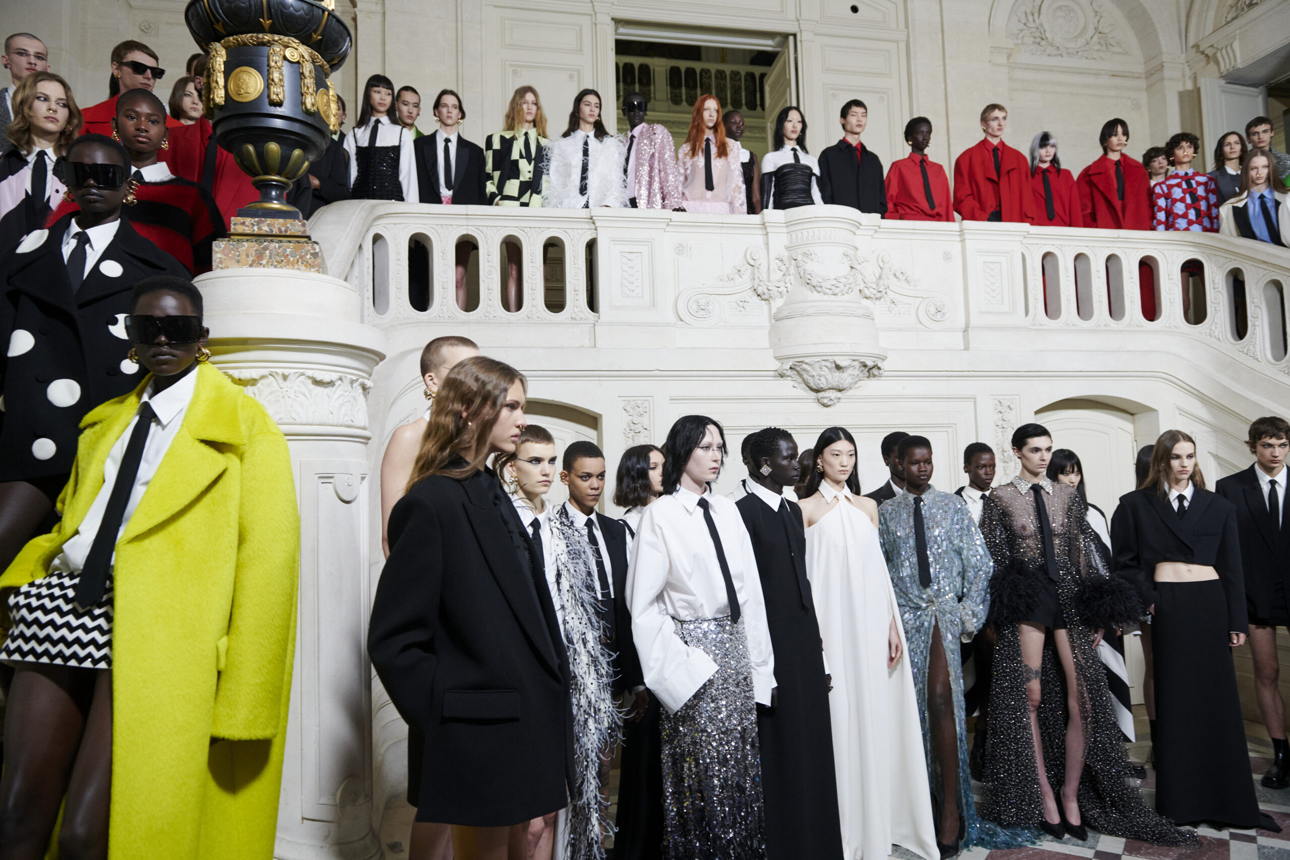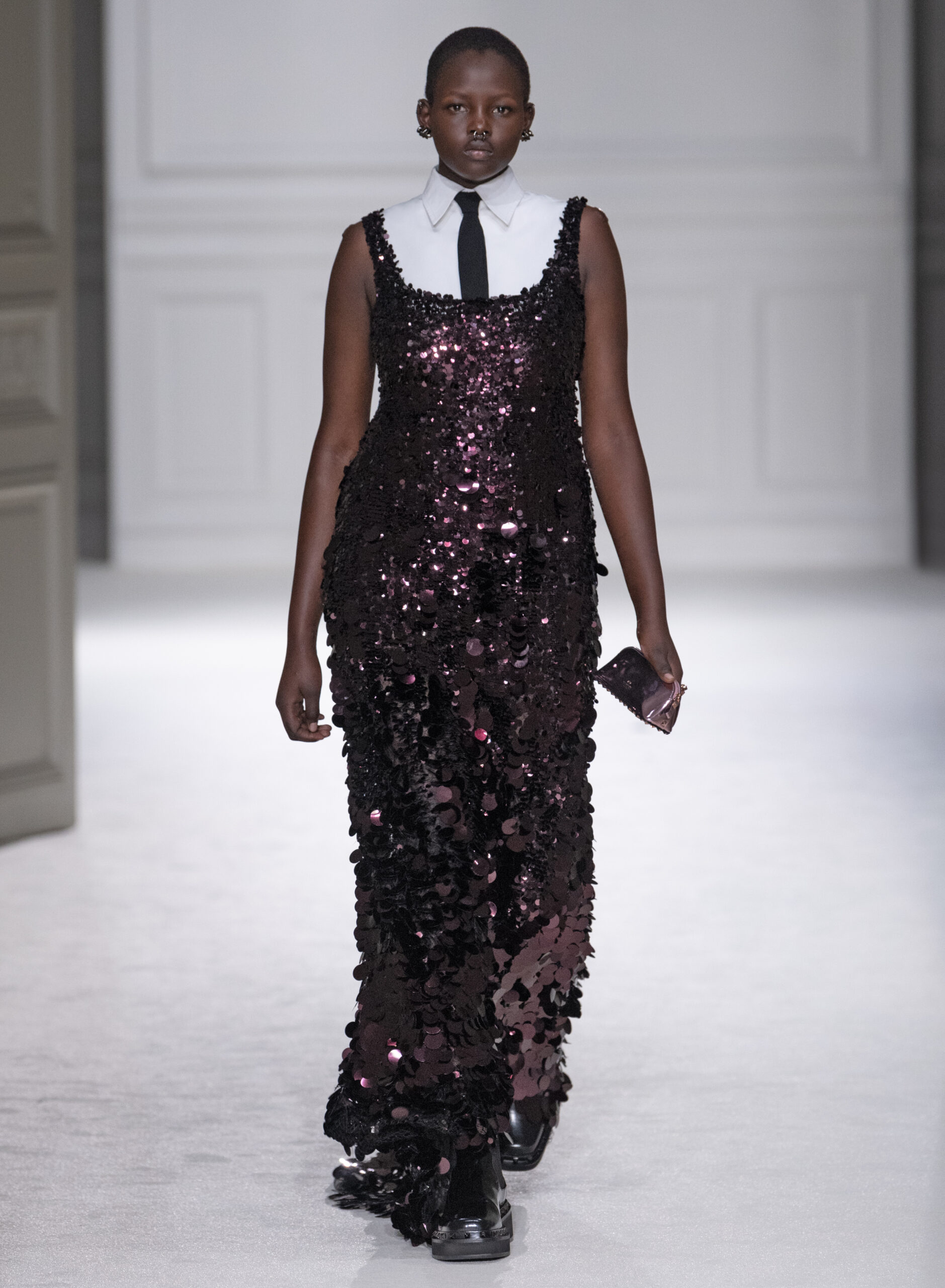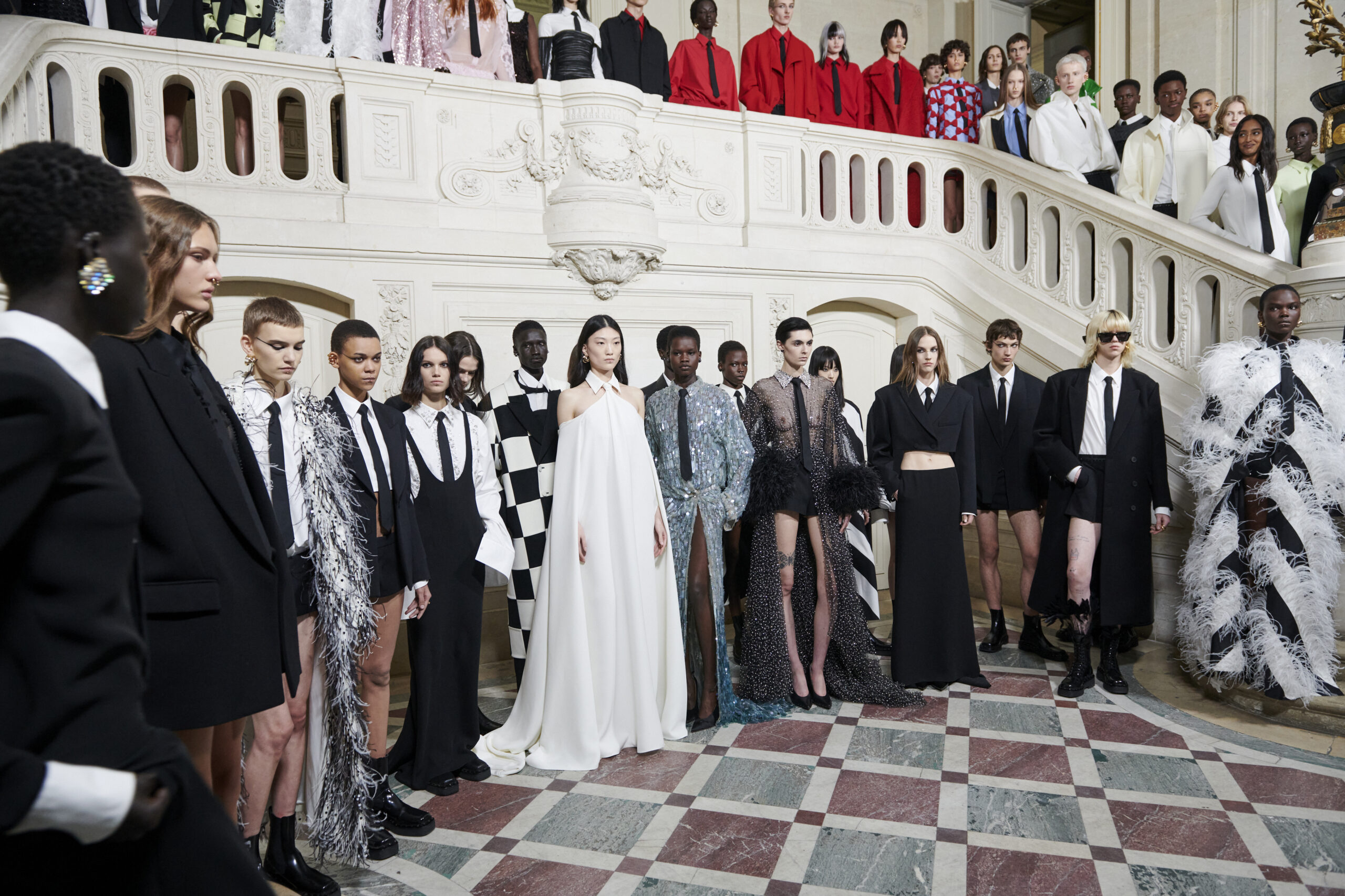L’idée selon laquelle l’uniformité conduit à une perte d’individualité est renversée, et la collection montre comment les codes vestimentaires peuvent être utilisés pour amplifier la personnalité et les nuances de chaque individu. En réinventant les conventions et en proposant une nouvelle interprétation de la tenue de soirée, Pierpaolo Piccioli offre une vision audacieuse de la mode, qui invite à la réflexion et à la redéfinition des normes.
