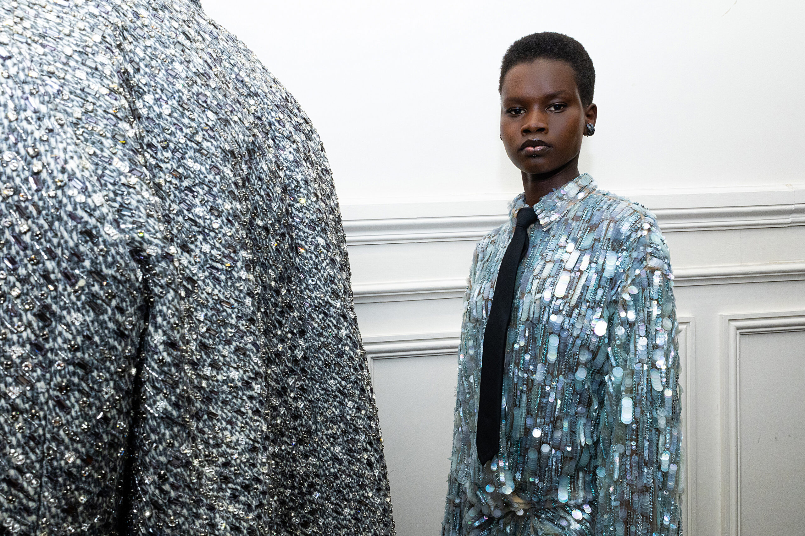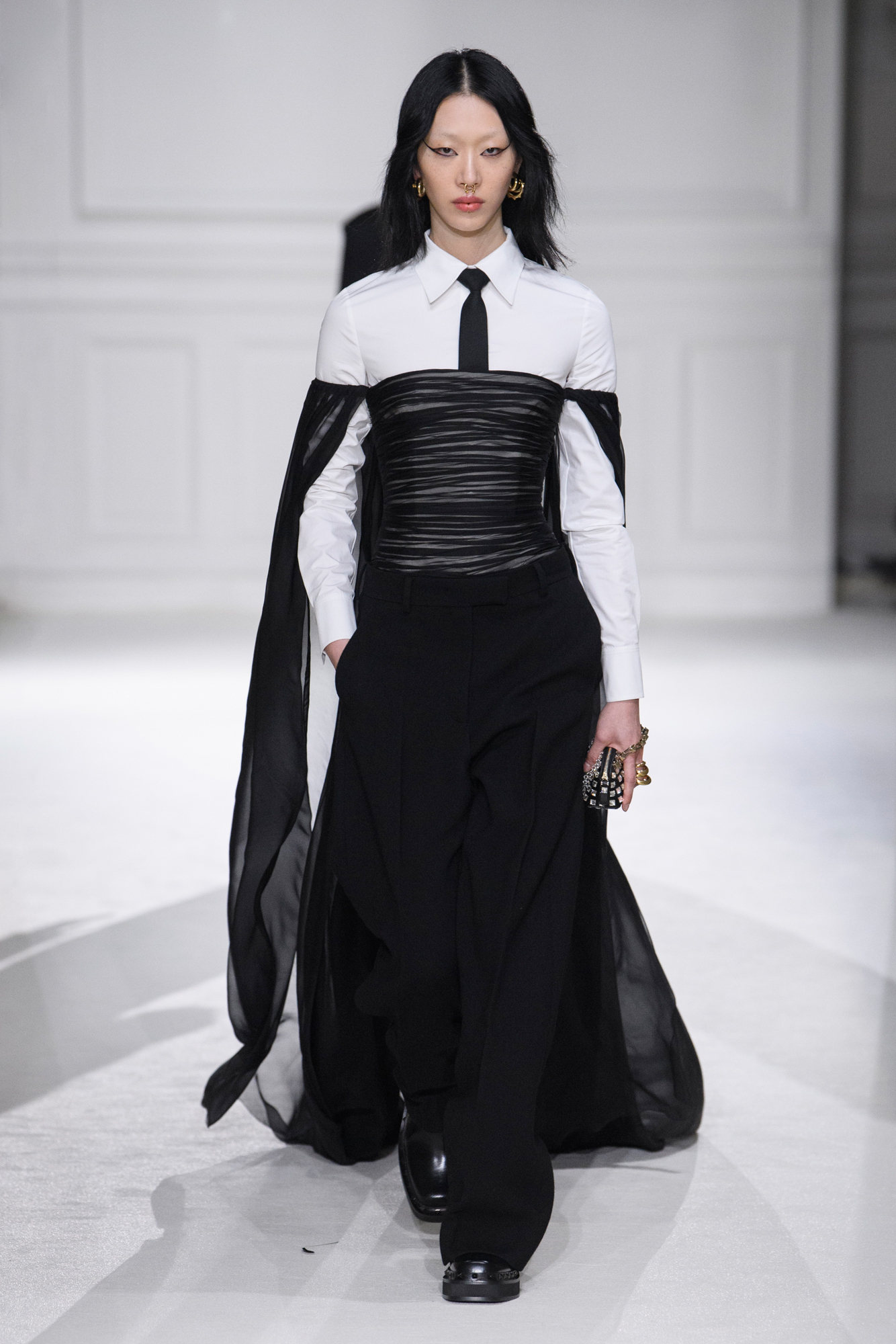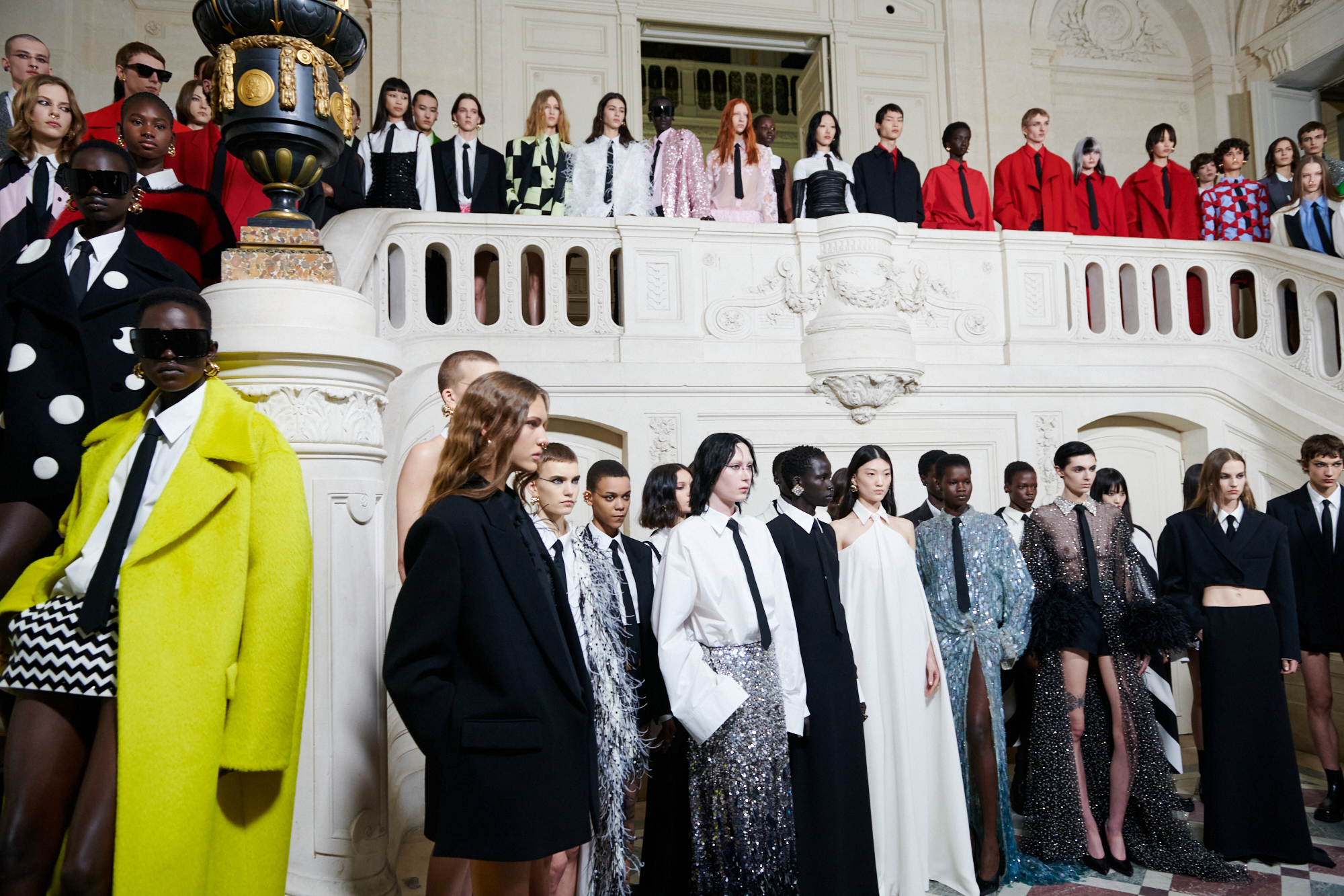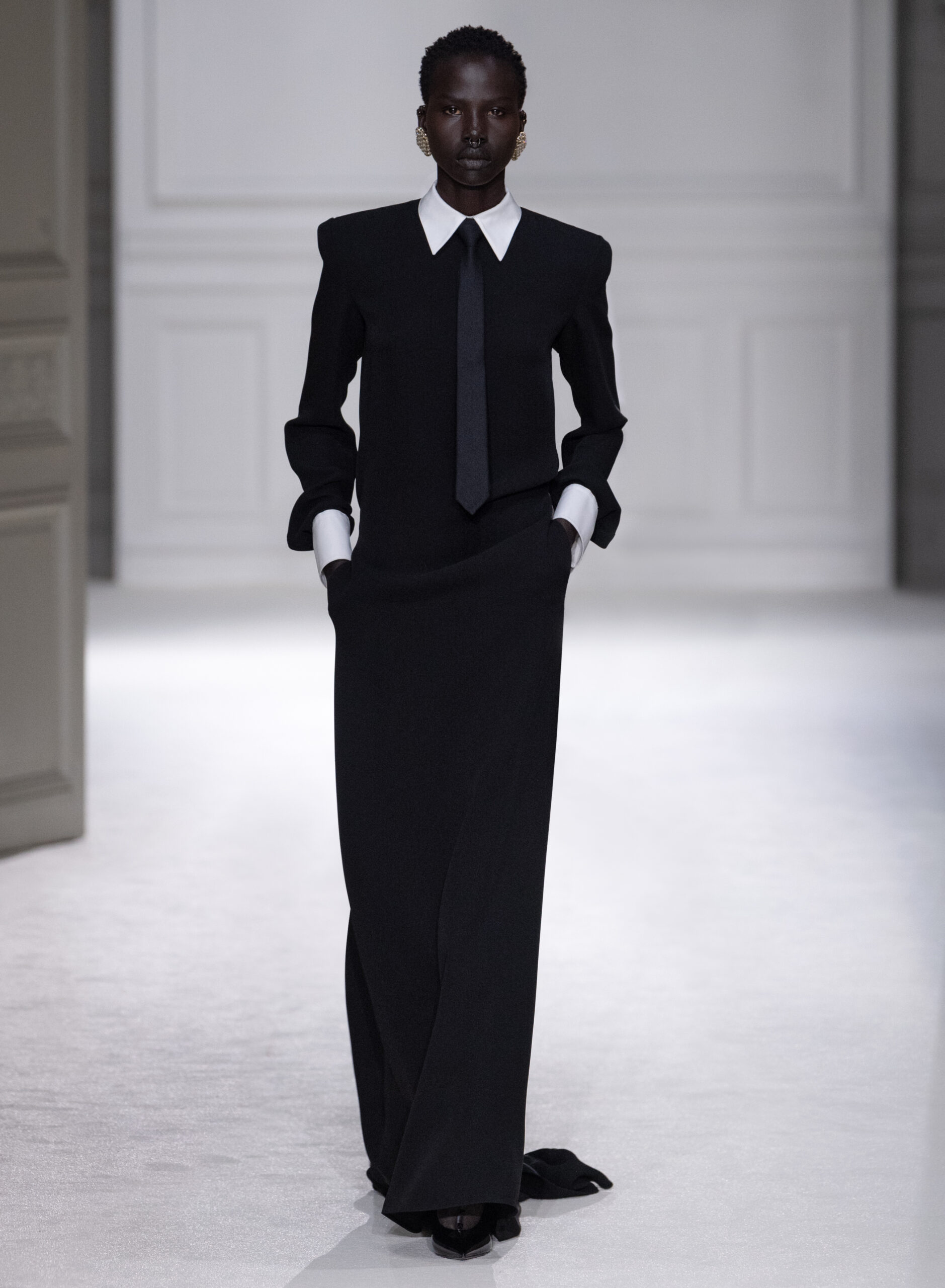L’idée selon laquelle l’uniformité conduit à une perte d’individualité est renversée, et la collection montre comment les codes vestimentaires peuvent être utilisés pour amplifier la personnalité et les nuances de chaque individu. En réinventant les conventions et en proposant une nouvelle interprétation de la tenue de soirée, Pierpaolo Piccioli offre une vision audacieuse de la mode, qui invite à la réflexion et à la redéfinition des normes.