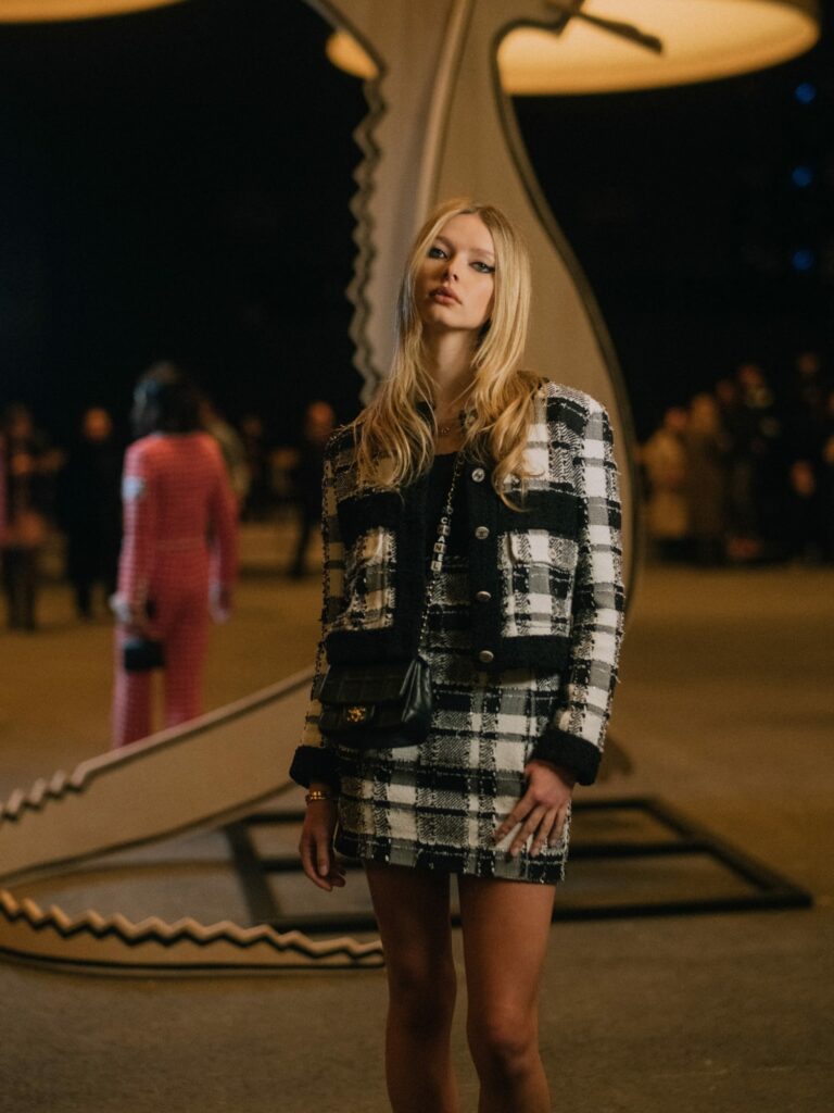 Le 24 janvier 2023 à Paris, plusieurs célébrités ont été aperçues portant des bijoux de la marque CHANEL Joaillerie lors du défilé haute couture Printemps-été 2023. Parmi elles, Apple Martin, étudiante américaine, portait deux bracelets et un collier « COCO CRUSH » en or 18K beige avec des diamants, ainsi qu’une montre « PREMIERE EDITION ORIGINALE » de CHANEL Horlogerie. Elsa Zylberstein, comédienne française, portait deux bagues « COCO CRUSH » en or blanc et jaune 18K avec des diamants et une montre « PREMIERE EDITION ORIGINALE » de CHANEL Horlogerie. Fumi Nikaido, comédienne japonaise, portait une bague « COCO CRUSH » en or jaune 18K. G-Dragon, ambassadeur de CHANEL, a été vu portant une broche « TIMELESS » en or blanc 18K avec des diamants de CHANEL Haute Joaillerie. Lucy Boynton, ambassadrice de CHANEL, portait des boucles d’oreilles, des bagues et des bracelets « COCO CRUSH » en or jaune 18K, ainsi qu’une montre « PREMIERE EDITION ORIGINALE » de CHANEL Horlogerie. Marion Cotillard, également ambassadrice de CHANEL, portait des boucles d’oreilles « COCO CRUSH » en or jaune 18K. Olivia Dean, une chanteuse anglaise, portait un bracelet « COCO CRUSH » en or beige 18K de CHANEL Joaillerie, tandis que Sonoya Mizuno, une comédienne anglo-japonaise, portait une bague « COCO CRUSH » en or jaune 18K de la même marque. Enfin, Tilda Swinton, ambassadrice de CHANEL, portait un collier « étoile filante » en or blanc et or jaune 18K et diamants, une bague transformable « Soleil de CHANEL » en or blanc et or jaune 18K et diamants, et des boucles d’oreilles « COCO CRUSH » en or blanc 18K et diamants de CHANEL Joaillerie.