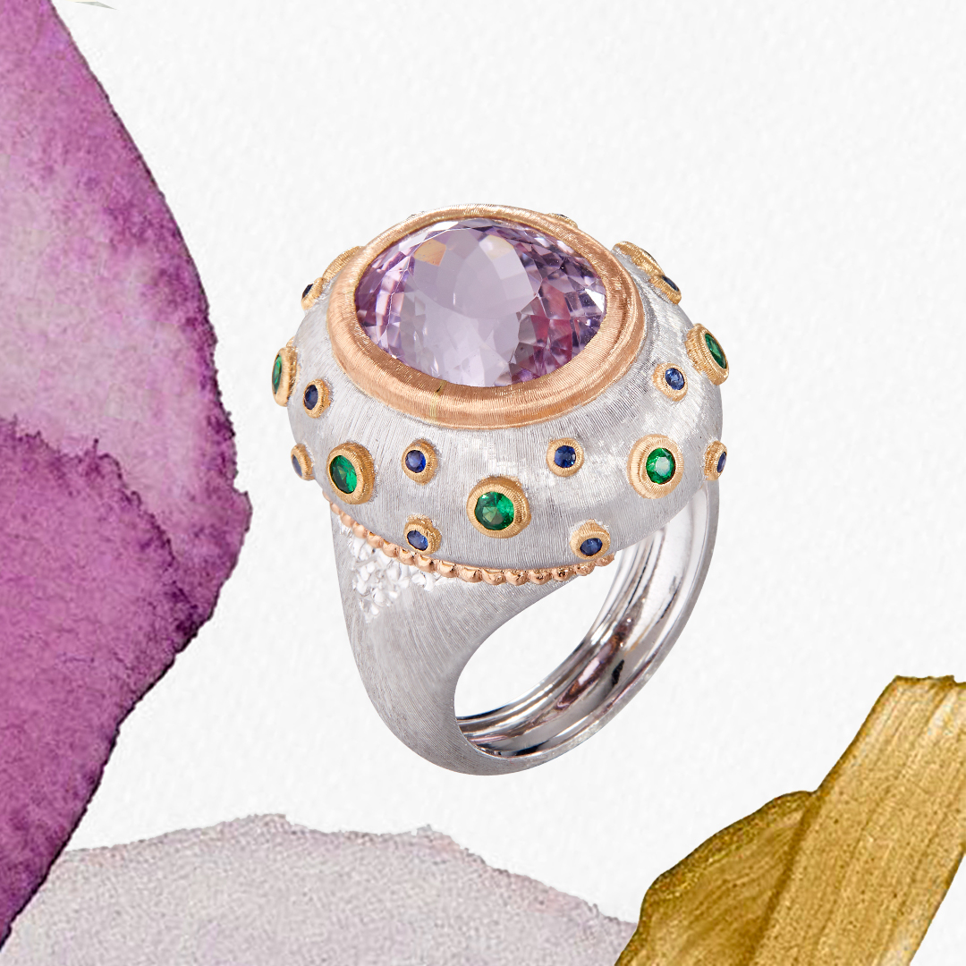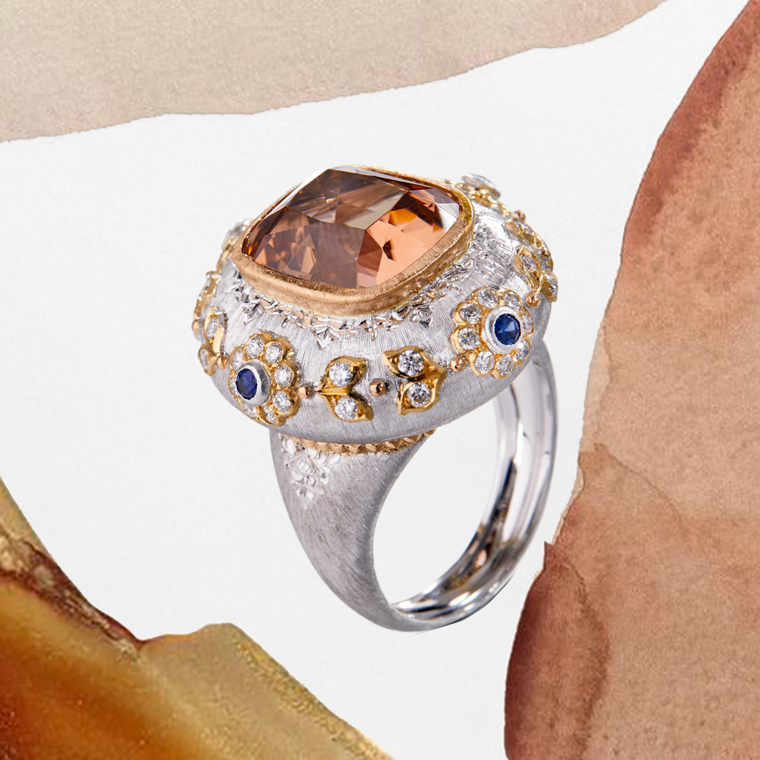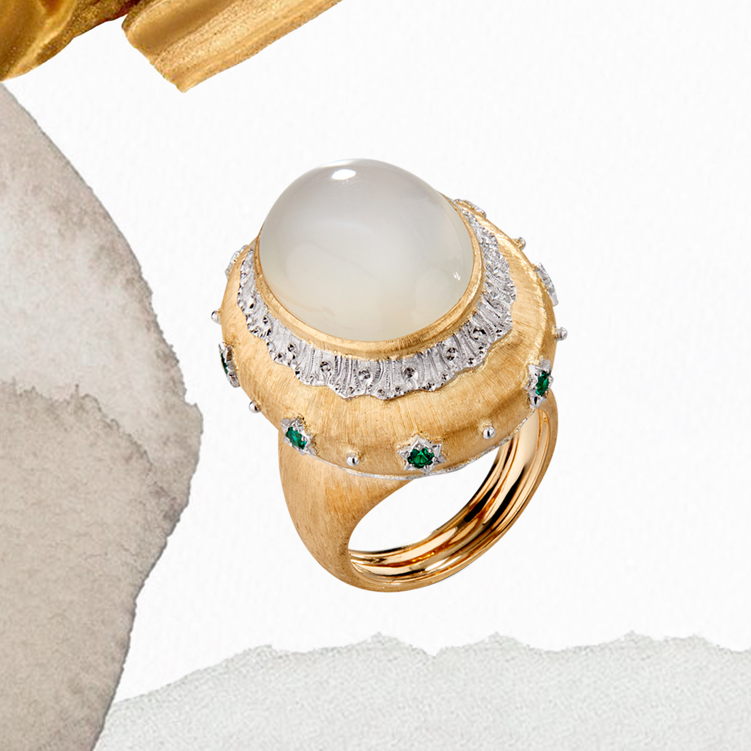 La collection Macri Color est une véritable démonstration de l’expertise de la Maison Buccellati en matière de bijouterie, combinant parfaitement le travail de l’or et de la pierre. La ciselure de l’or crée une texture soyeuse, rappelant celle de la soie, qui capture et reflète la lumière d’une manière unique. Les pierres de couleur apportent une touche de mystère et de couleur vive à la collection.