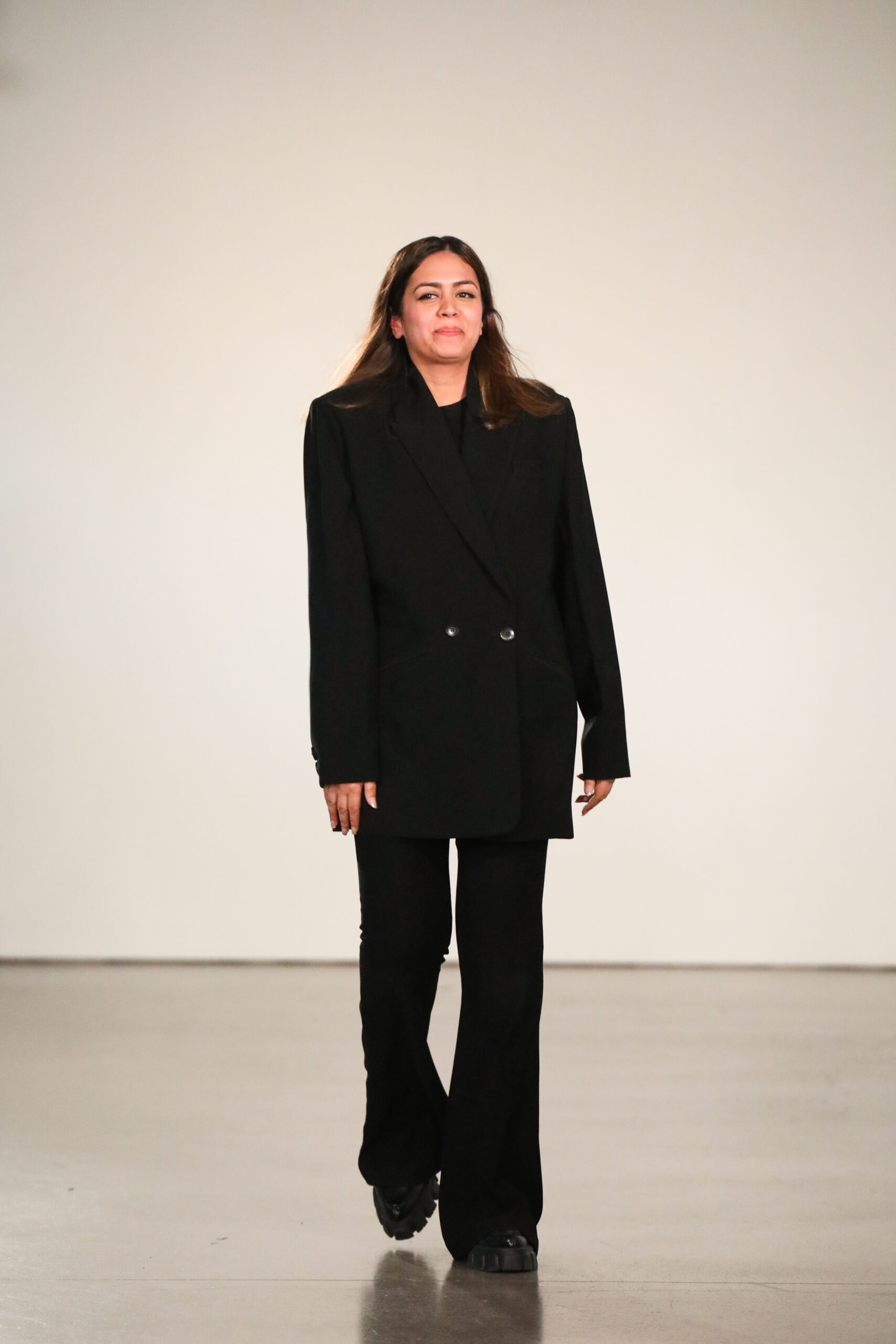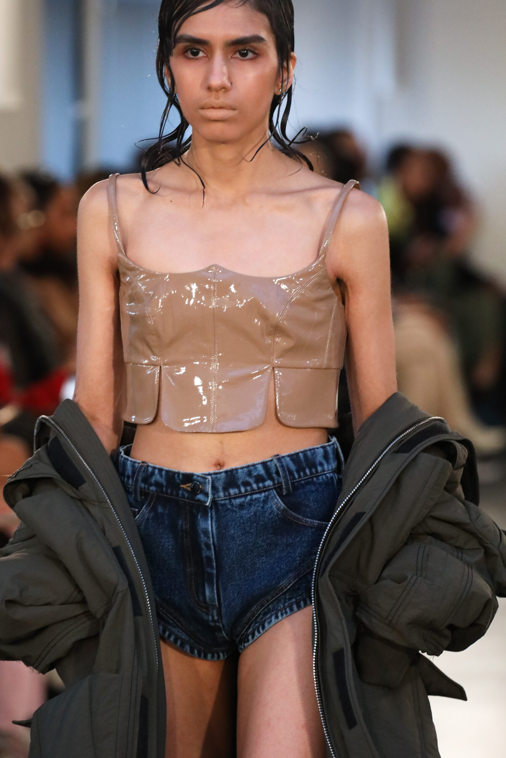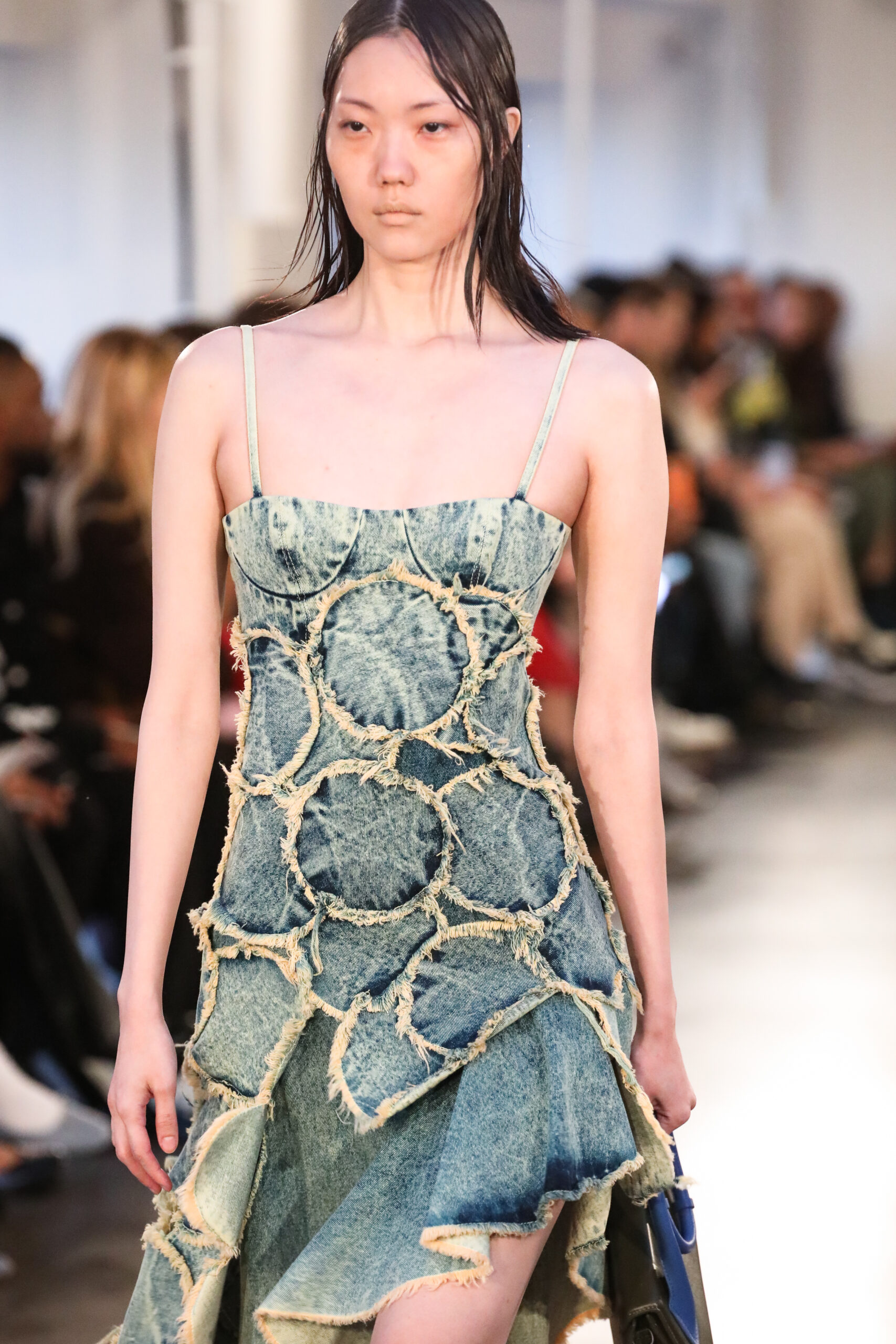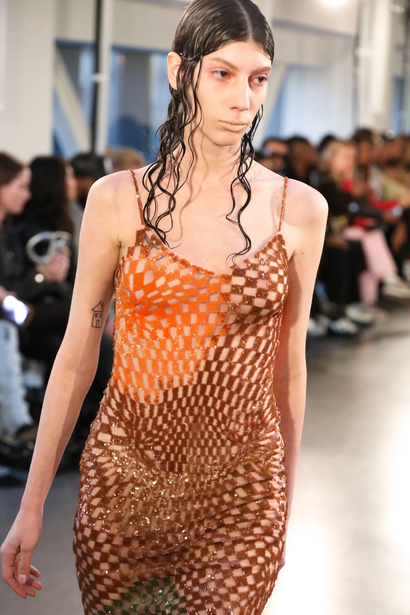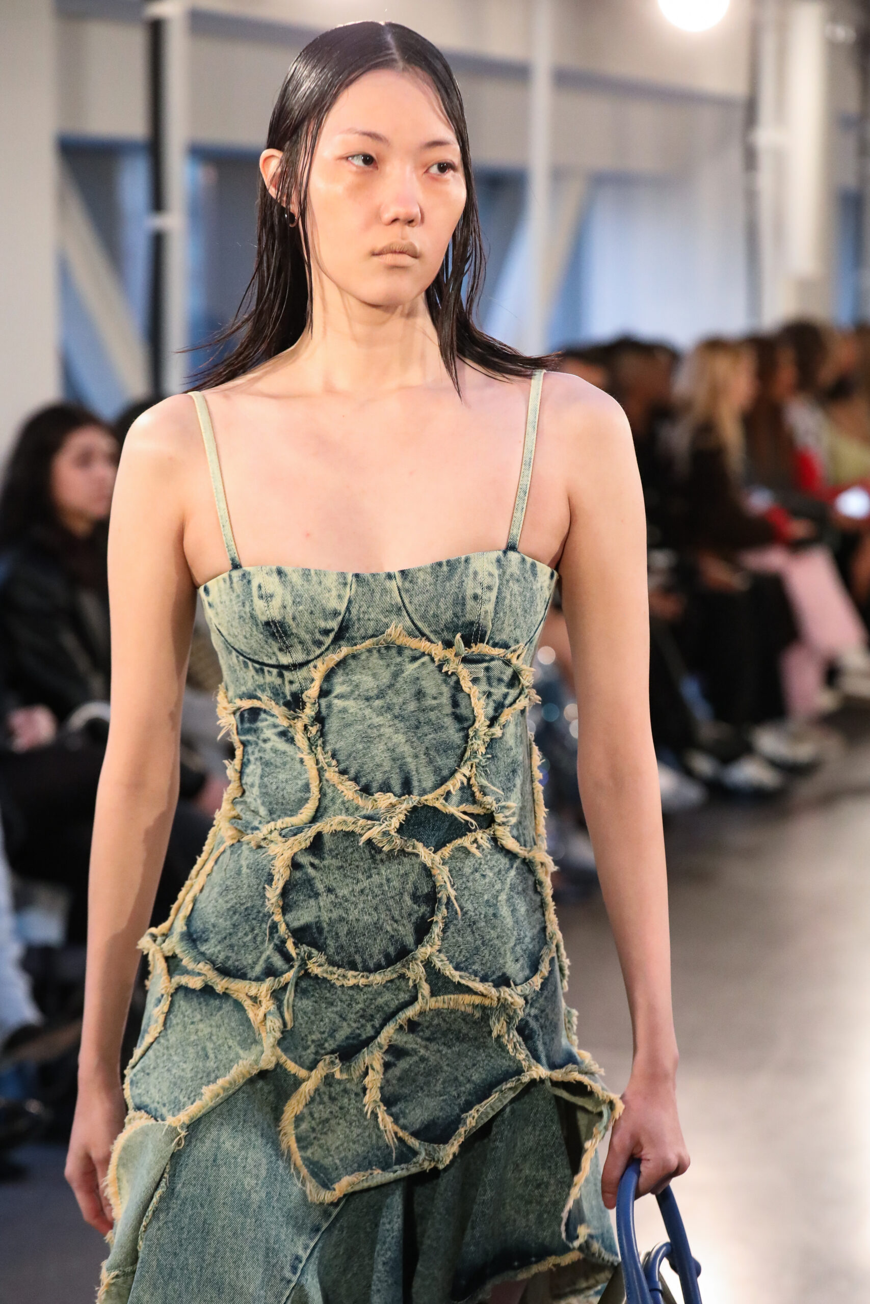 L’esprit est une entité prolifique, une prairie regorgeant de bizarreries. Certaines sont des biomorphes, qui confèrent à des phénomènes visuels banals des formes idiosyncrasiques, tandis que d’autres défient toute logique et toute limite pour libérer une cacophonie désinhibée d’images violemment euphoriques et appellent un besoin primordial de voir audelà du domaine des possibilités. KGL explore la complexité des pensées et des sentiments dans sa collection FW ’23 Agrestal Mind, tout en gardant intacte l’essence du paradoxe qui traverse l’éthique du design de la marque. Les lignes et les limites oscillent entre courbes douces et bords déchiquetés, tandis que les surfaces sont surchargées d’une riche pléthore de textures, à la fois tactiles et visuelles. Des tons neutres et tranquilles servent de base à la prolifération de bleus et de teintes viridiennes, tandis que des accents de roses et de jaunes éclatants les revigorent, ajoutant une nouvelle profondeur et de nouvelles perspectives. Une créature aux multiples facettes sert de mascotte pour la saison – concoctée comme une représentation de la curiosité innée et de la malléabilité de la psyché. Des versions tordues et alambiquées des grilles uniformes et des rayures apaisantes ornent les imprimés et les broderies, imitant la nature dans sa forme la plus sauvage et incontrôlée. Les proportions sont jouées de manière arbitraire et les éléments se bloquent les uns les autres pour être abrupts et fragmentés. Au milieu des tissus, on peut trouver des textures brillantes, des points décoratifs et des bordures de cuir renforcées. Grâce à un mélange d’éléments psychédéliques simples et de fleurs extravagantes de motifs brodés, de pièces décontractées et classiquement taillées, la dichotomie d’une imagination active est mise en avant. Une fête pour une personne qui se transforme en ruine, une créature émanant d’une boule à facettes qui scintille dans l’esprit, des fleurs qui agissent comme des portails de transformation : tout est aussi réel que possible dans le royaume infini de l’esprit.