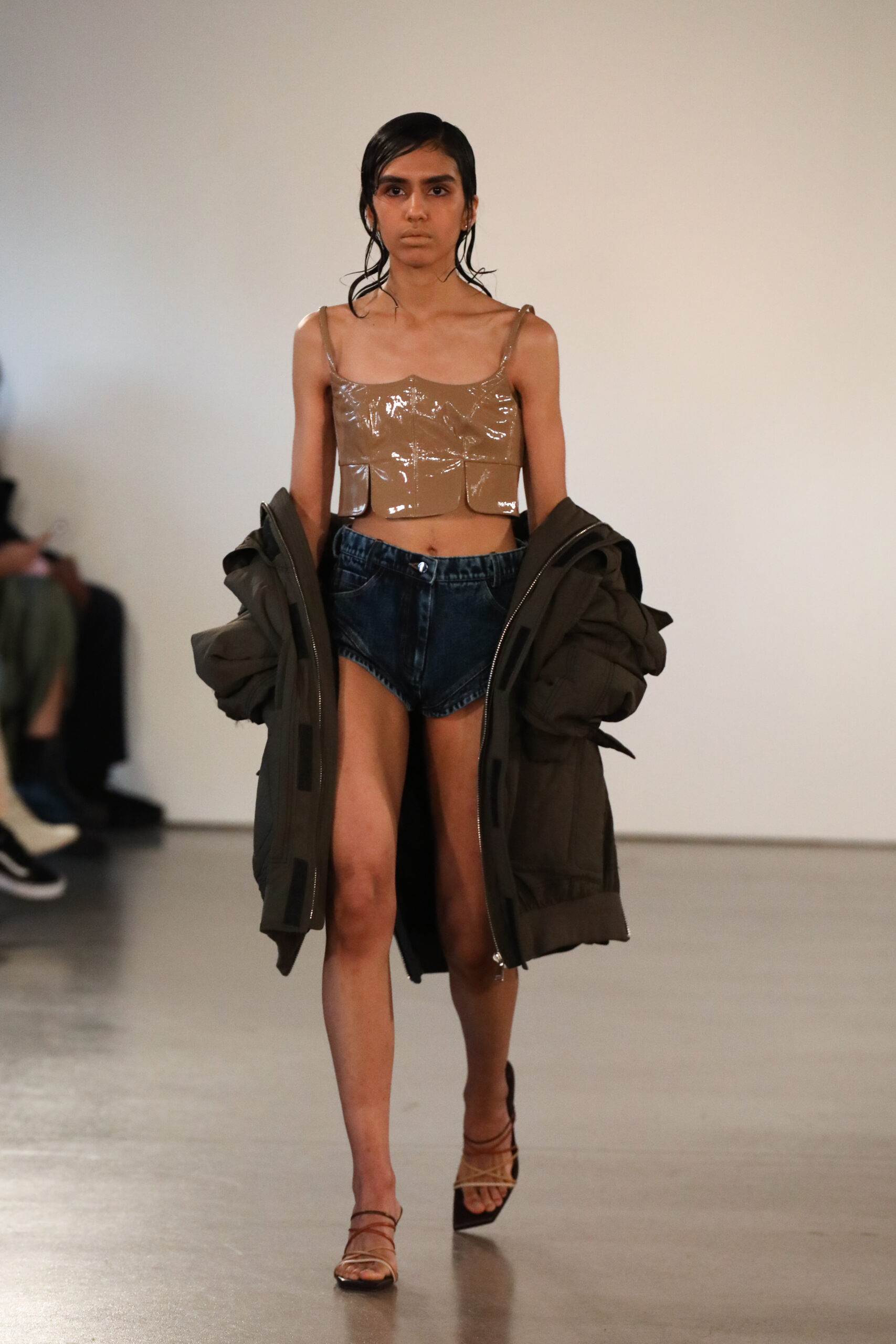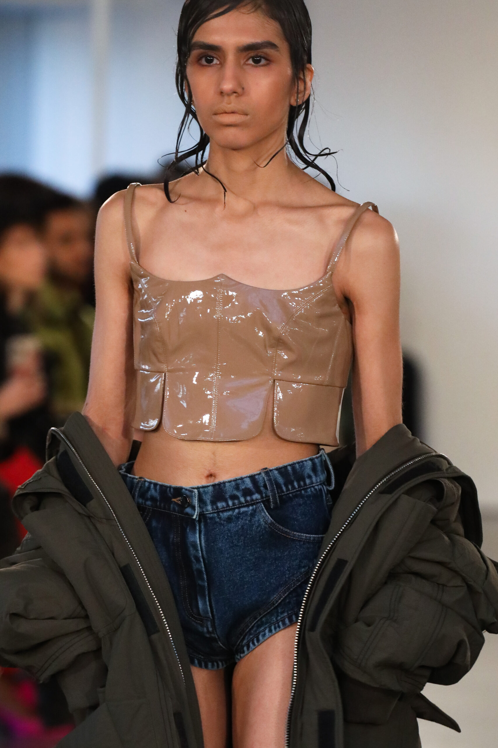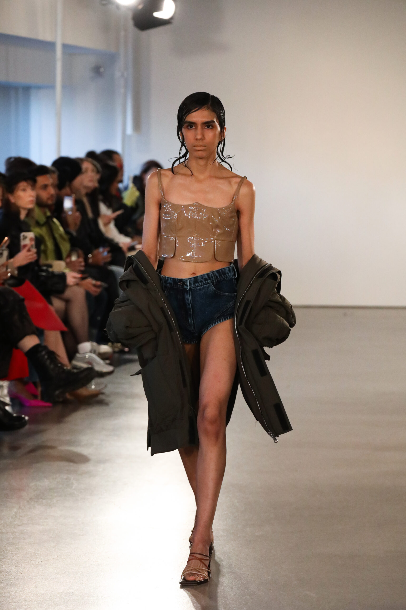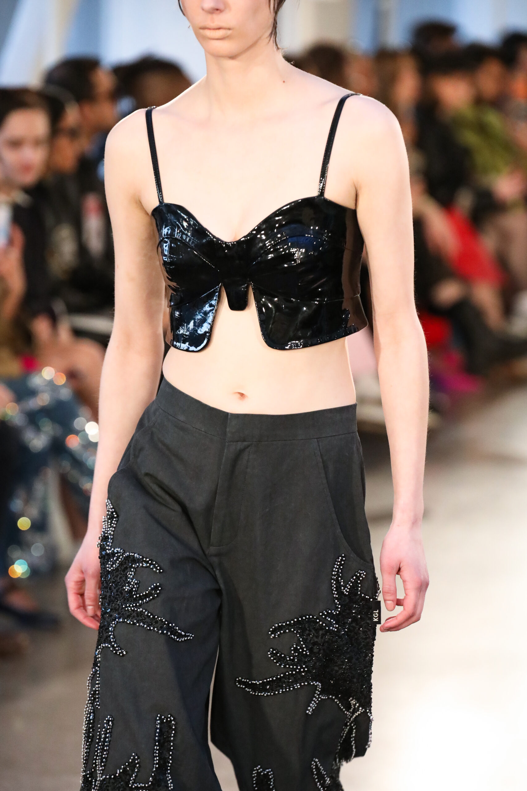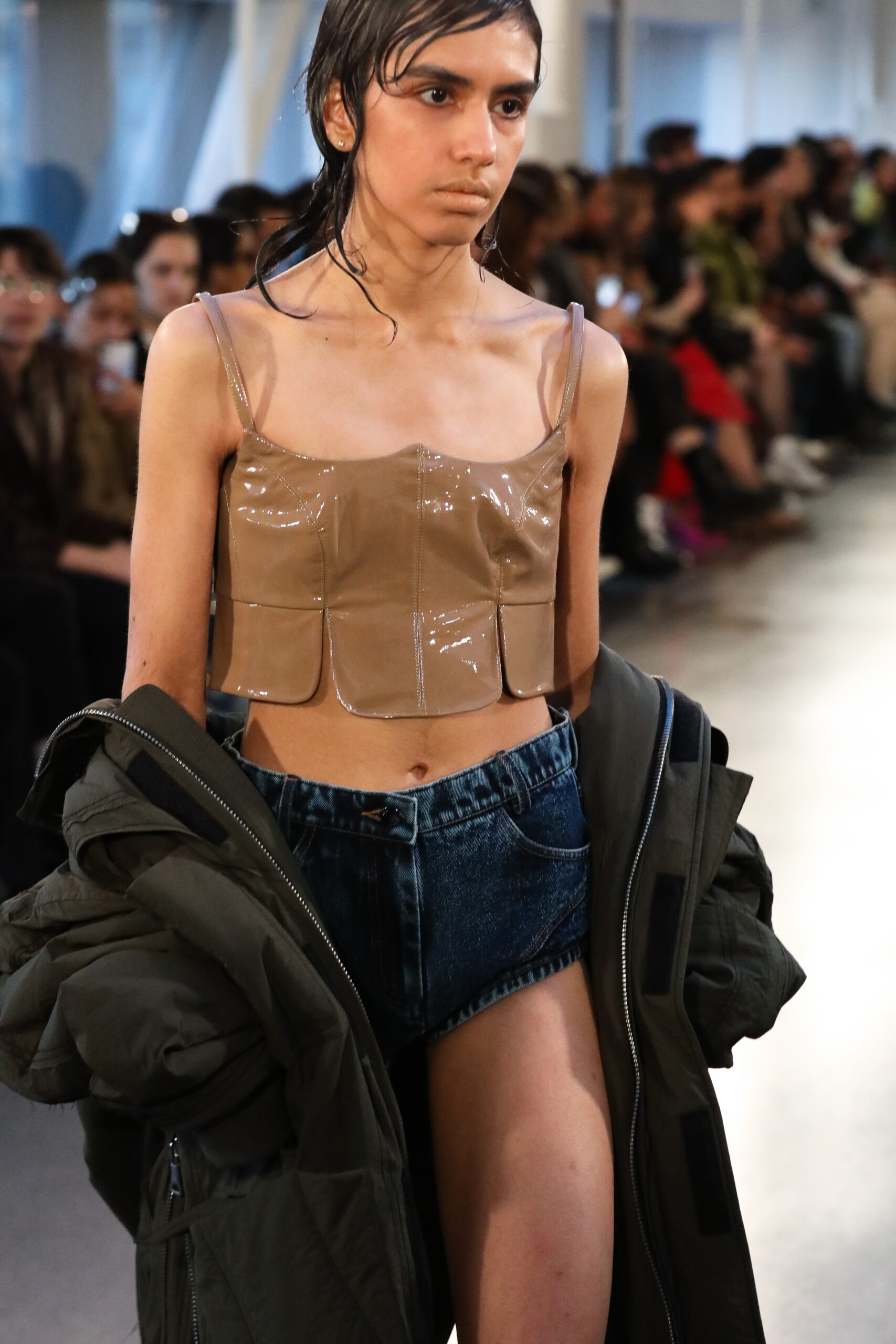 L’esprit est une entité prolifique, une prairie regorgeant de bizarreries. Certaines sont des biomorphes, qui confèrent à des phénomènes visuels banals des formes idiosyncrasiques, tandis que d’autres défient toute logique et toute limite pour libérer une cacophonie désinhibée d’images violemment euphoriques et appellent un besoin primordial de voir audelà du domaine des possibilités. KGL explore la complexité des pensées et des sentiments dans sa collection FW ’23 Agrestal Mind, tout en gardant intacte l’essence du paradoxe qui traverse l’éthique du design de la marque. Les lignes et les limites oscillent entre courbes douces et bords déchiquetés, tandis que les surfaces sont surchargées d’une riche pléthore de textures, à la fois tactiles et visuelles. Des tons neutres et tranquilles servent de base à la prolifération de bleus et de teintes viridiennes, tandis que des accents de roses et de jaunes éclatants les revigorent, ajoutant une nouvelle profondeur et de nouvelles perspectives. Une créature aux multiples facettes sert de mascotte pour la saison – concoctée comme une représentation de la curiosité innée et de la malléabilité de la psyché. Des versions tordues et alambiquées des grilles uniformes et des rayures apaisantes ornent les imprimés et les broderies, imitant la nature dans sa forme la plus sauvage et incontrôlée. Les proportions sont jouées de manière arbitraire et les éléments se bloquent les uns les autres pour être abrupts et fragmentés. Au milieu des tissus, on peut trouver des textures brillantes, des points décoratifs et des bordures de cuir renforcées. Grâce à un mélange d’éléments psychédéliques simples et de fleurs extravagantes de motifs brodés, de pièces décontractées et classiquement taillées, la dichotomie d’une imagination active est mise en avant. Une fête pour une personne qui se transforme en ruine, une créature émanant d’une boule à facettes qui scintille dans l’esprit, des fleurs qui agissent comme des portails de transformation : tout est aussi réel que possible dans le royaume infini de l’esprit.