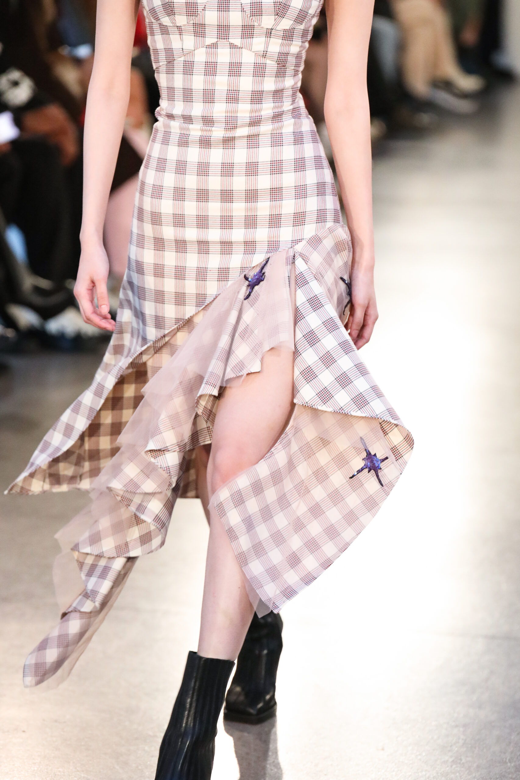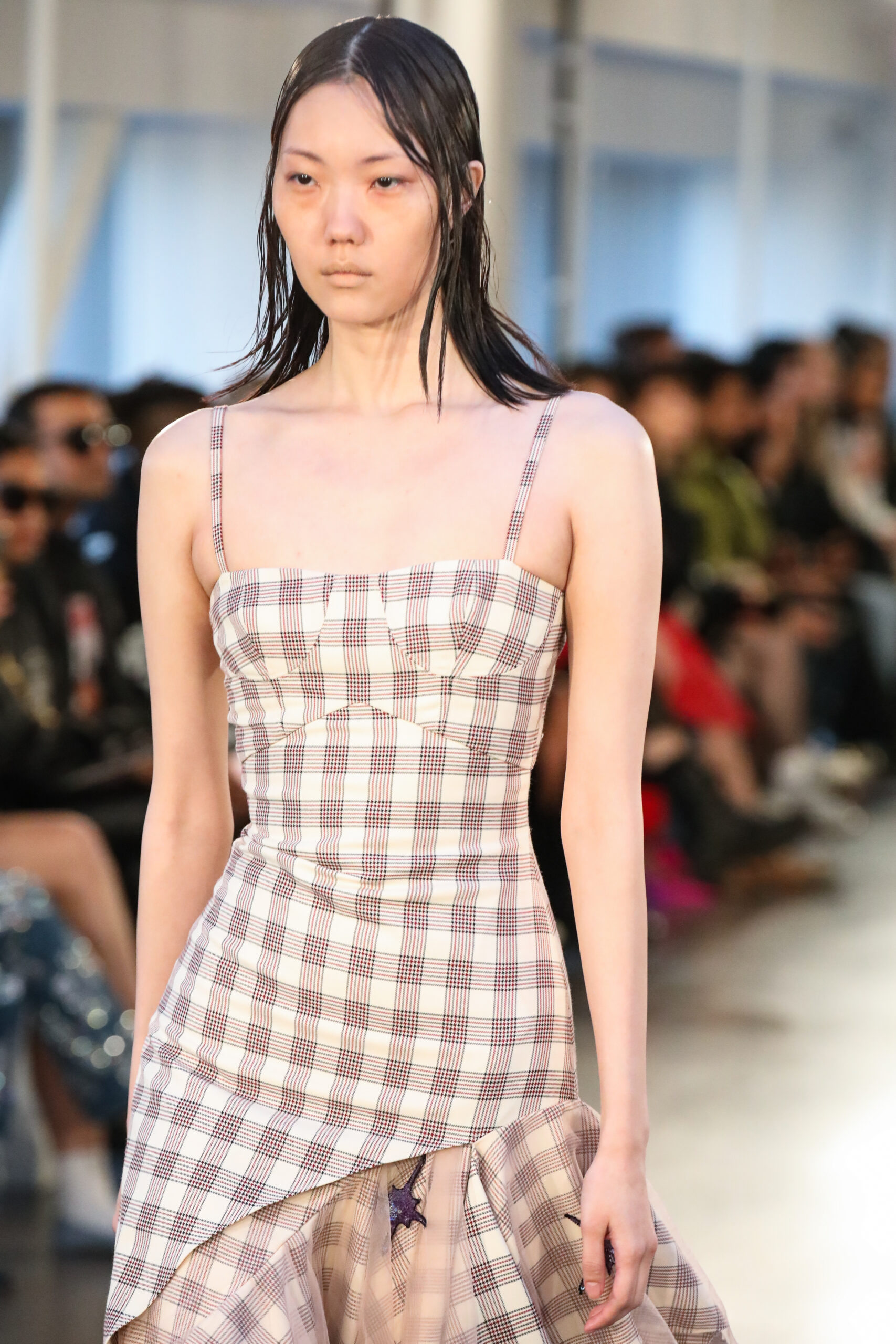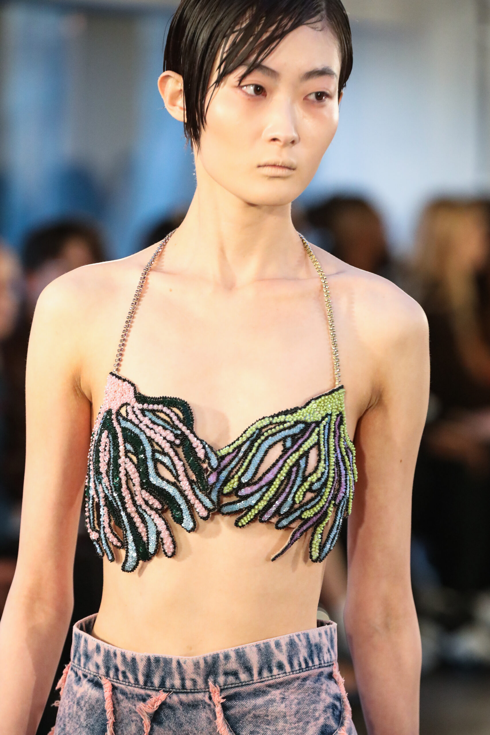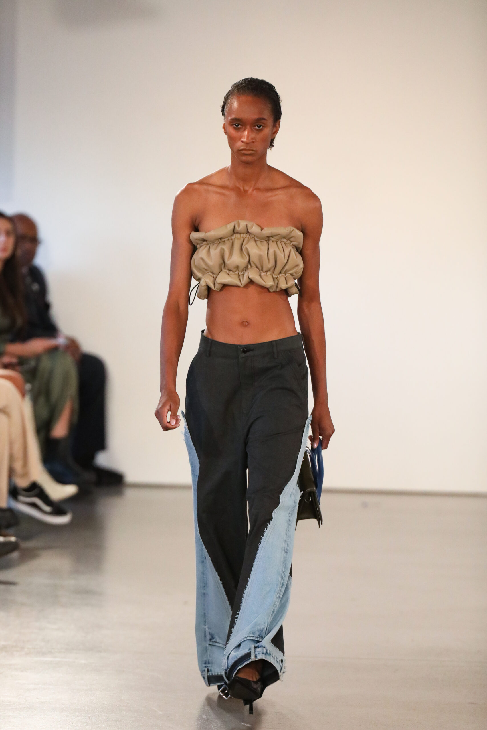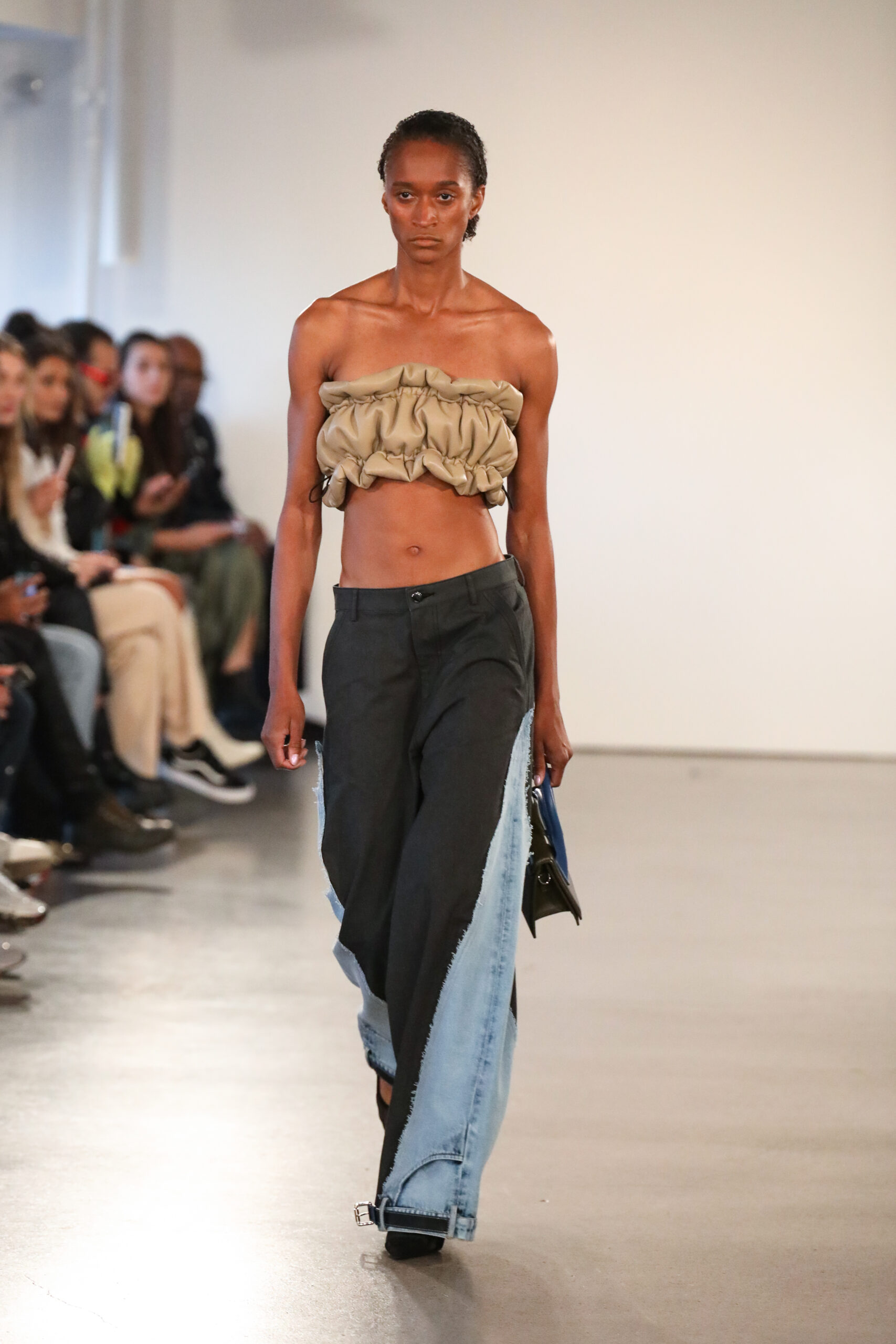 L’esprit est une entité prolifique, une prairie regorgeant de bizarreries. Certaines sont des biomorphes, qui confèrent à des phénomènes visuels banals des formes idiosyncrasiques, tandis que d’autres défient toute logique et toute limite pour libérer une cacophonie désinhibée d’images violemment euphoriques et appellent un besoin primordial de voir audelà du domaine des possibilités. KGL explore la complexité des pensées et des sentiments dans sa collection FW ’23 Agrestal Mind, tout en gardant intacte l’essence du paradoxe qui traverse l’éthique du design de la marque. Les lignes et les limites oscillent entre courbes douces et bords déchiquetés, tandis que les surfaces sont surchargées d’une riche pléthore de textures, à la fois tactiles et visuelles. Des tons neutres et tranquilles servent de base à la prolifération de bleus et de teintes viridiennes, tandis que des accents de roses et de jaunes éclatants les revigorent, ajoutant une nouvelle profondeur et de nouvelles perspectives. Une créature aux multiples facettes sert de mascotte pour la saison – concoctée comme une représentation de la curiosité innée et de la malléabilité de la psyché. Des versions tordues et alambiquées des grilles uniformes et des rayures apaisantes ornent les imprimés et les broderies, imitant la nature dans sa forme la plus sauvage et incontrôlée. Les proportions sont jouées de manière arbitraire et les éléments se bloquent les uns les autres pour être abrupts et fragmentés. Au milieu des tissus, on peut trouver des textures brillantes, des points décoratifs et des bordures de cuir renforcées. Grâce à un mélange d’éléments psychédéliques simples et de fleurs extravagantes de motifs brodés, de pièces décontractées et classiquement taillées, la dichotomie d’une imagination active est mise en avant. Une fête pour une personne qui se transforme en ruine, une créature émanant d’une boule à facettes qui scintille dans l’esprit, des fleurs qui agissent comme des portails de transformation : tout est aussi réel que possible dans le royaume infini de l’esprit.