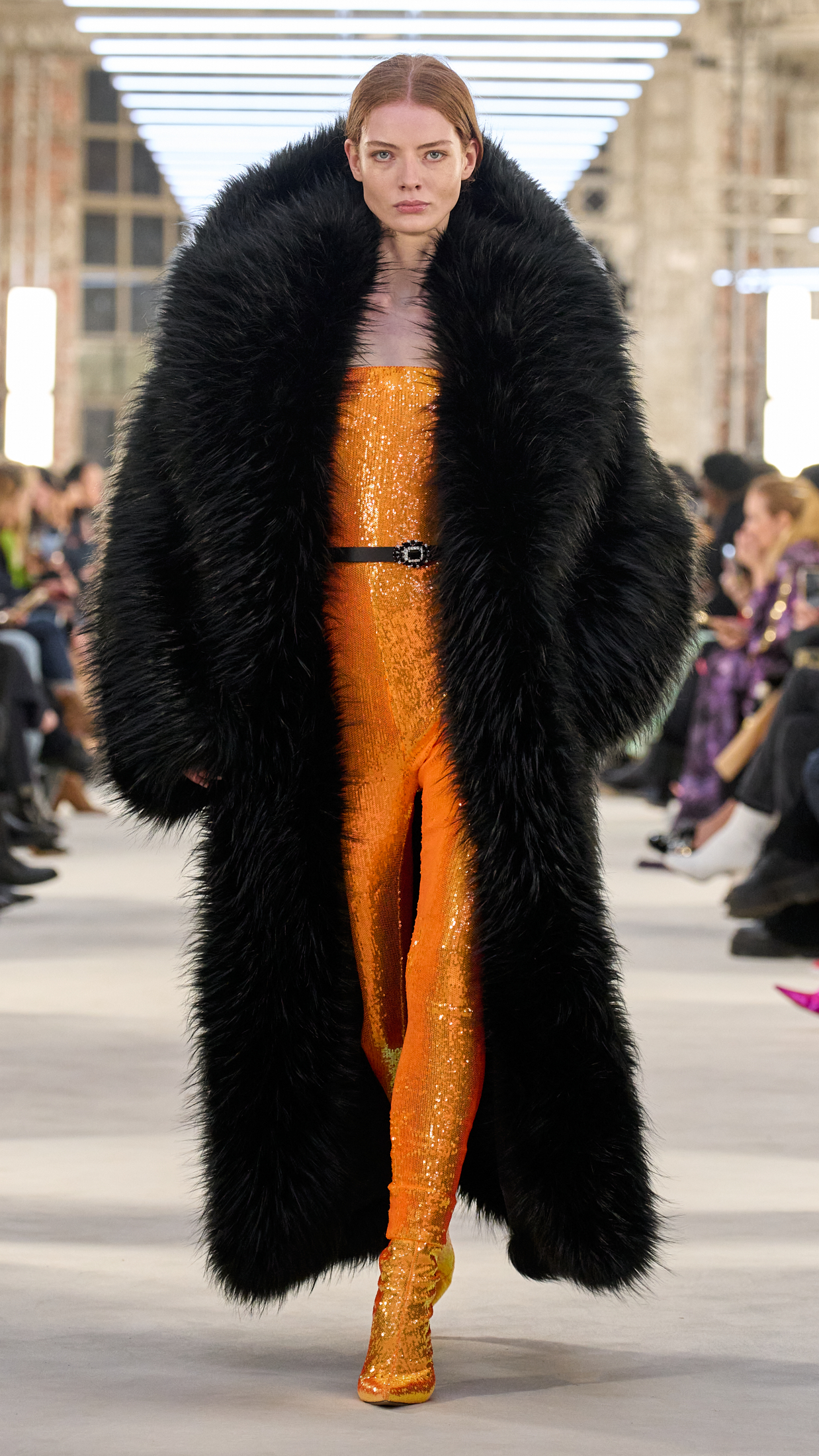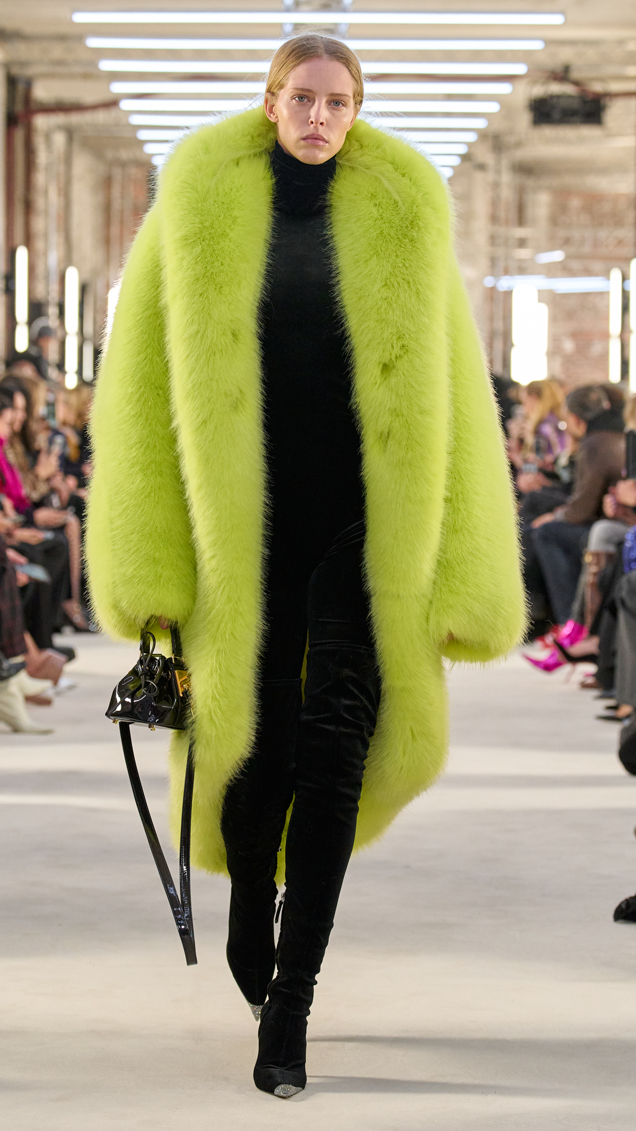 Le créateur Alexandre Vauthier a encore frappé fort avec sa collection haute couture d’été. Au premier regard, les pièces en fausse fourrure peuvent sembler déplacées pour une collection estivale, mais le créateur a su les intégrer de manière astucieuse pour répondre aux besoins de ses clients. Ces derniers recherchent des tenues pour des voyages au Nord pour éviter les foules et découvrir de nouveaux horizons. Vauthier a donc opté pour des pièces chaudes et confortables, tout en gardant le côté sexy de sa marque. Sa chasse pour trouver la meilleure fausse fourrure l’a mené vers une matière incroyablement douce et volumineuse, qu’il a travaillée en noir, vert acide, vert bouteille et rose vif, montant le tissu à l’envers pour donner encore plus de volume et de fun.