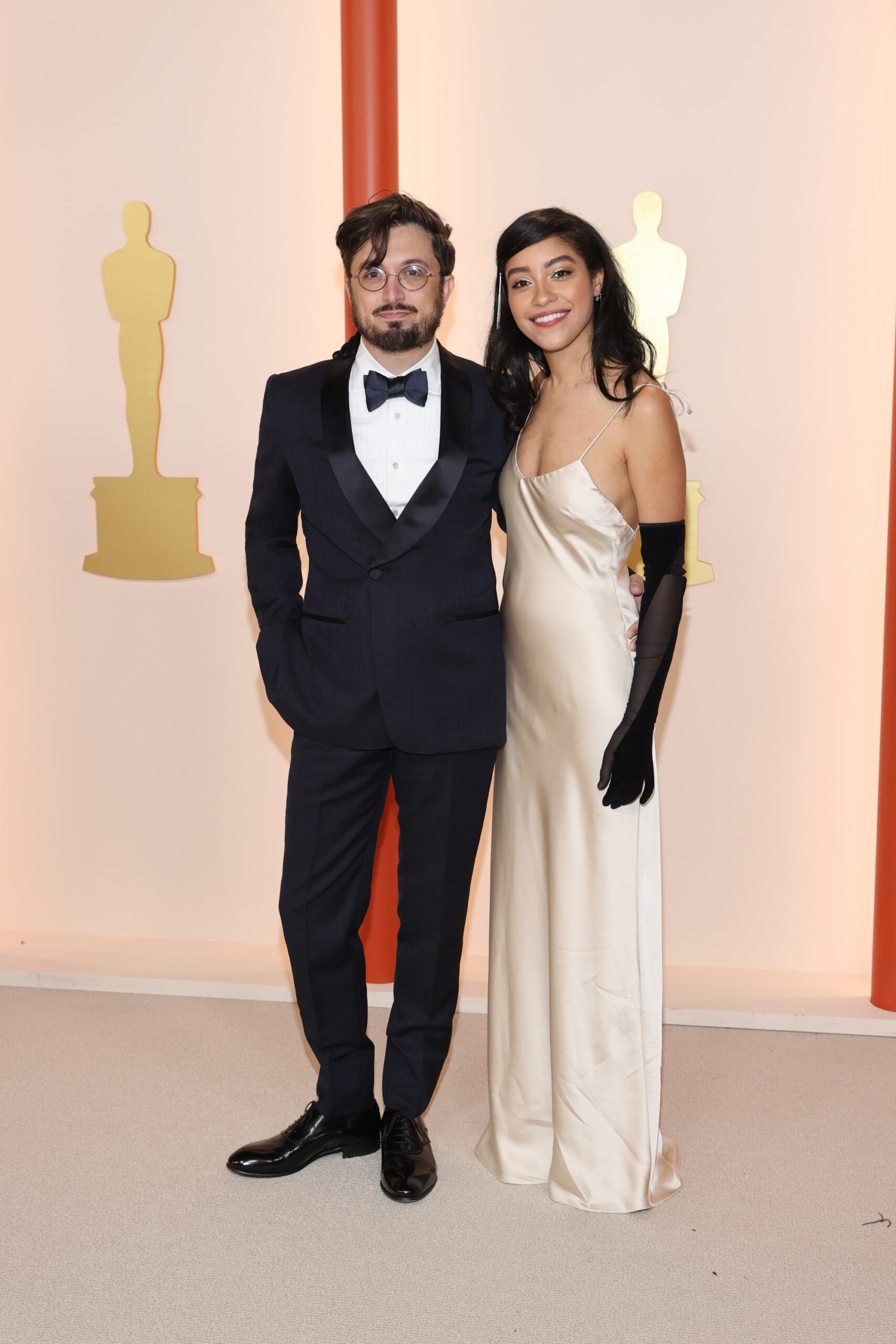Dean Fleischer Camp, réalisateur du film « Marcel the Shell with Shoes on », nominé pour le Meilleur film d’animation, portait un smoking en laine jacquard bleu marine de ZEGNA avec des revers en soie, une chemise blanche, un nœud papillon bleu marine et des chaussures noires.