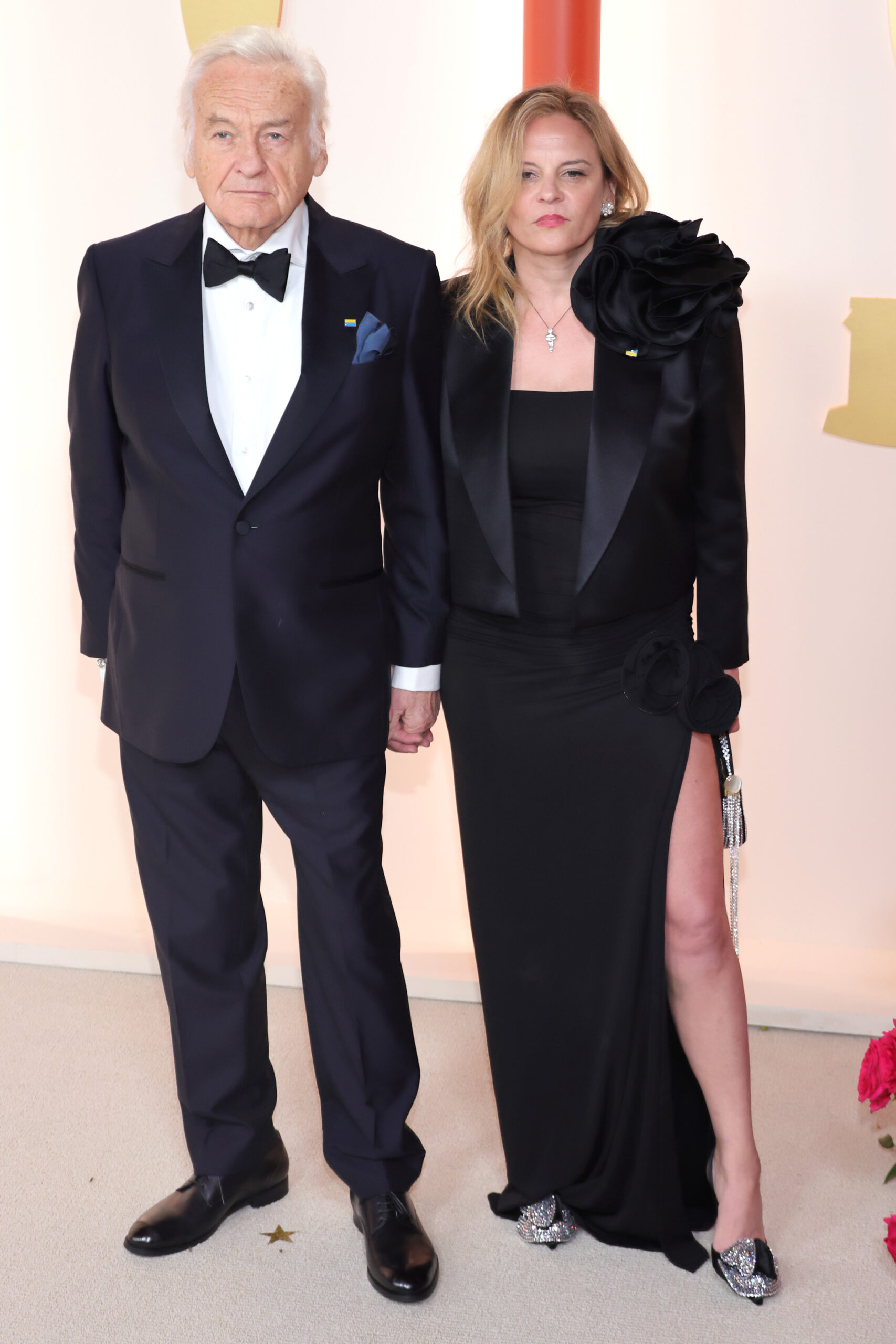 HOLLYWOOD, CALIFORNIA – MARCH 12: (L-R) Jerzy Skolimowski and Ewa Piaskowska attend the 95th Annual Academy Awards on March 12, 2023 in Hollywood, California. (Photo by Kayla Oaddams/WireImage )