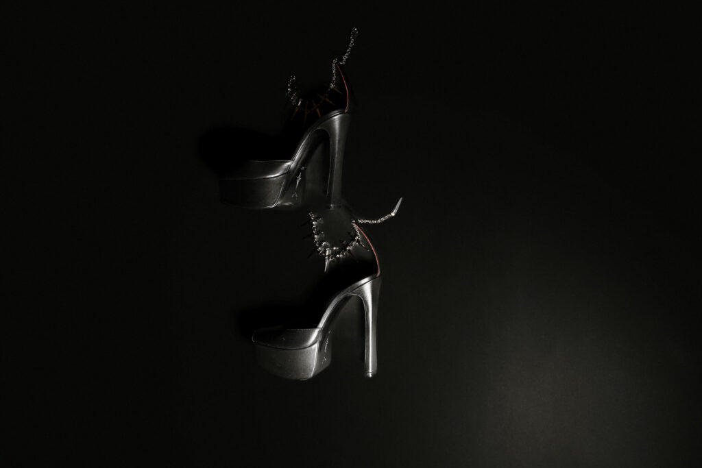 La collection Automne/Hiver 2023 SHARP poursuit la valorisation des codes fondamentaux de la marque, à savoir la sensualité, l’excentricité et l’élégance, en mettant en avant des silhouettes tranchantes agrémentées de nouveaux accessoires métalliques.