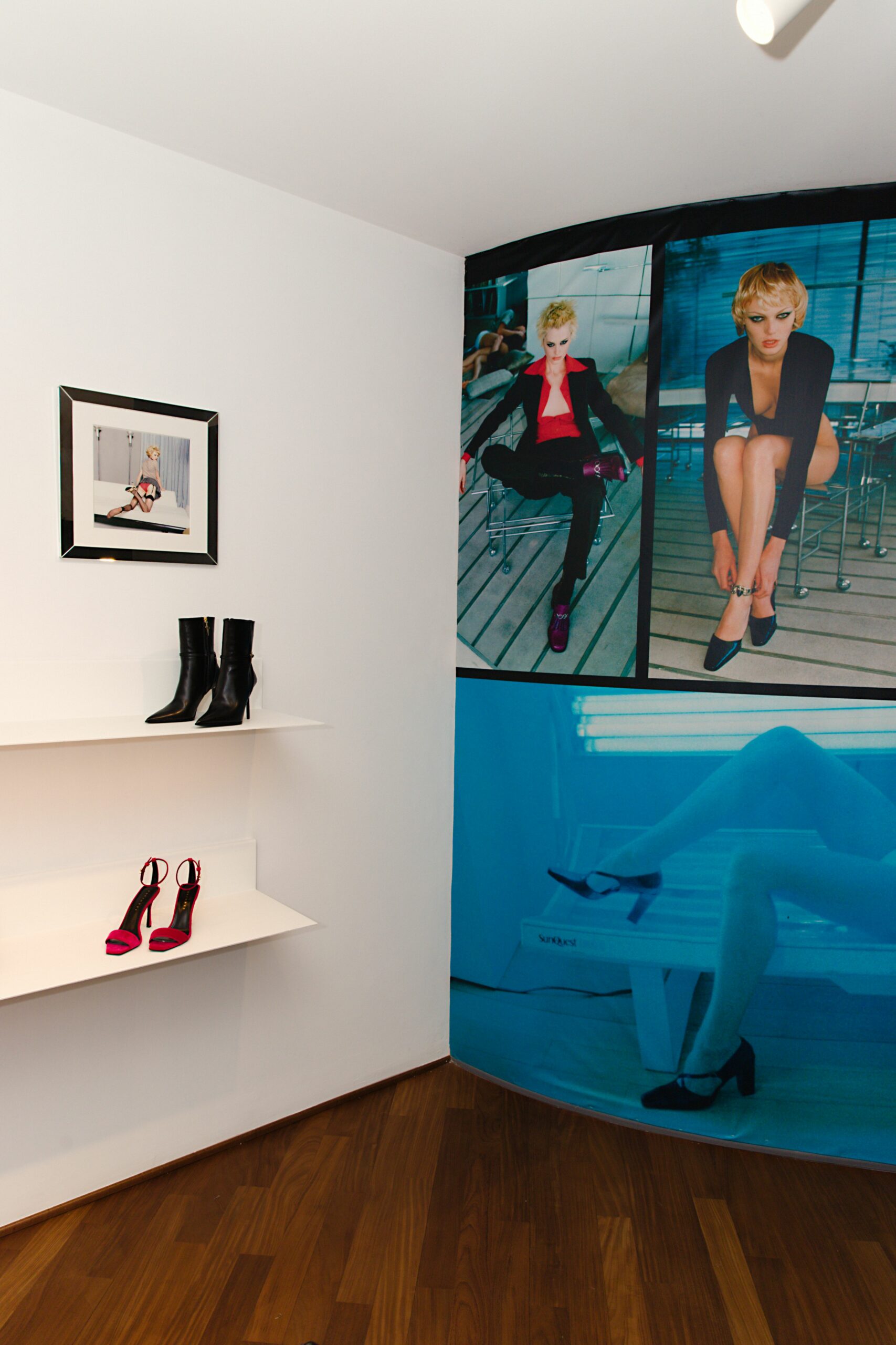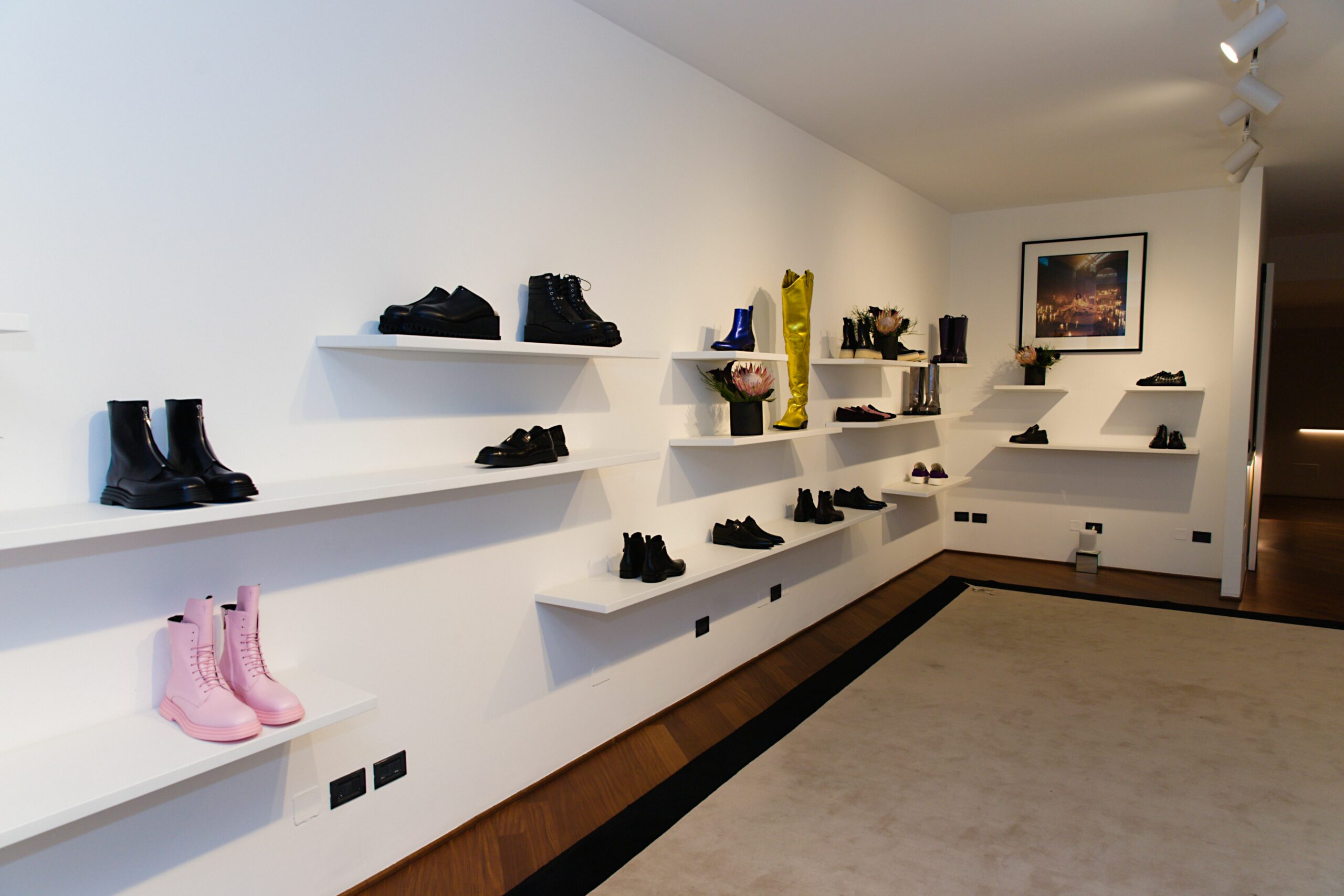 L’approche des structures féminines est caractérisée par des modèles de soirée et des bottes glam-rock, tandis que la narration masculine se concentre sur un nouvel étude de structures formelles en cuir associées à des modèles culte des années 90 ornés du logo emblématique.
