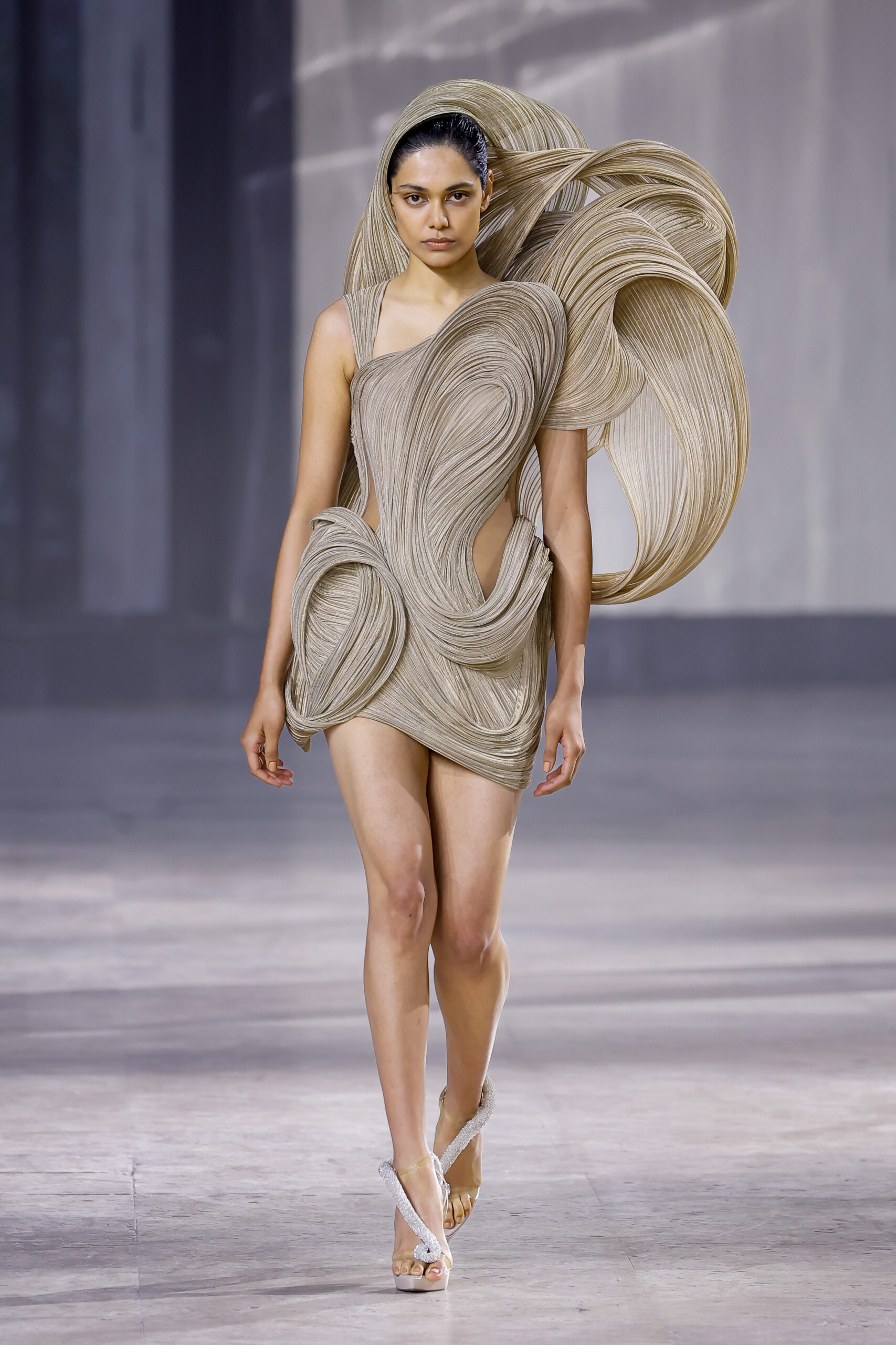 La collection Couture Printemps-Été 2023 de Gaurav Gupta est une ode à la subliminalité et à l’originalité. Le couturier indien a puisé dans la mythologie, le fantastique et le surréalisme pour explorer les mouvements possibles entre le zéro et l’infini. Shunya, mot sanskrit signifiant « zéro », est l’élément clé de cette collection, faisant référence à la découverte du zéro en Inde il y a plusieurs siècles.