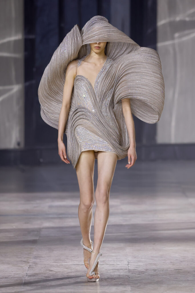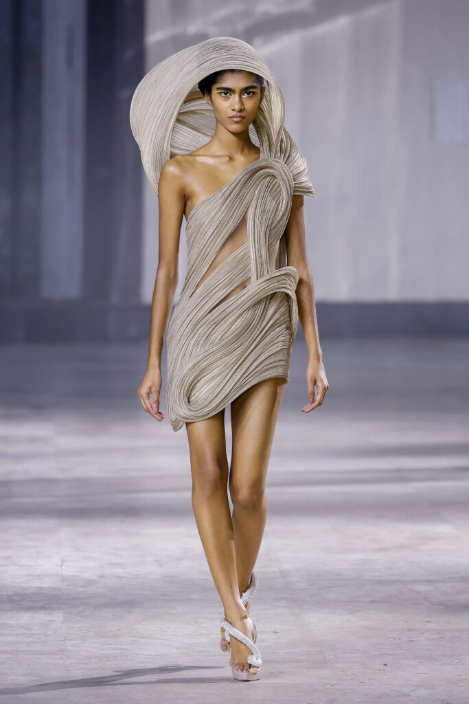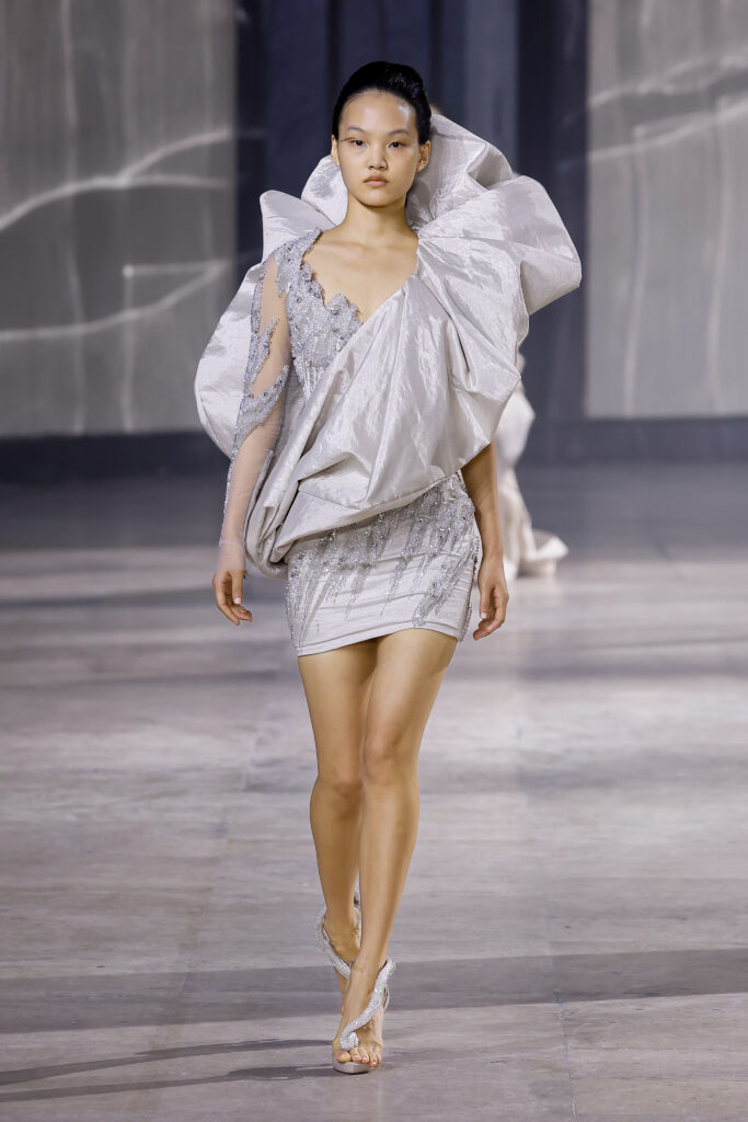La collection Couture Printemps-Été 2023 de Gaurav Gupta est une ode à la subliminalité et à l’originalité. Le couturier indien a puisé dans la mythologie, le fantastique et le surréalisme pour explorer les mouvements possibles entre le zéro et l’infini. Shunya, mot sanskrit signifiant « zéro », est l’élément clé de cette collection, faisant référence à la découverte du zéro en Inde il y a plusieurs siècles.