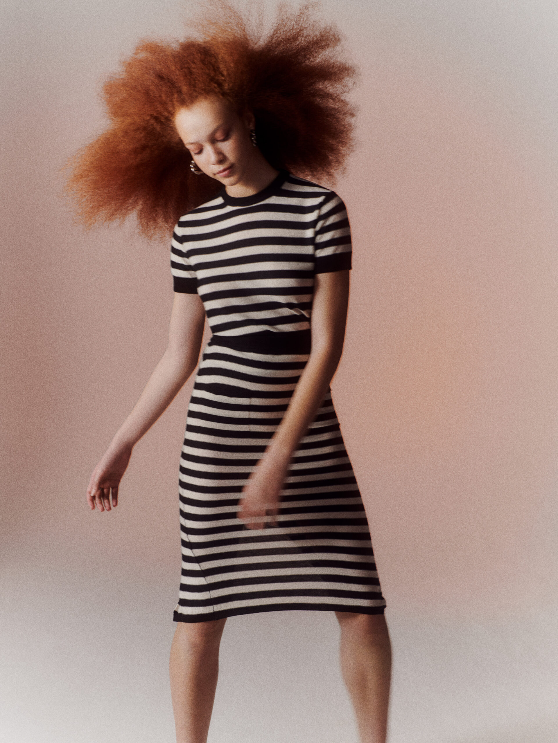 Depuis 1968, les bandes emblématiques de l’époque épousent les formes des femmes Rykiel.