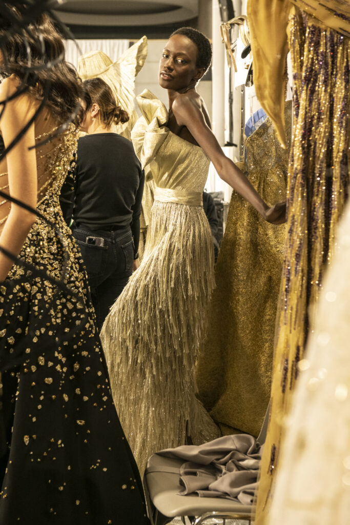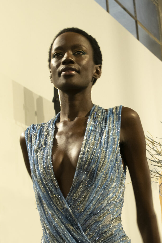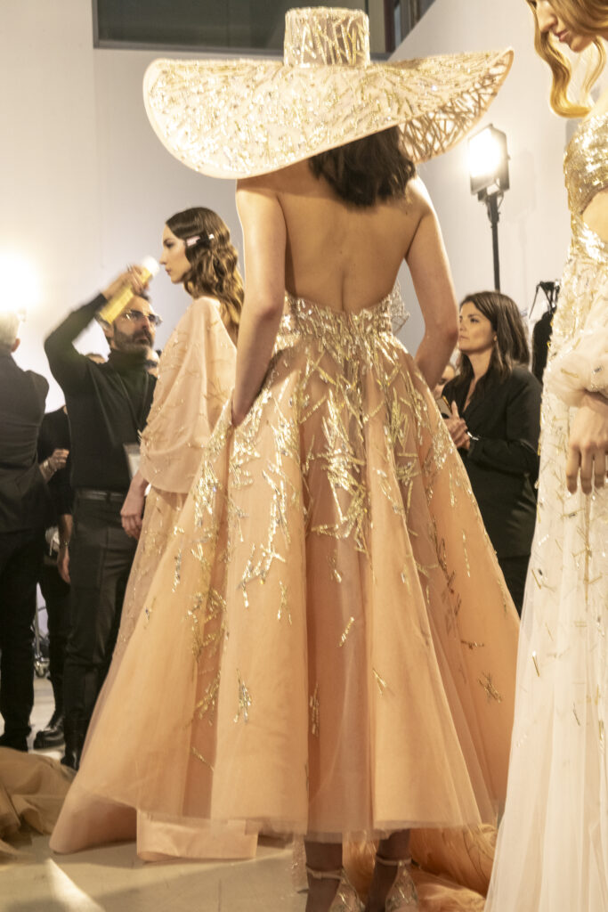 Silhouettes éthérées, grandes capelines, textures vaporeuses et broderies complexes… illuminant le podium.
