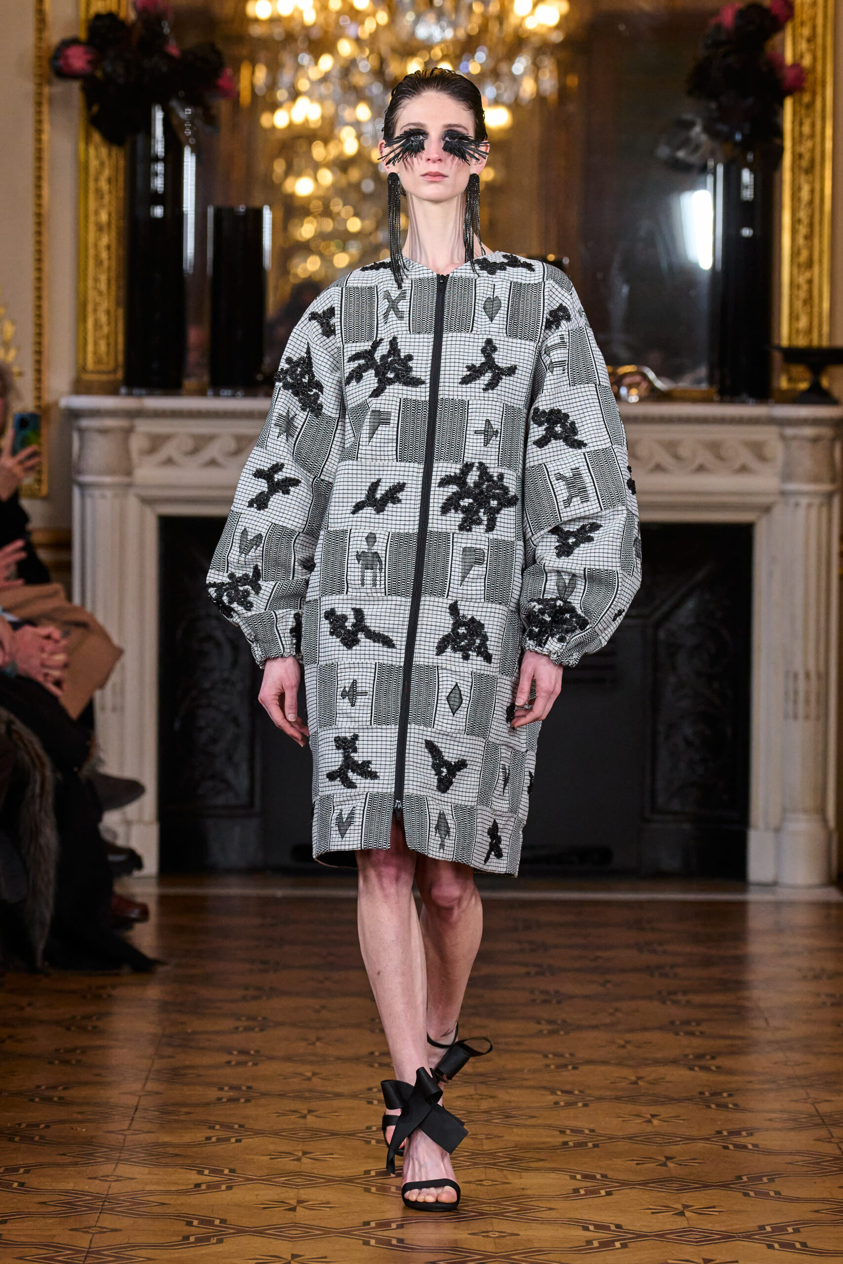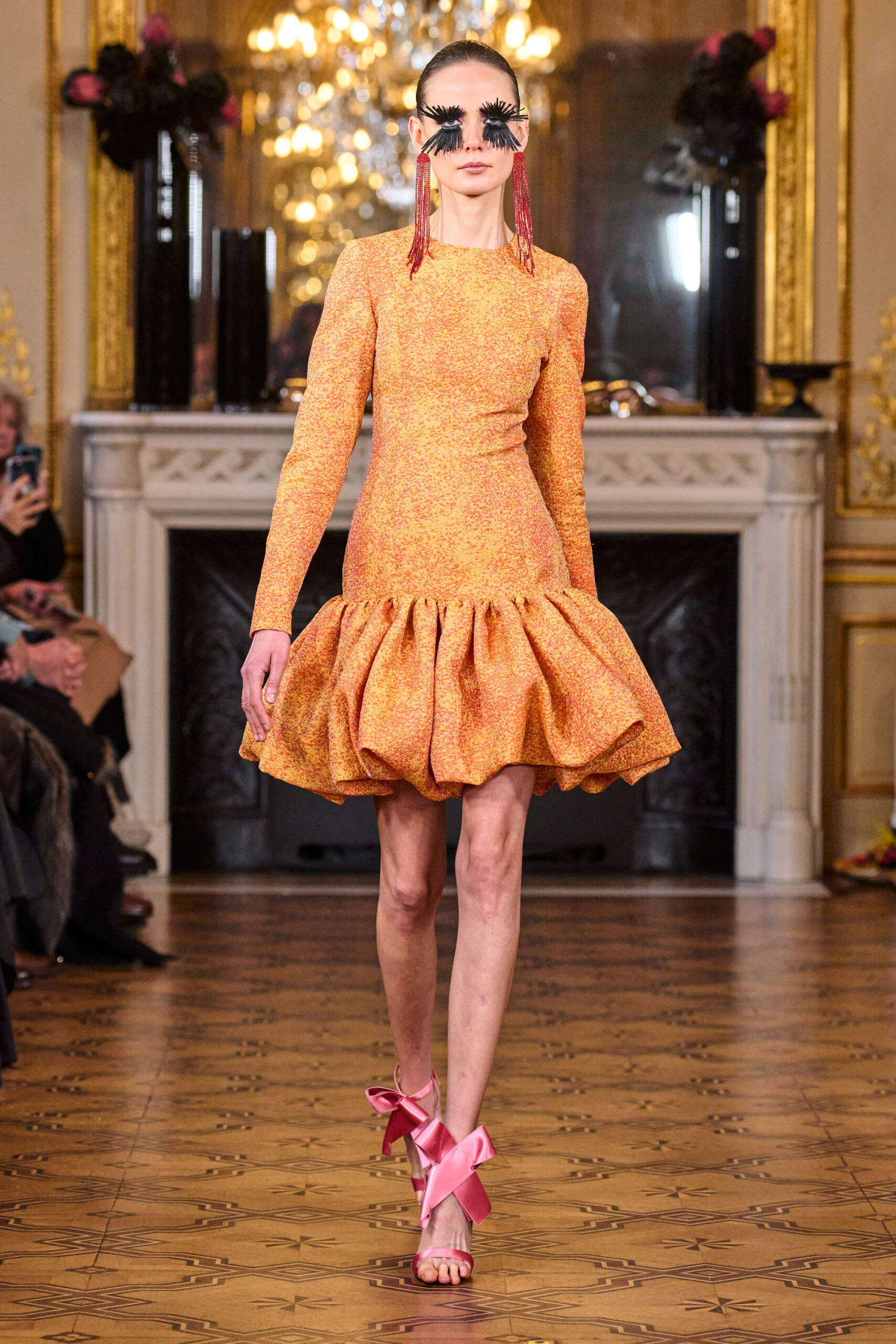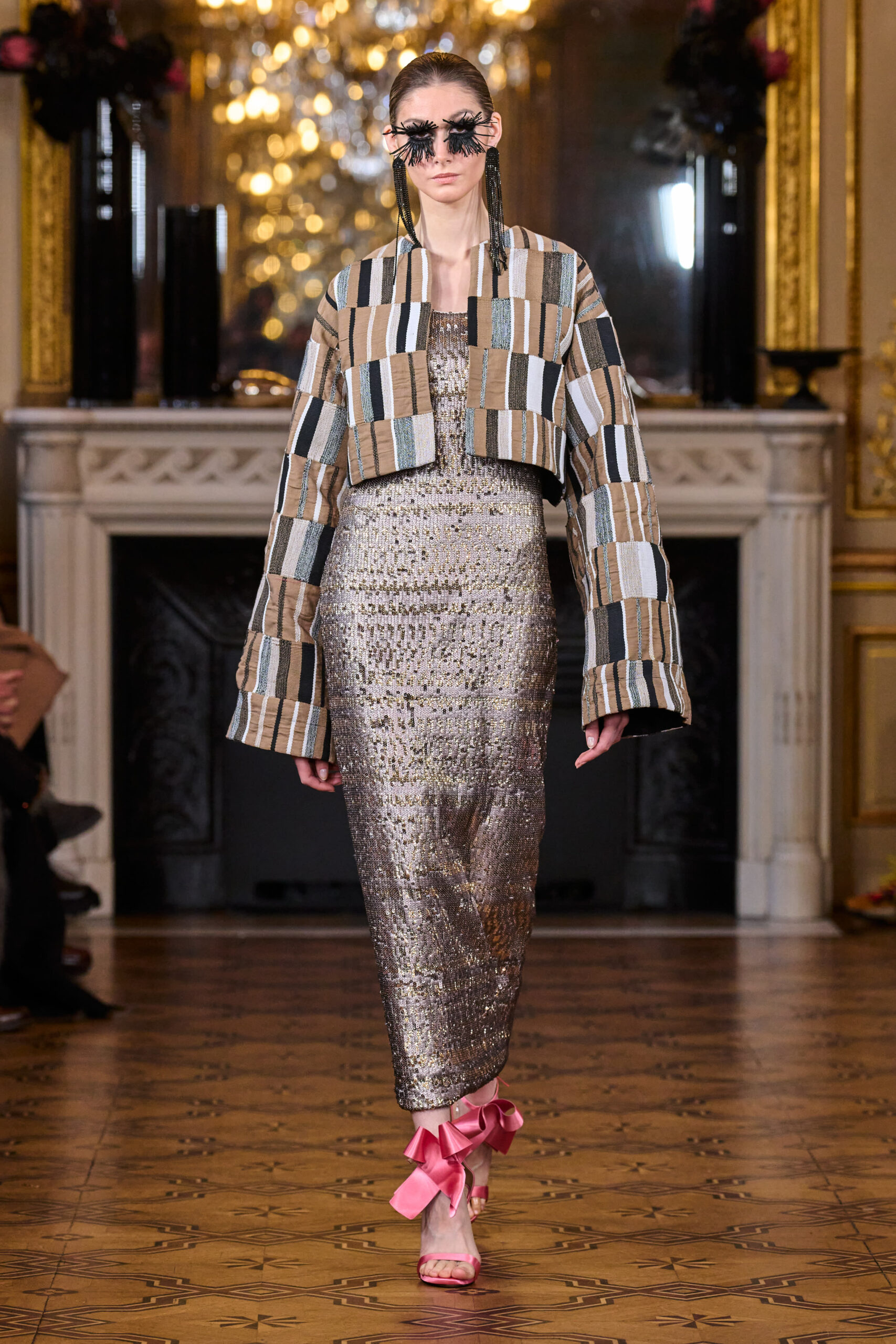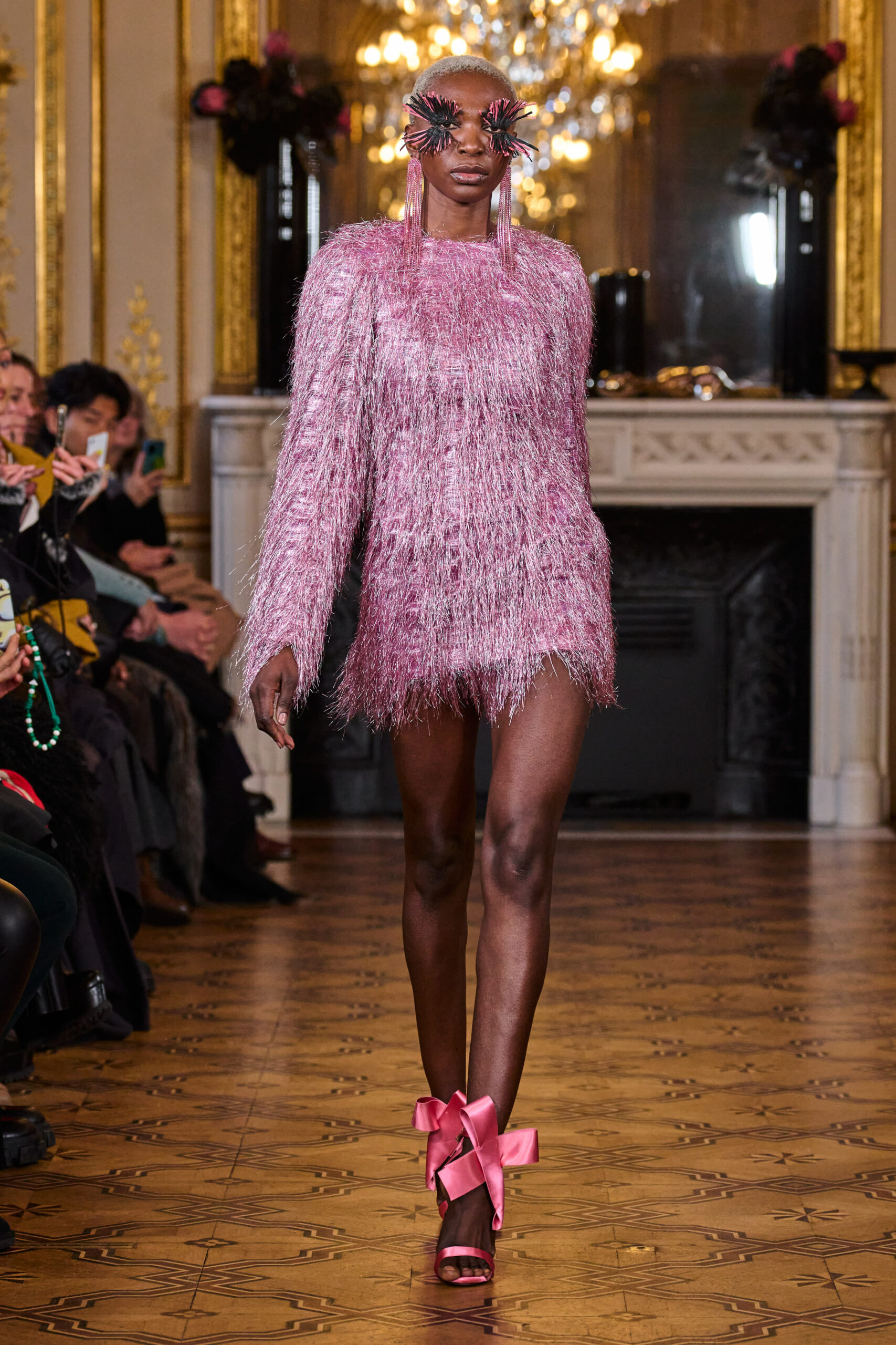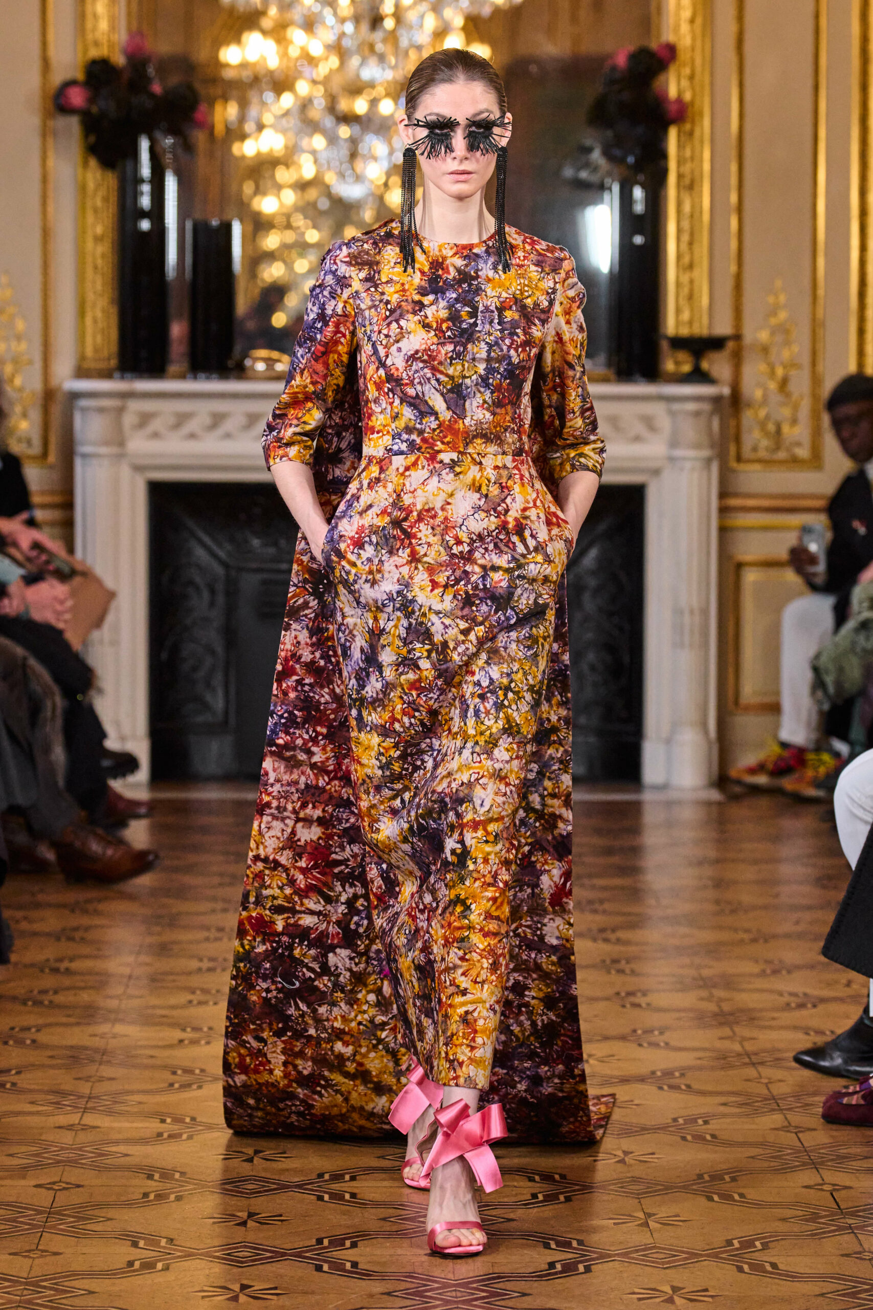 La femme Imane Ayissi ose la couleur avec des tons vibrants tels que le fuchsia, l’orange et le bleu électrique. La sobriété est également présente avec la robe noire emblématique du créateur. Les différentes longueurs des vêtements contrastent avec l’asymétrie qui ne laisse personne indifférent. La beauté métissée est l’objectif de cette collection. Les faux-cils en fibre de raphia, imaginés par Marcello Costa, donnent une touche d’originalité à chaque look.