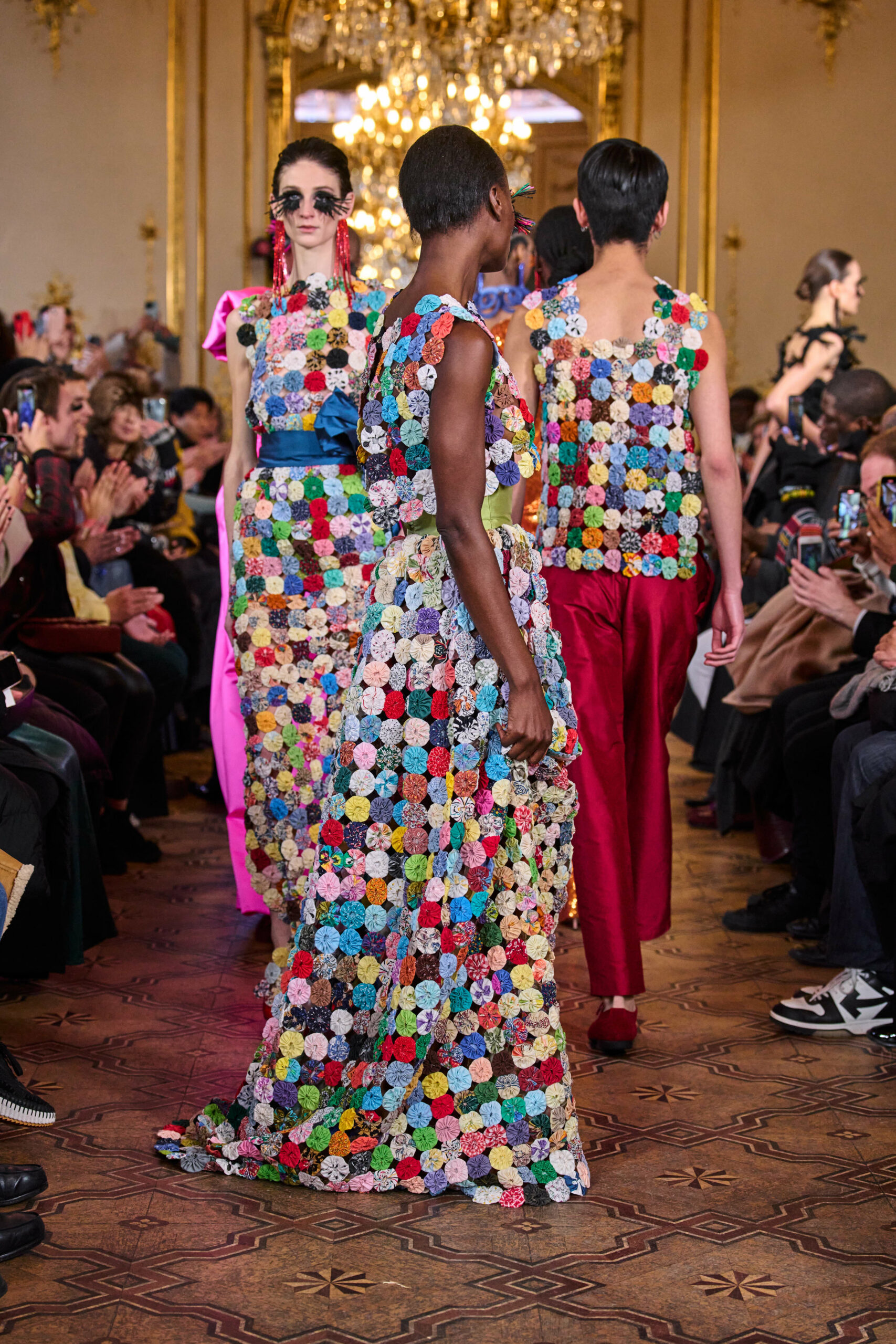 Imane Ayissi est un couturier originaire du Cameroun qui a su allier les techniques européennes de la haute couture avec les matières et les traditions africaines. La collection « Agnieup » est la preuve que la beauté est plurielle et qu’elle peut être trouvée dans des cultures et des traditions différentes. Le couturier a su nous transporter dans un univers haut en couleurs, où l’élégance et la modernité se rencontrent dans un subtil équilibre.