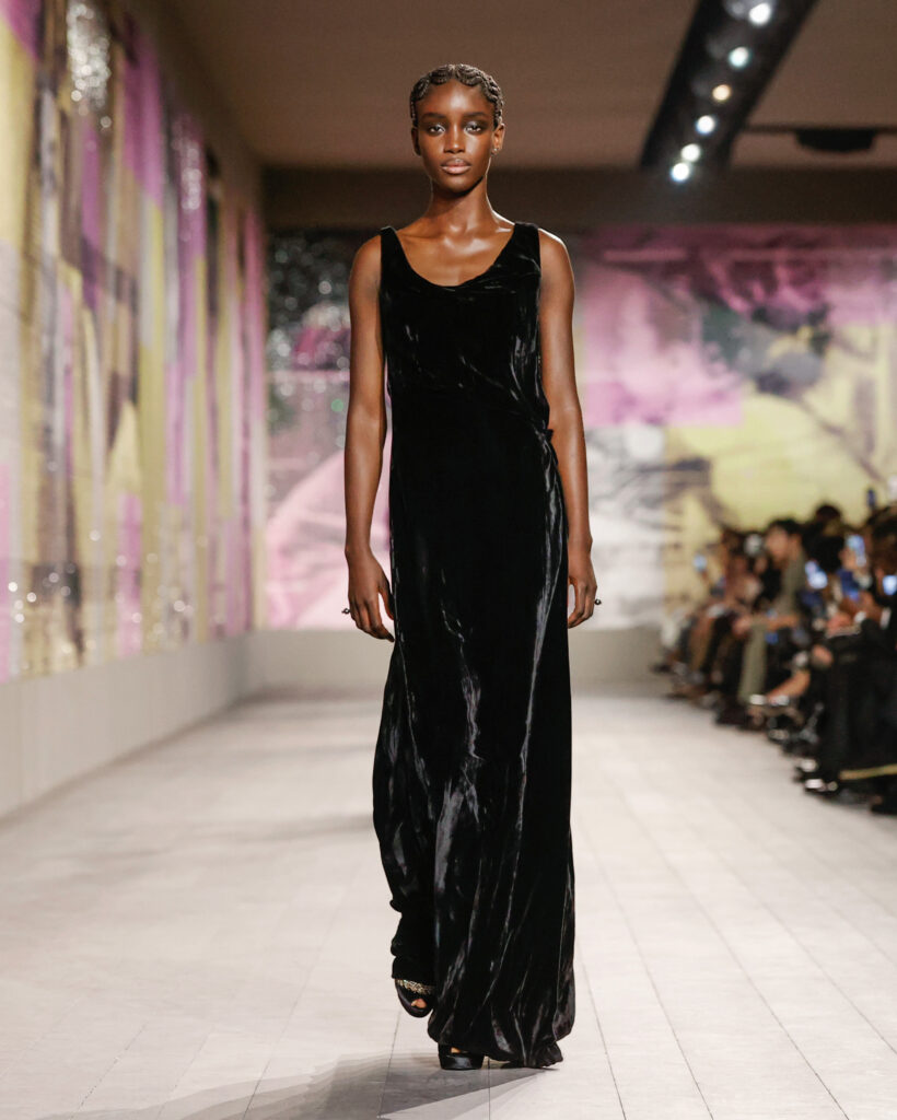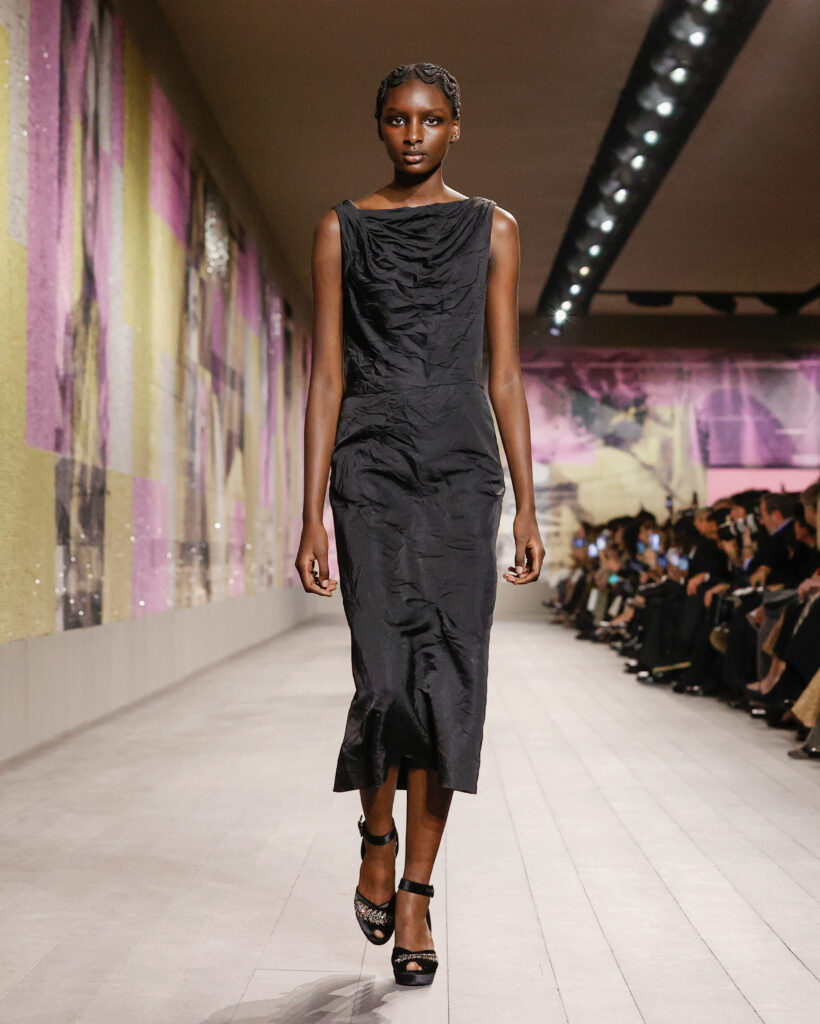 Le défilé, mis en scène par l’artiste afro-américaine Mickalene Thomas, célèbre les personnalités féminines noires ou métisses qui ont brisé les barrières raciales et sont devenues des symboles puissants. Cette collection Dior est plus qu’une simple démonstration de haute couture, elle est un geste radical de prise de conscience de sa propre valeur et de sa propre force.
